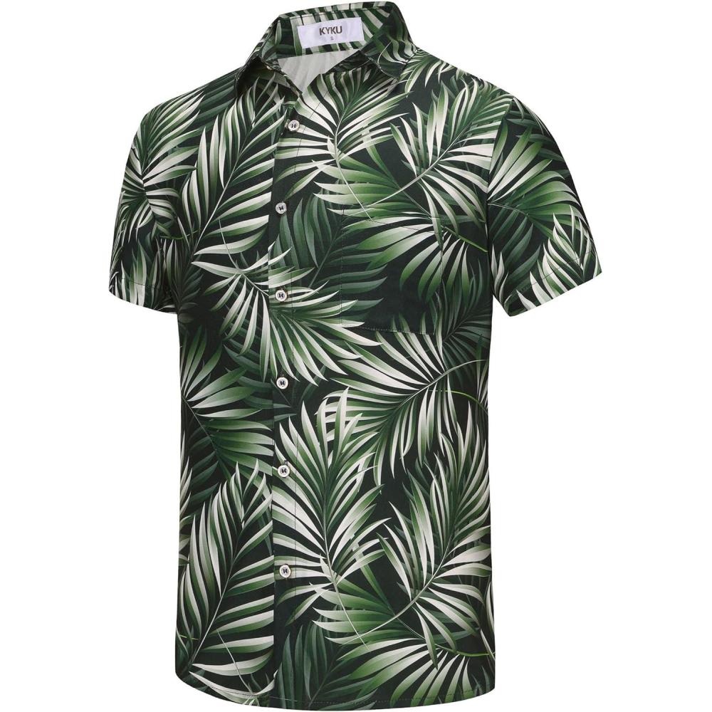 KYKU Hawaiian Shirt for Men: Tropical Summer Beach Short Sleeve Button Down Shirt with Pocket(Green Leaf)
