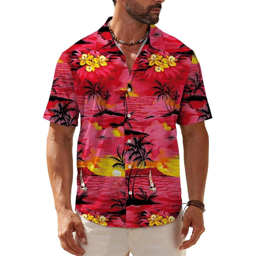 KYKU Hawaiian Shirt for Men: Tropical Summer Beach Short Sleeve Button Down Shirt with Pocket(Red Mens Casual Shirts)