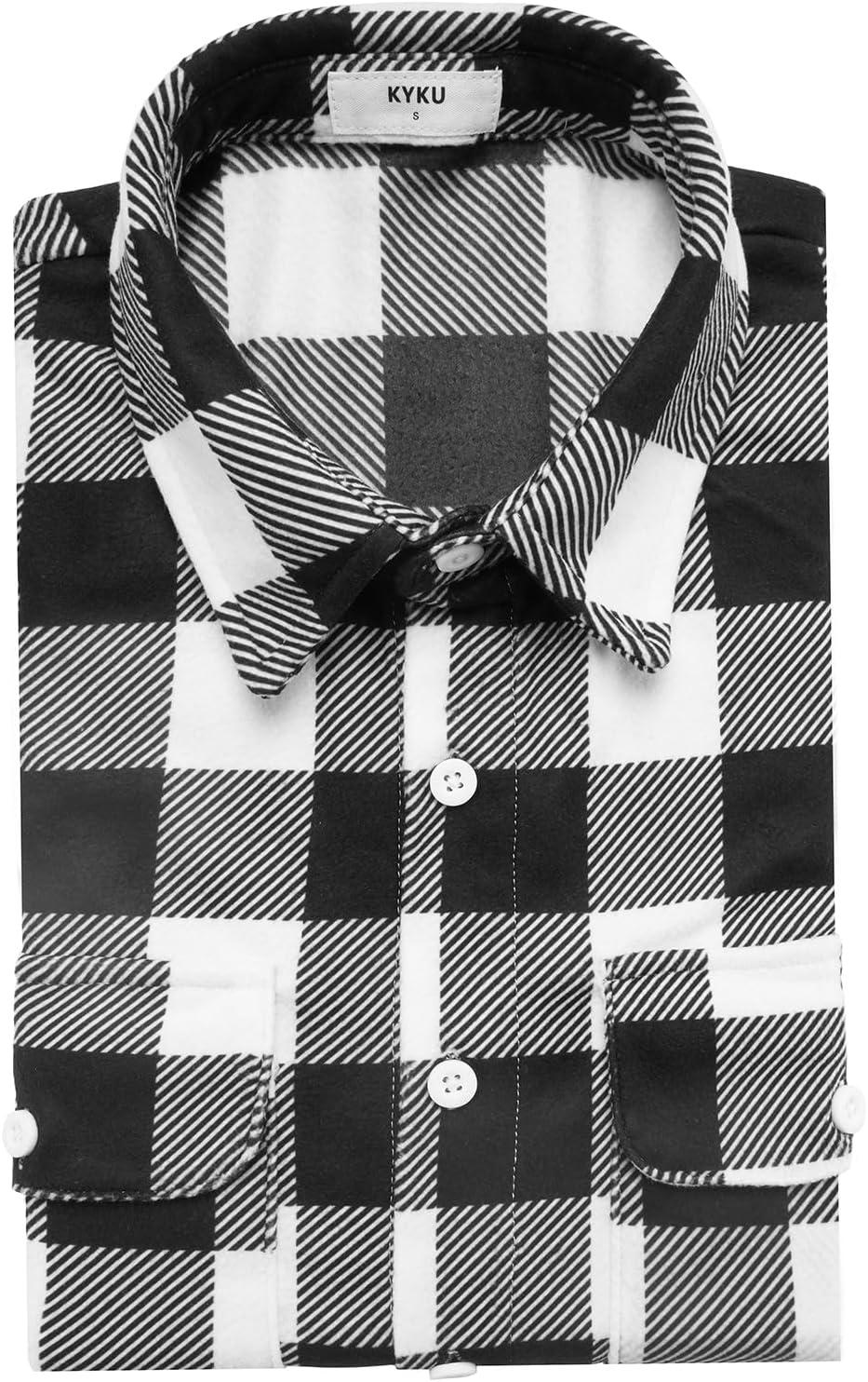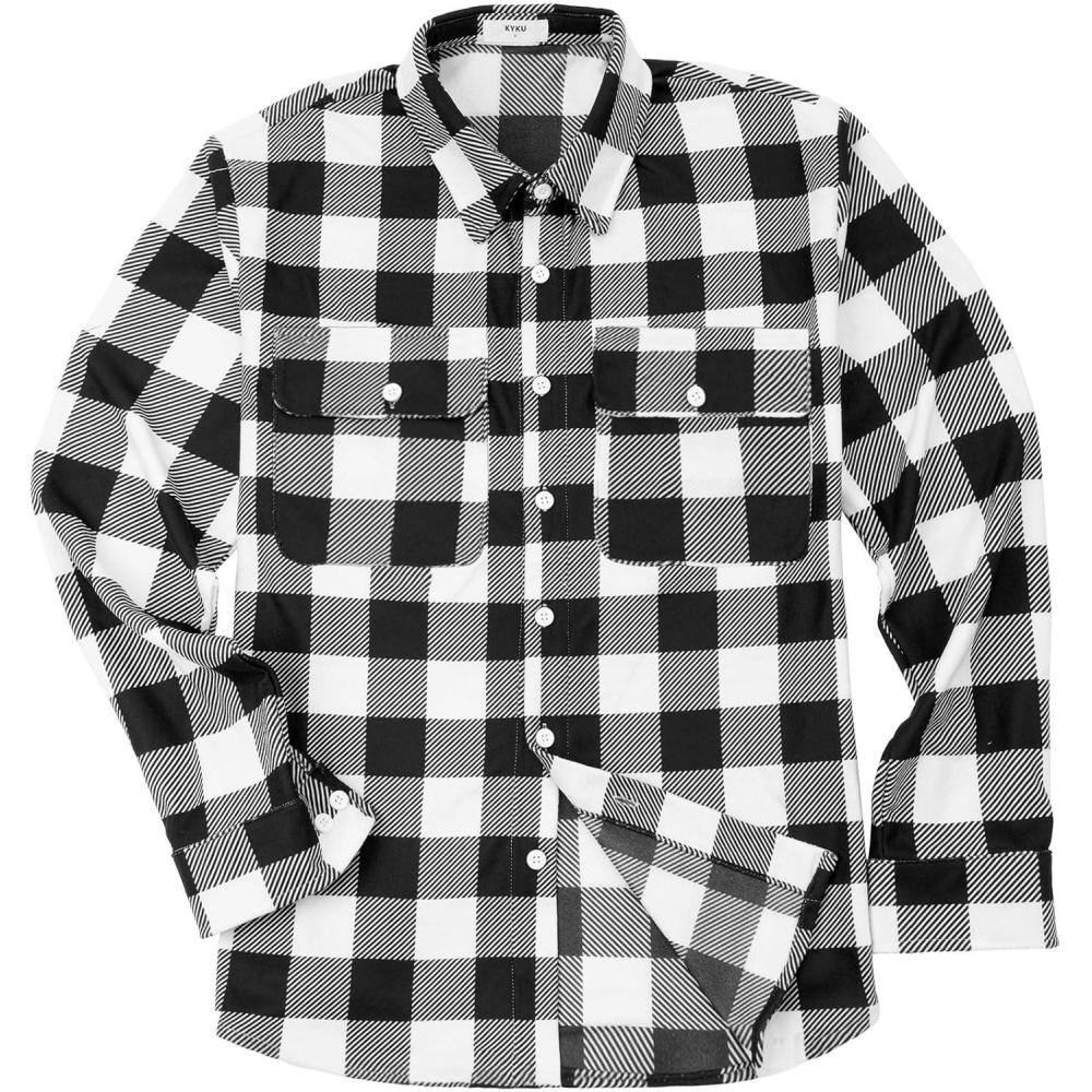 imageKYKU Mens Flannel Shirts Soft Long Sleeve Button Down Shirt DoubleSided Plaid Print Two PocketsBlack White Plaid Flannel Shirt for Men