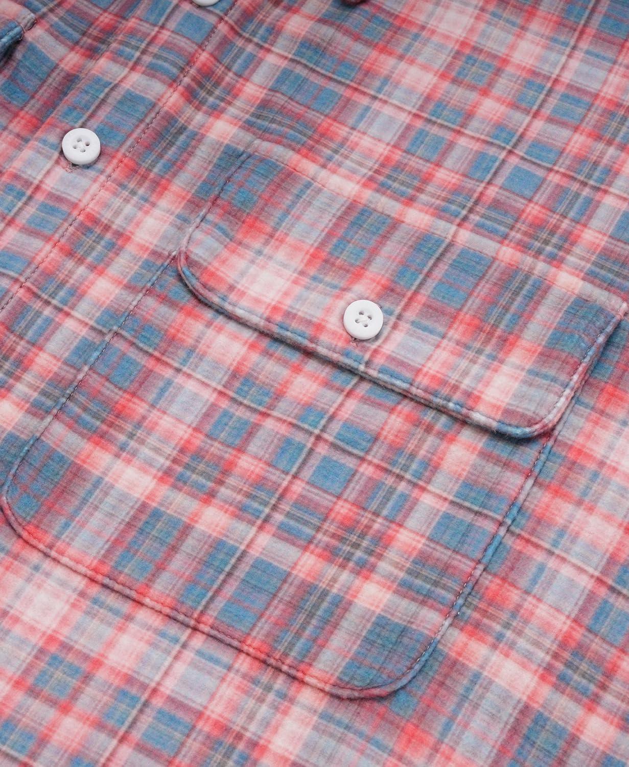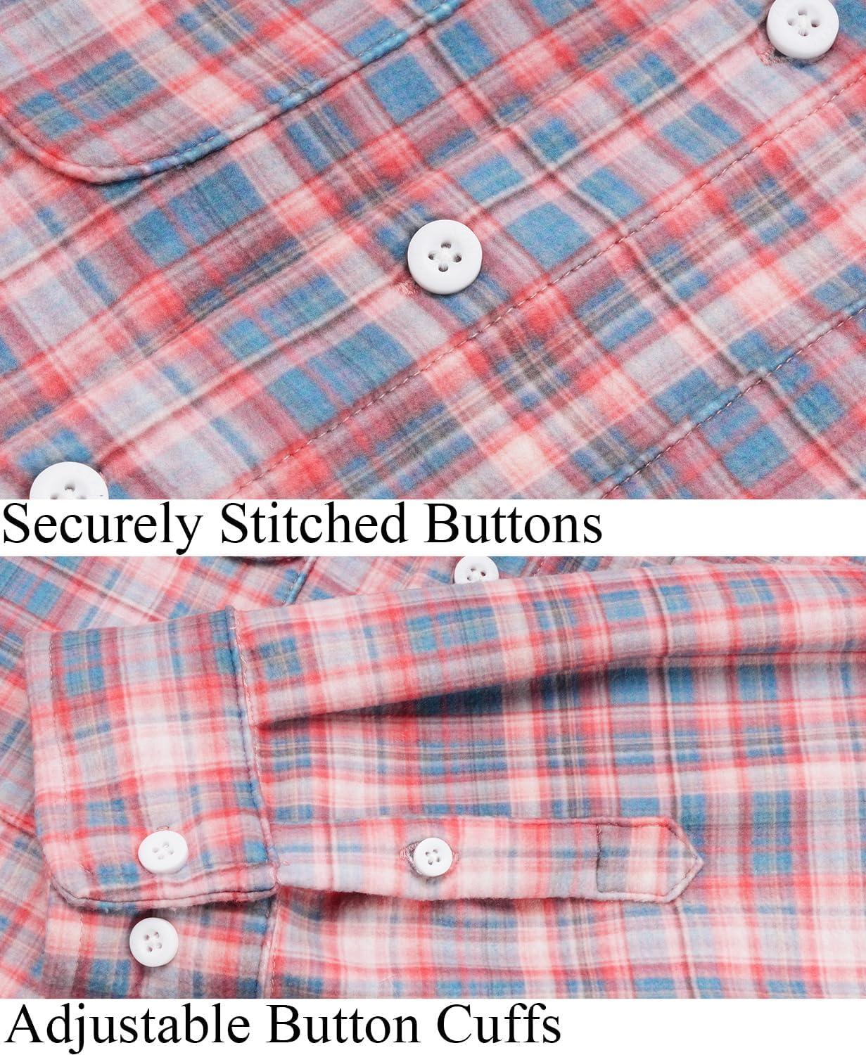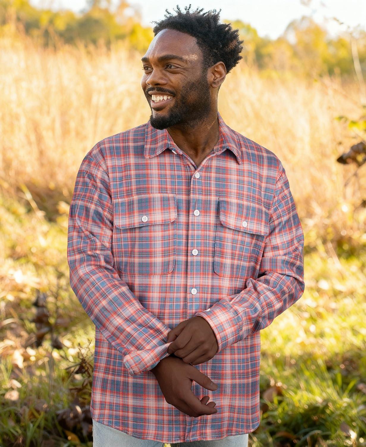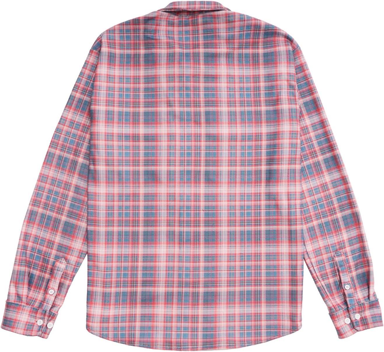 KYKU Mens Flannel Shirts Soft Long Sleeve Button Down Shirt, Double-Sided Plaid Print, Two Pockets(Coral Slate Blue Plaid Flannel Shirt for Men)