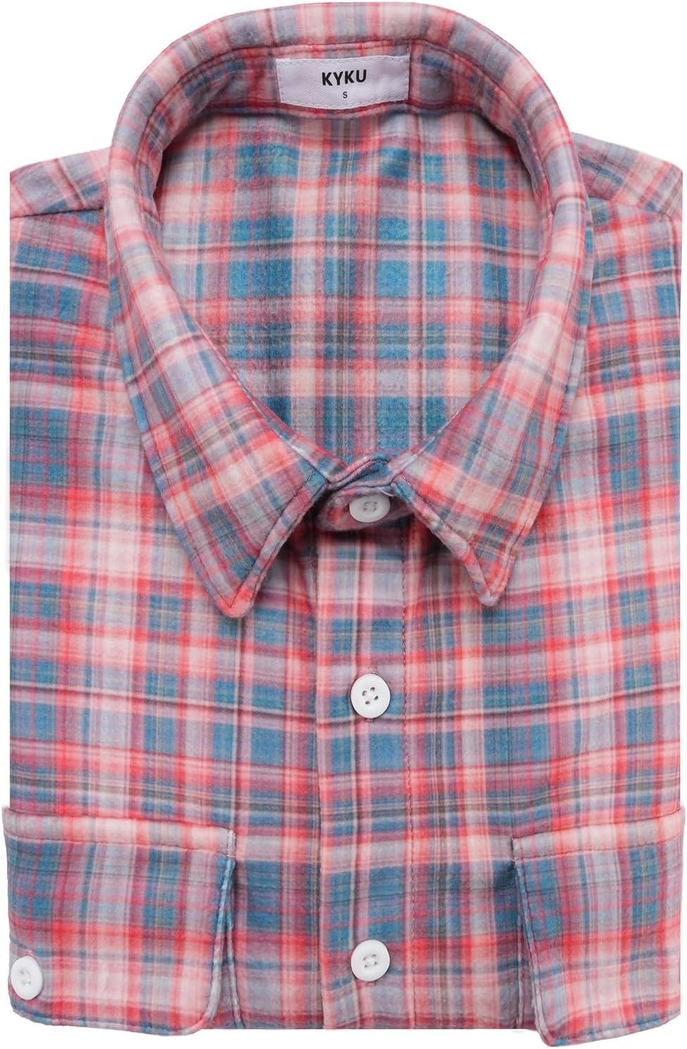 imageKYKU Mens Flannel Shirts Soft Long Sleeve Button Down Shirt DoubleSided Plaid Print Two PocketsBrown Plaid Flannel Shirt for Men