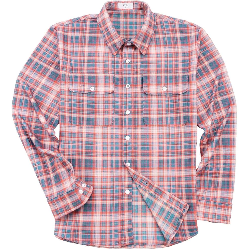 Be the first to review “KYKU Mens Flannel Shirts Soft Long Sleeve Button Down Shirt, Double-Sided Plaid Print, Two Pockets(Coral Slate Blue Plaid Flannel Shirt for Men)”