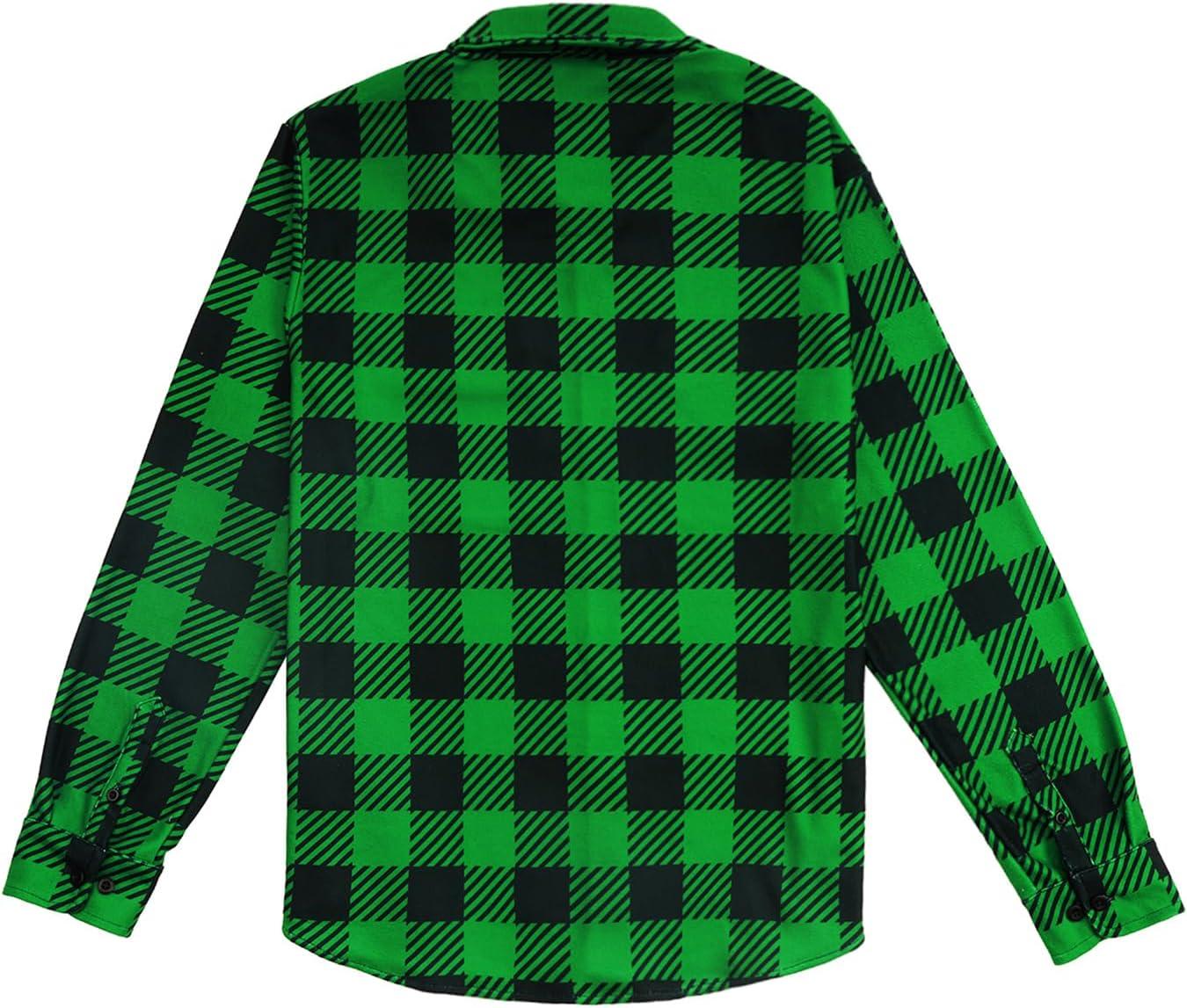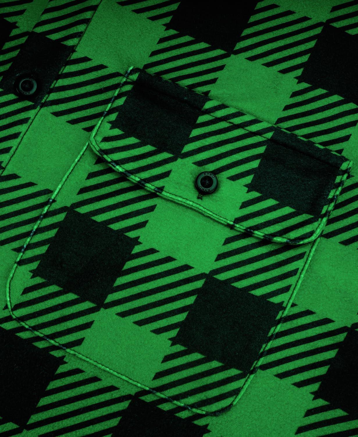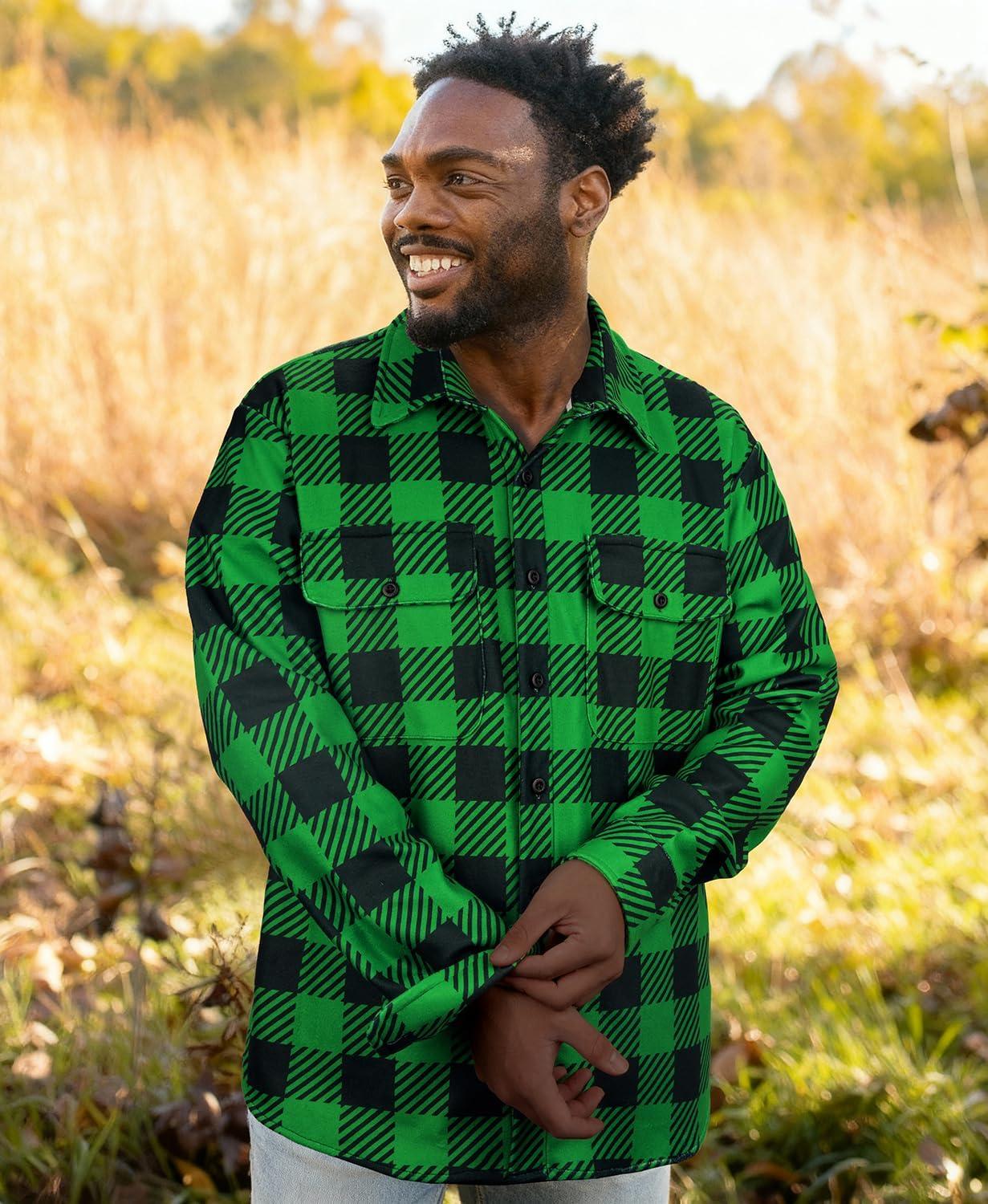 KYKU Mens Flannel Shirts Soft Long Sleeve Button Down Shirt, Double-Sided Plaid Print, Two Pockets(Green Black Buffalo Plaid Flannel Shirt for Men)