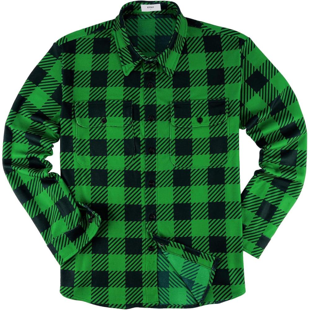 imageKYKU Mens Flannel Shirts Soft Long Sleeve Button Down Shirt DoubleSided Plaid Print Two PocketsGreen Plaid Casual Flannel Shirt for Men