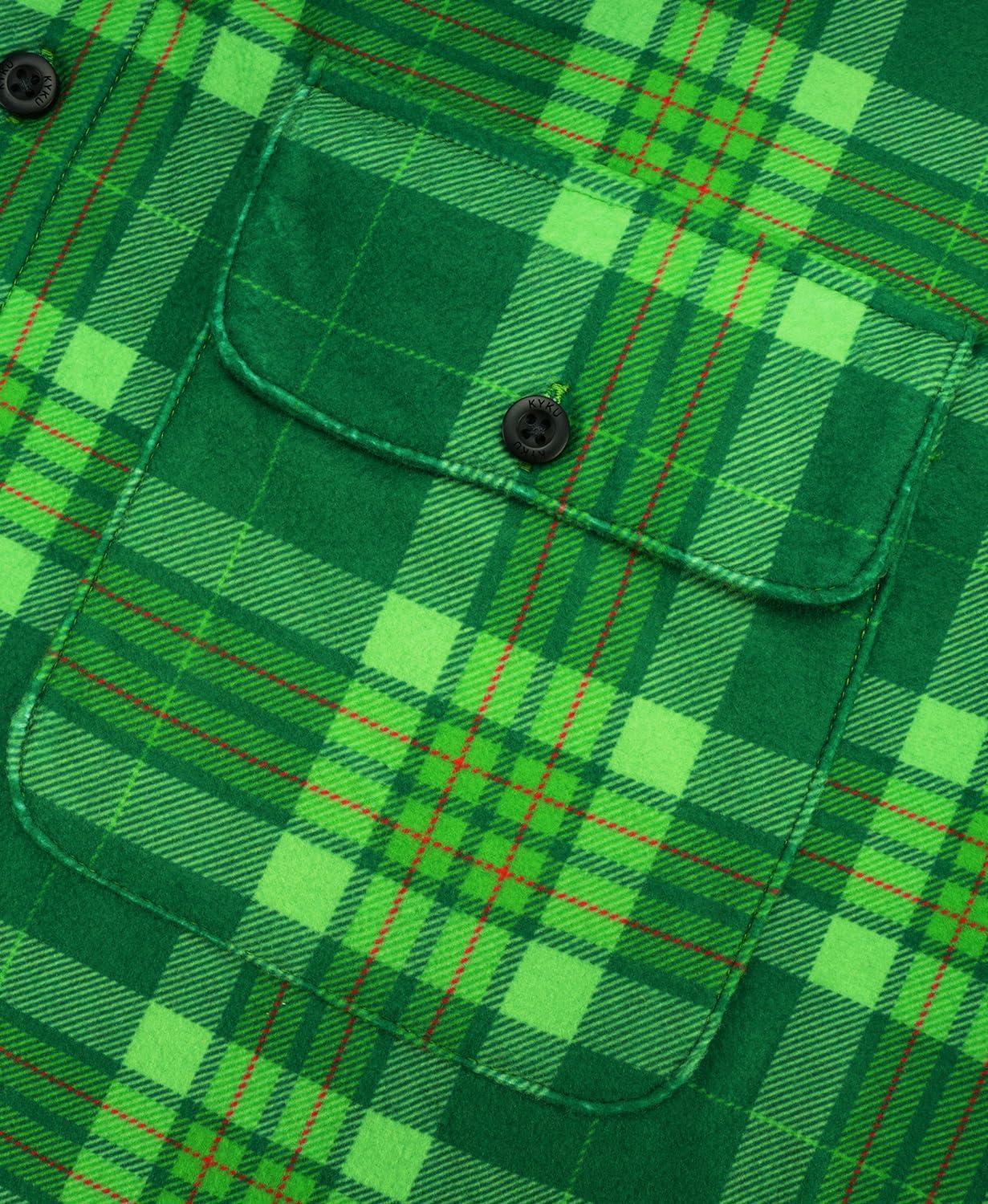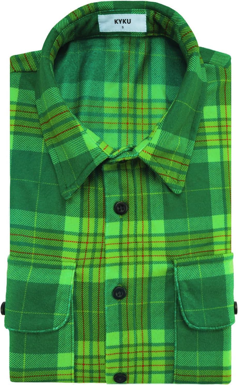 imageKYKU Mens Flannel Shirts Soft Long Sleeve Button Down Shirt DoubleSided Plaid Print Two PocketsGreen Plaid Flannel Shirt for Men