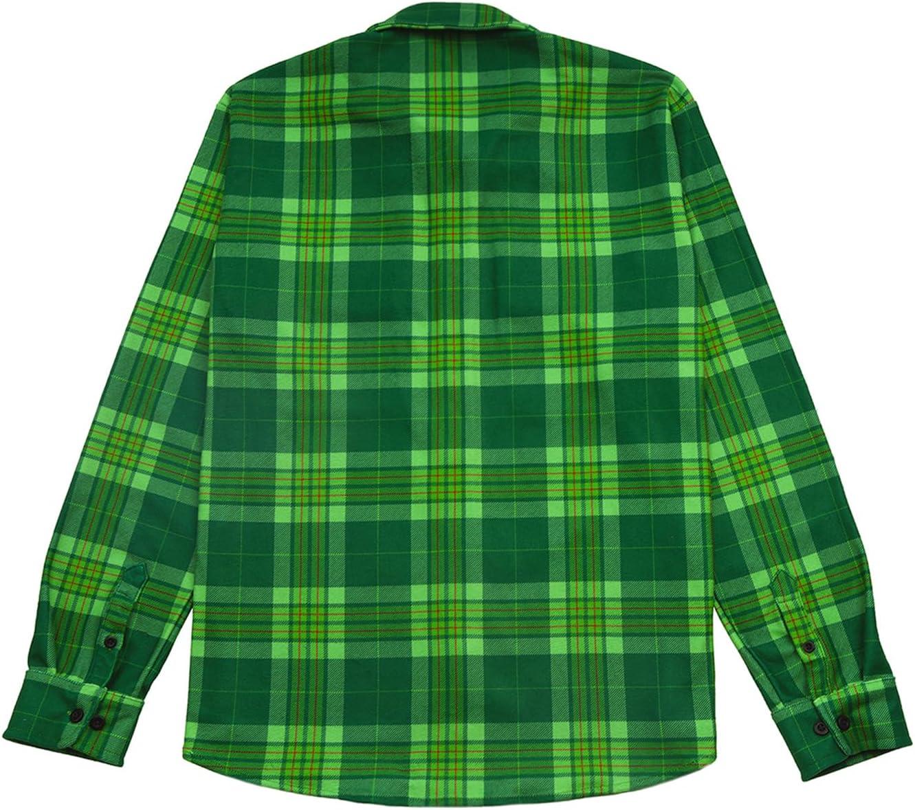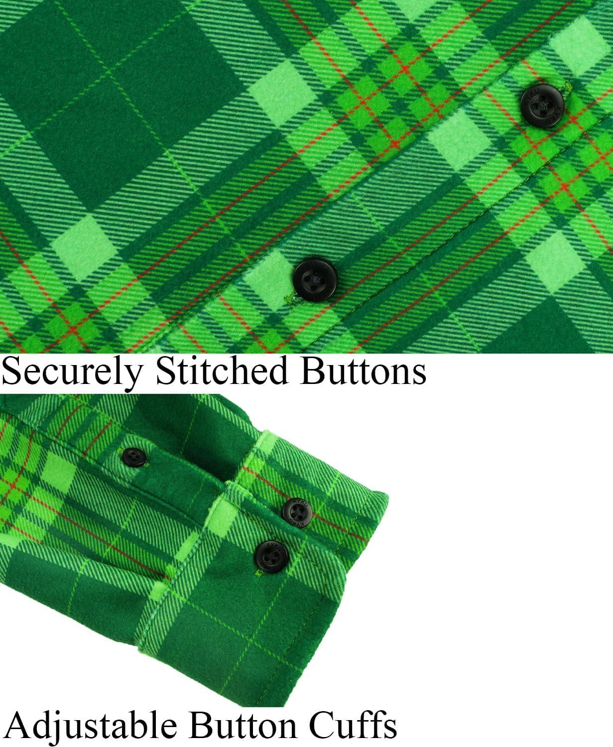 KYKU Mens Flannel Shirts Soft Long Sleeve Button Down Shirt, Double-Sided Plaid Print, Two Pockets(Green Plaid Casual Flannel Shirt for Men)