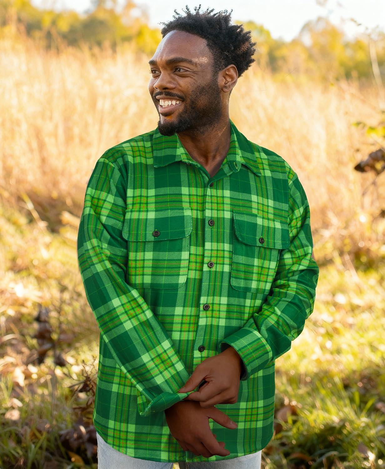 KYKU Mens Flannel Shirts Soft Long Sleeve Button Down Shirt, Double-Sided Plaid Print, Two Pockets(Green Plaid Flannel Shirt for Men)