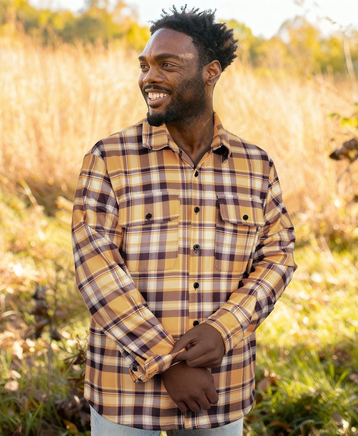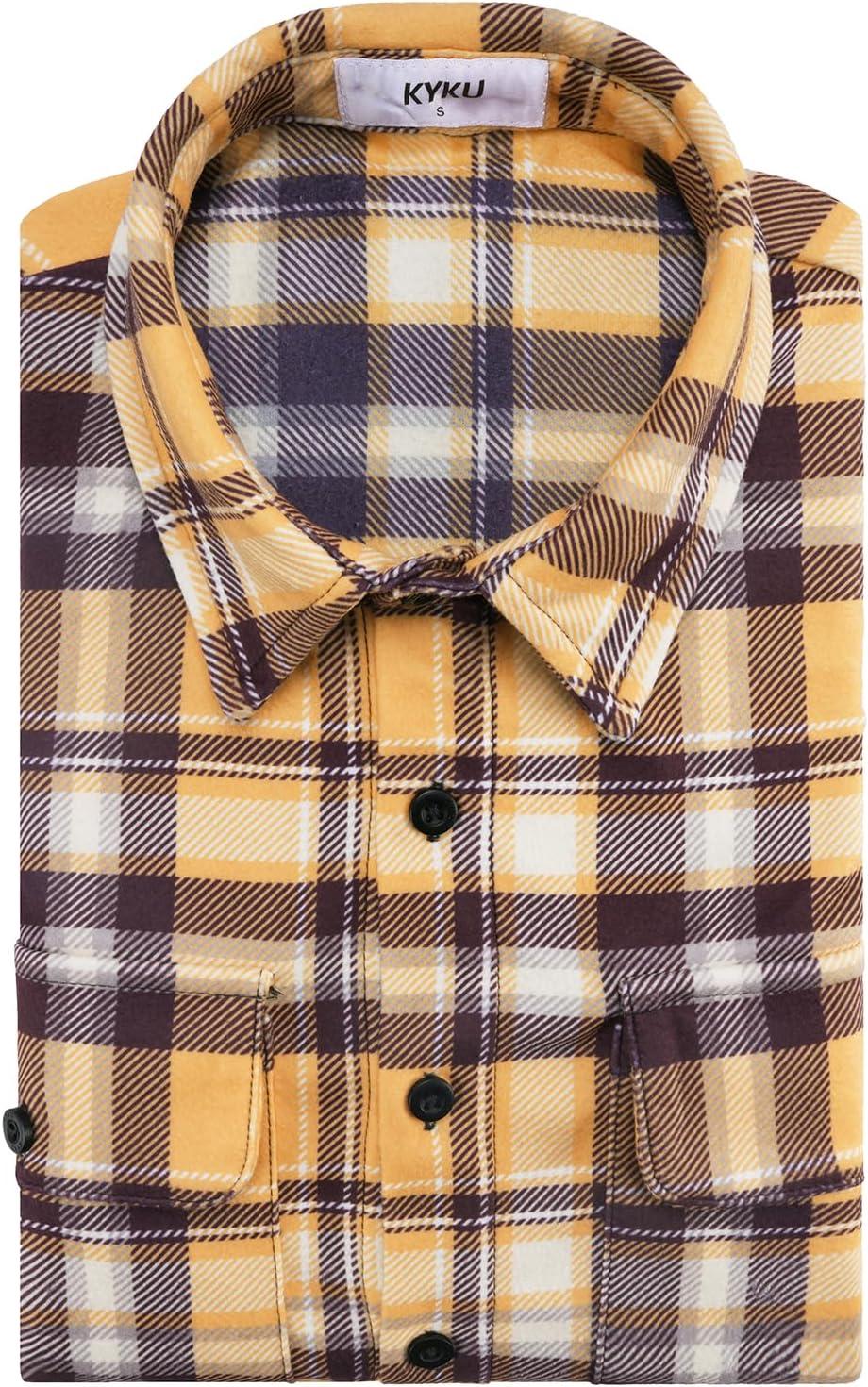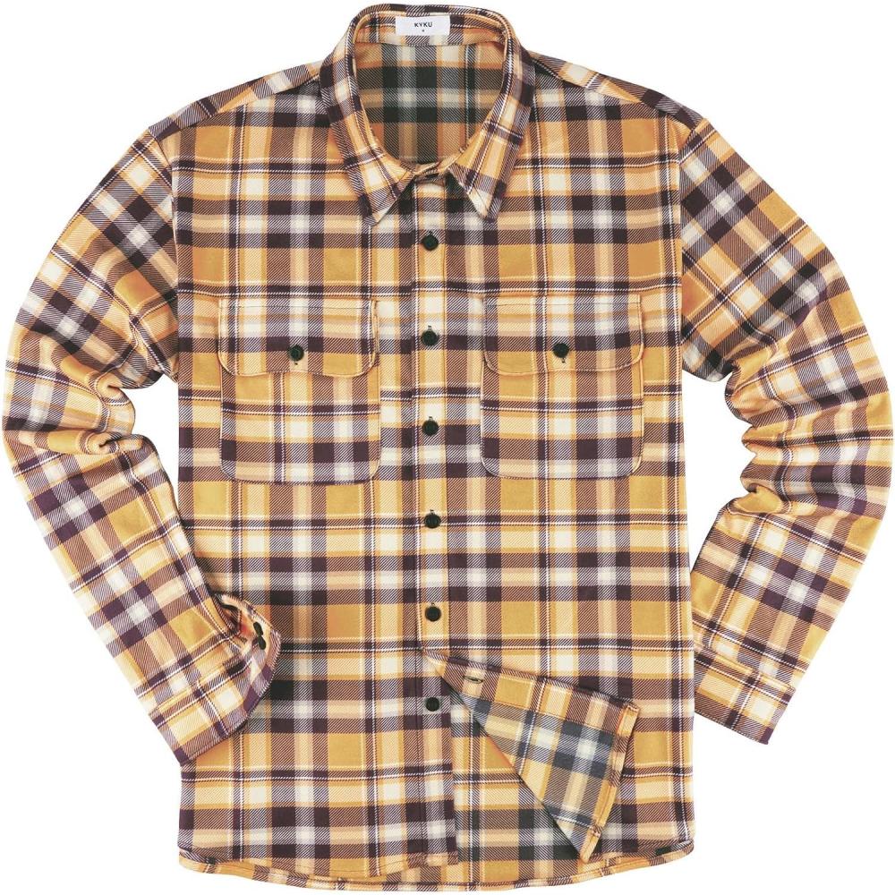 Be the first to review “KYKU Mens Flannel Shirts Soft Long Sleeve Button Down Shirt, Double-Sided Plaid Print, Two Pockets(Mustard Yellow Brown Plaid Flannel Shirt for Men)” Cancel reply