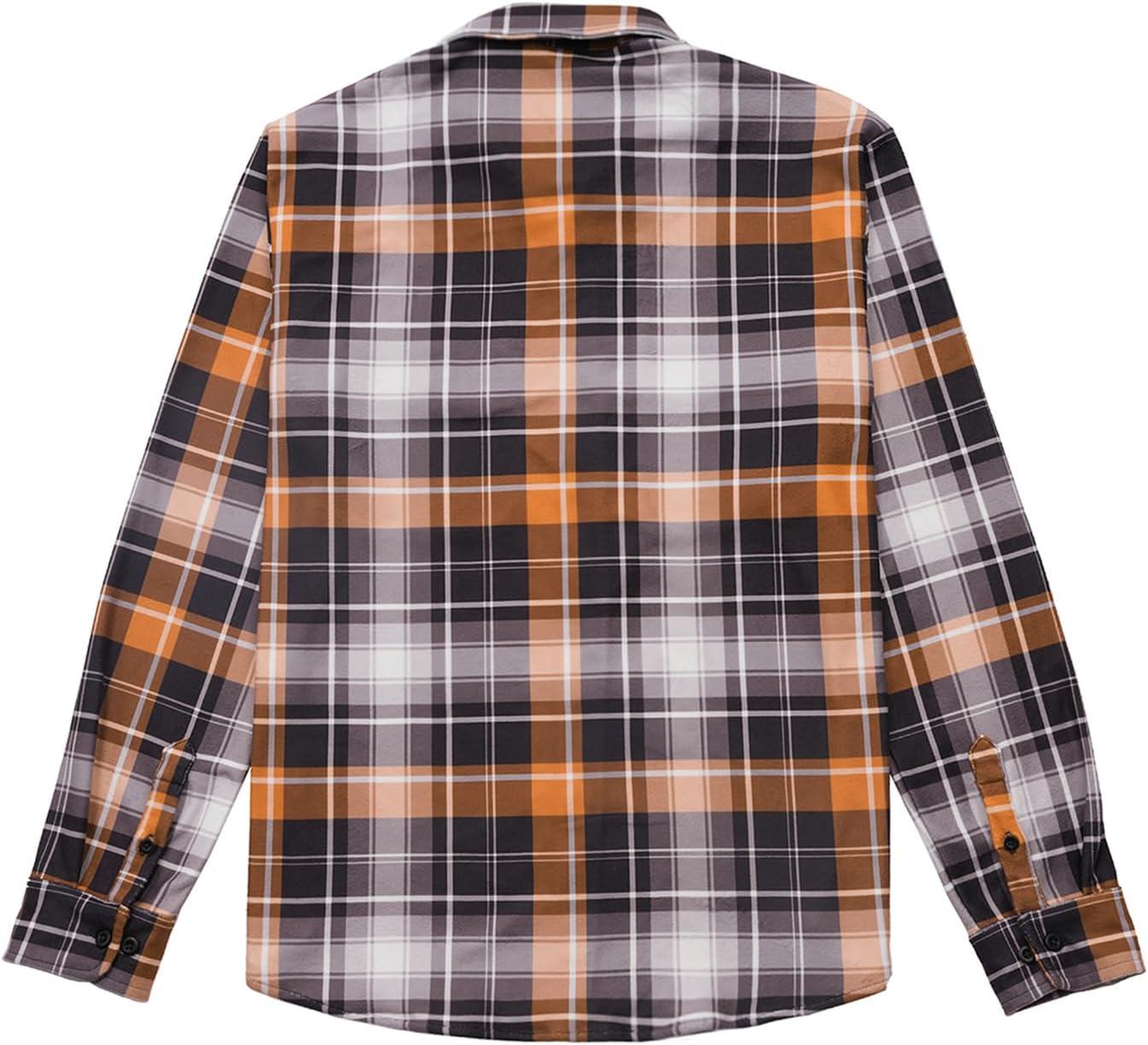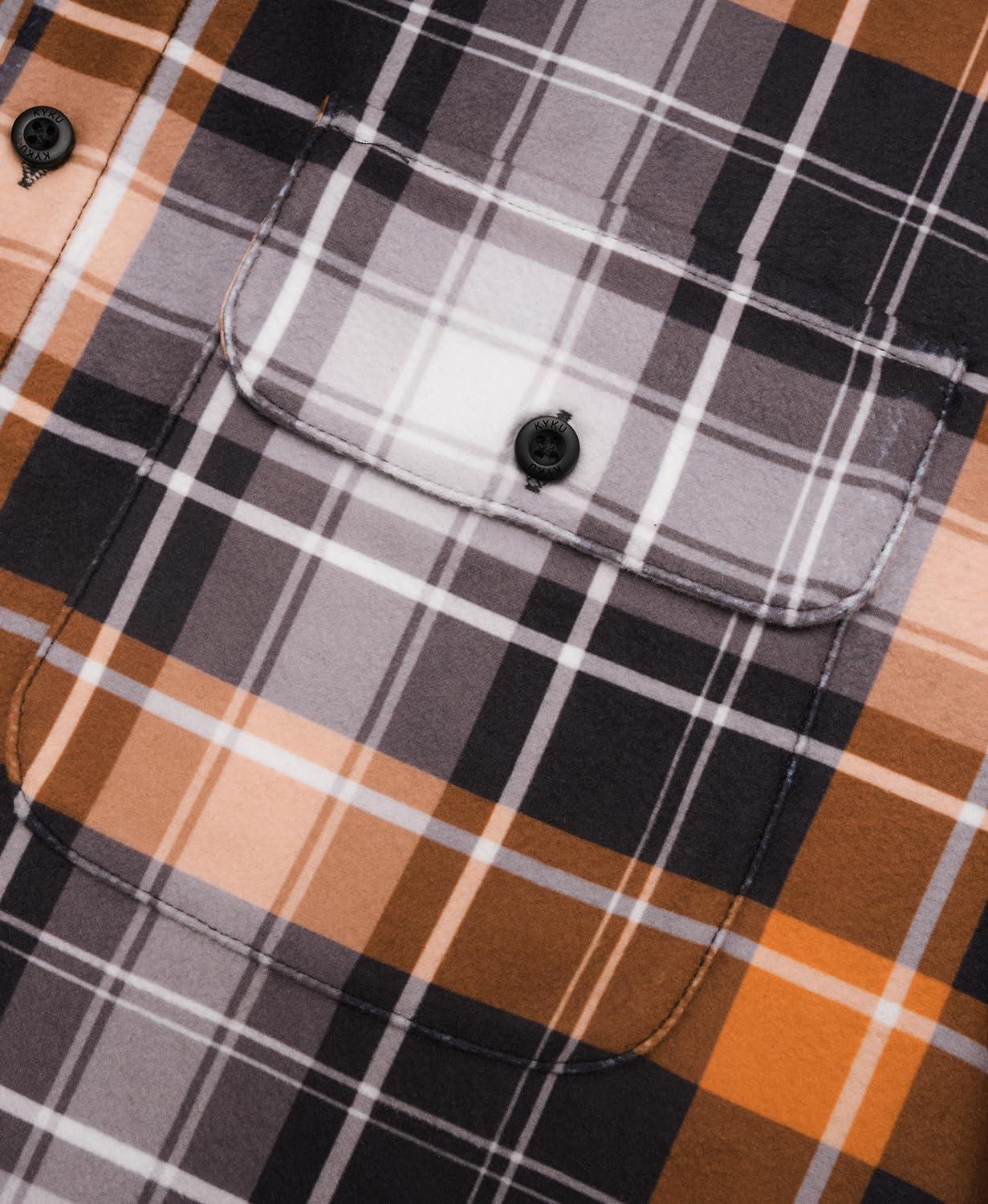 KYKU Mens Flannel Shirts Soft Long Sleeve Button Down Shirt, Double-Sided Plaid Print, Two Pockets(Orange Grey Plaid Flannel Shirt for Men)