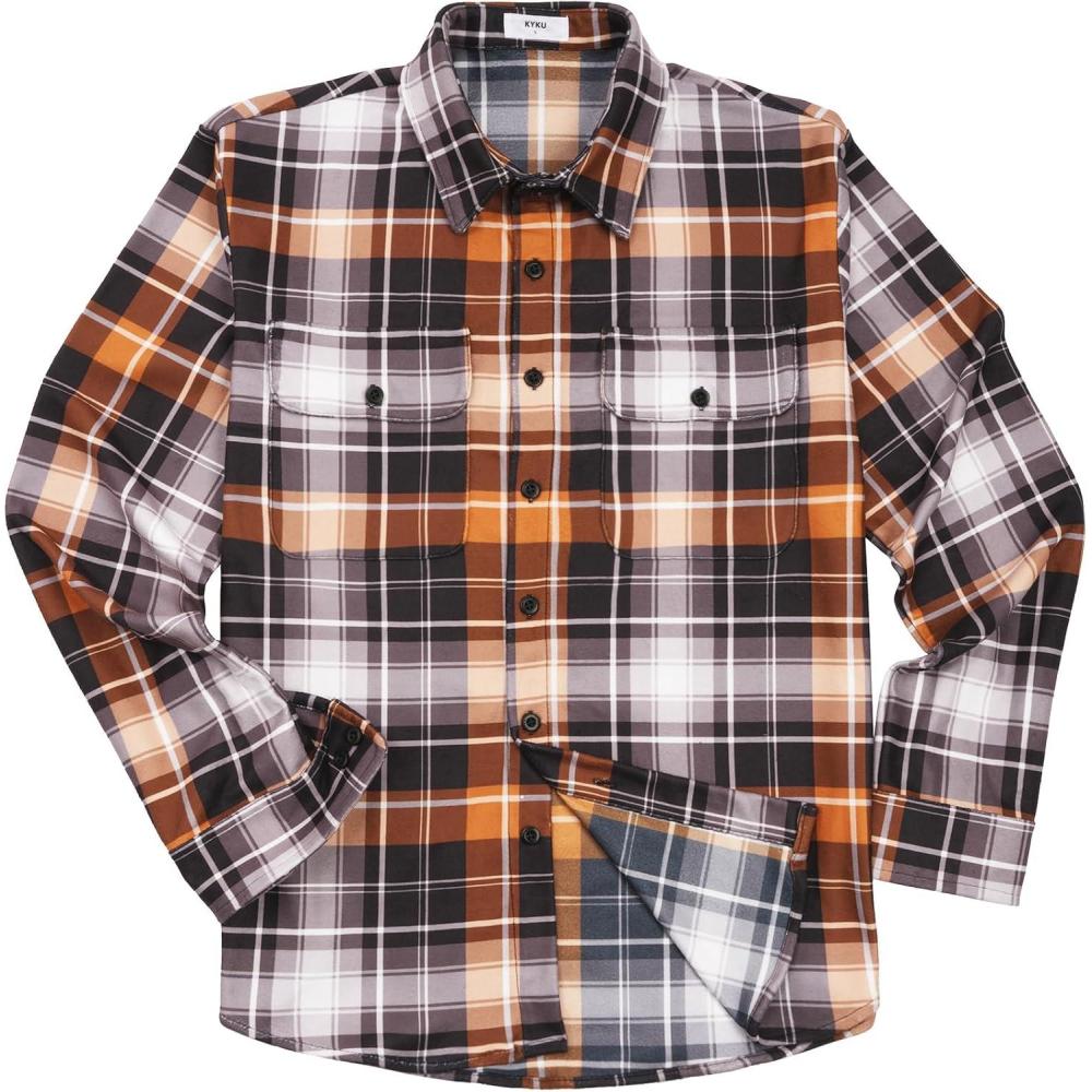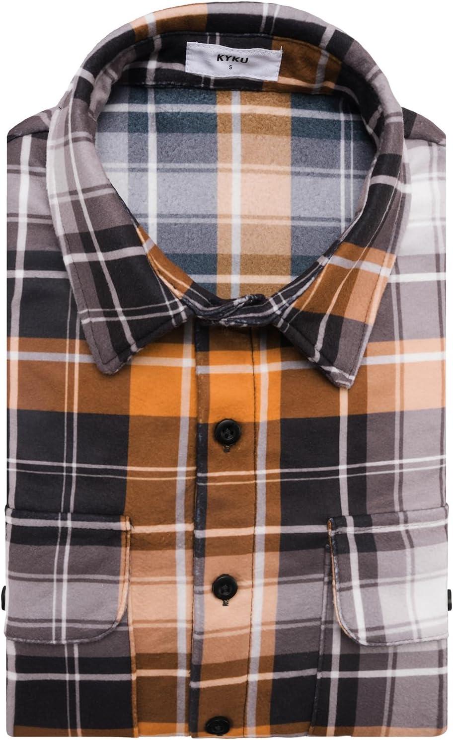 imageKYKU Mens Flannel Shirts Soft Long Sleeve Button Down Shirt DoubleSided Plaid Print Two PocketsOrange Buffalo Plaid Flannel Shirt for Men