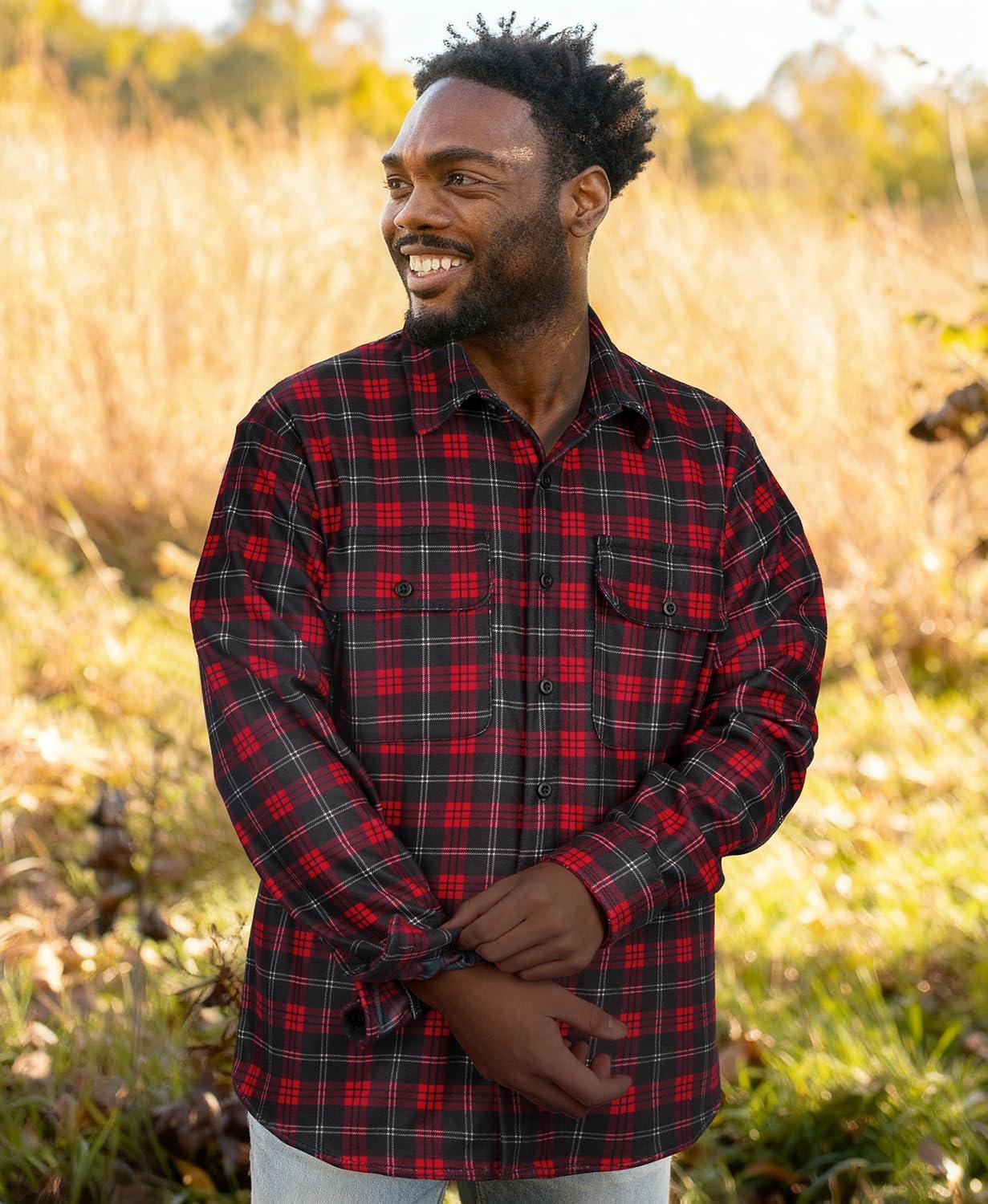 KYKU Mens Flannel Shirts Soft Long Sleeve Button Down Shirt, Double-Sided Plaid Print, Two Pockets(Red Black Plaid Flannel Shirt for Men)