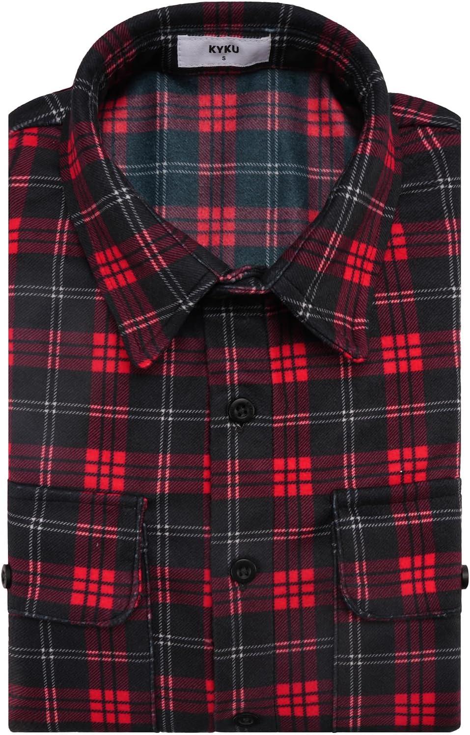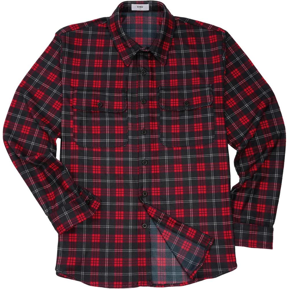 imageKYKU Mens Flannel Shirts Soft Long Sleeve Button Down Shirt DoubleSided Plaid Print Two PocketsRed Black Buffalo Plaid Flannel Shirt for Men