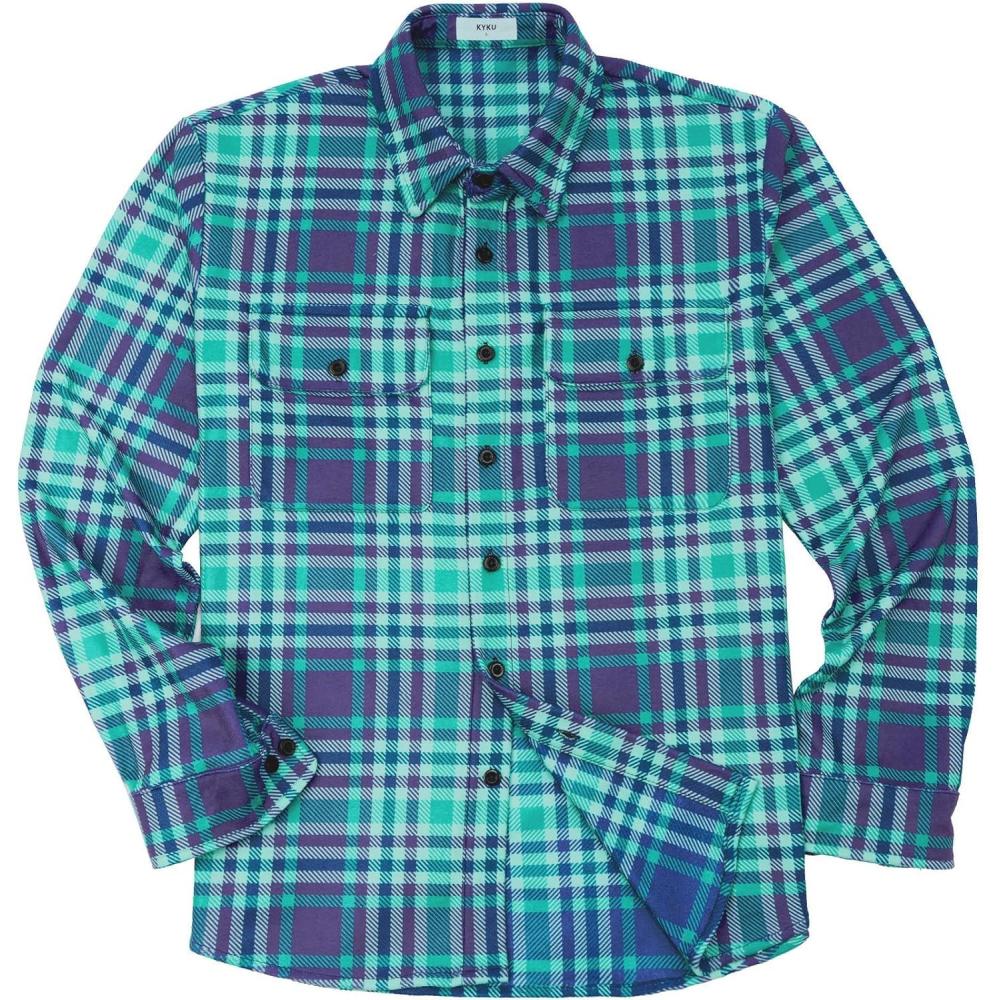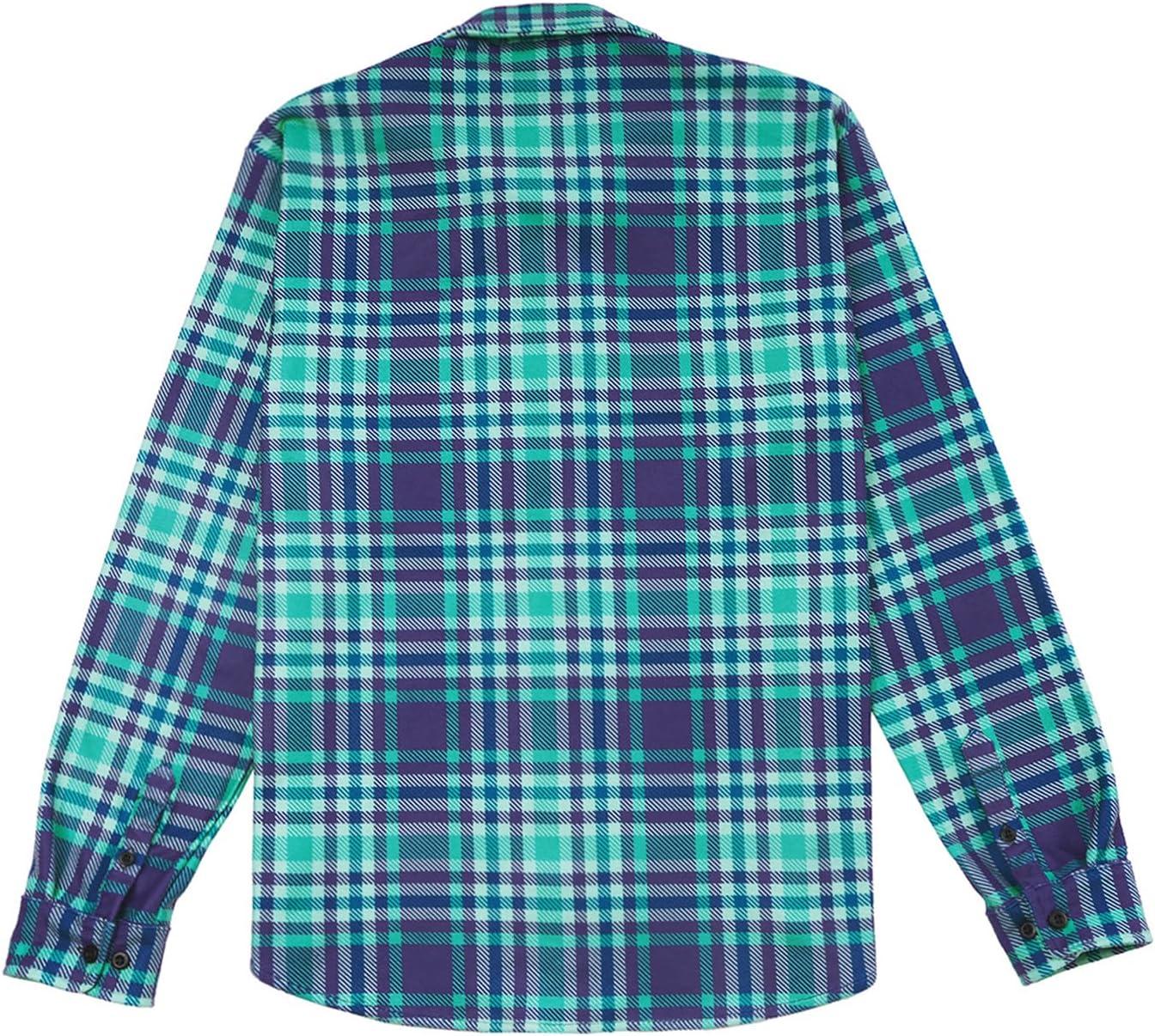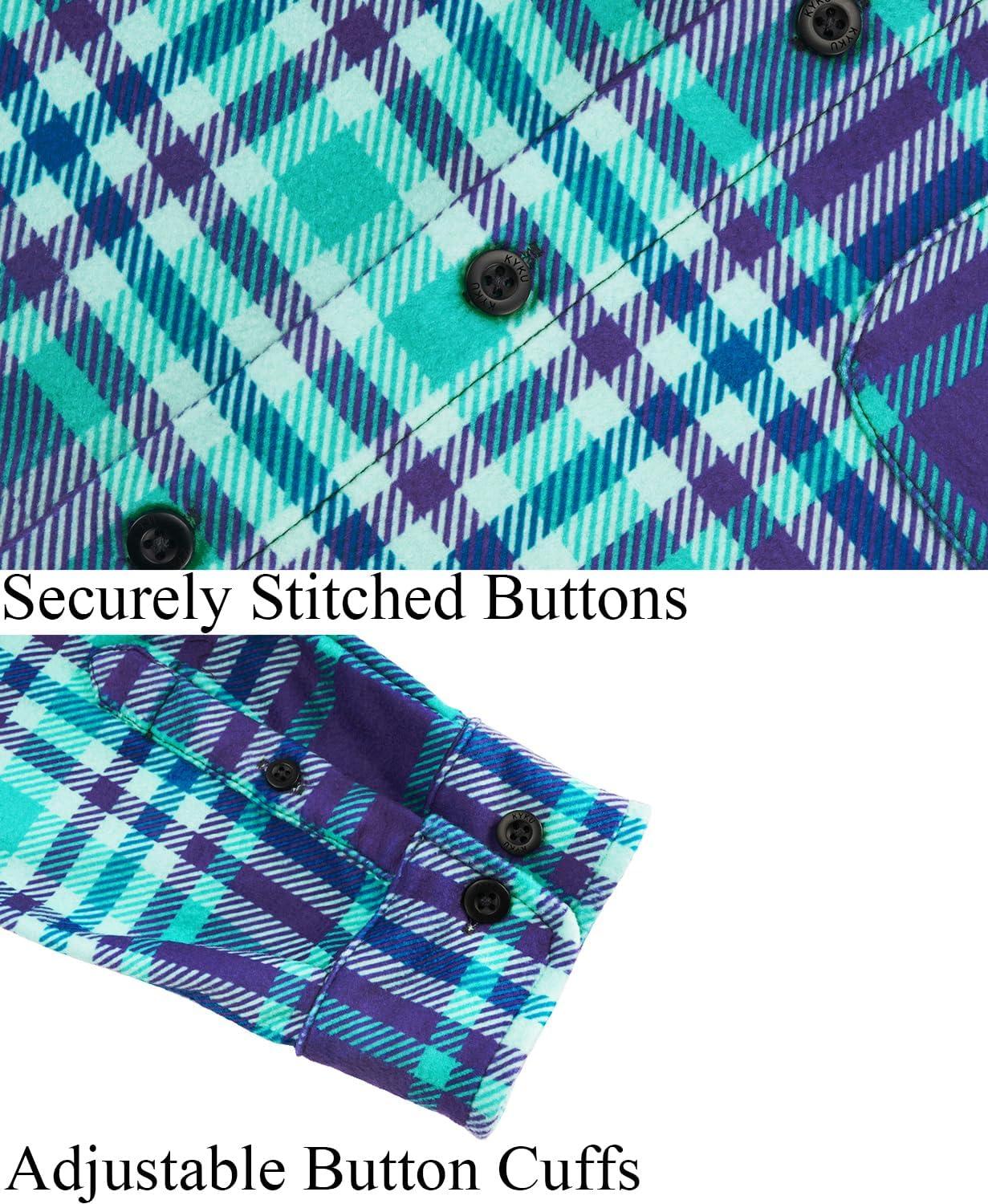 KYKU Mens Flannel Shirts Soft Long Sleeve Button Down Shirt, Double-Sided Plaid Print, Two Pockets(Turquoise Purple Plaid Flannel Shirt for Men)