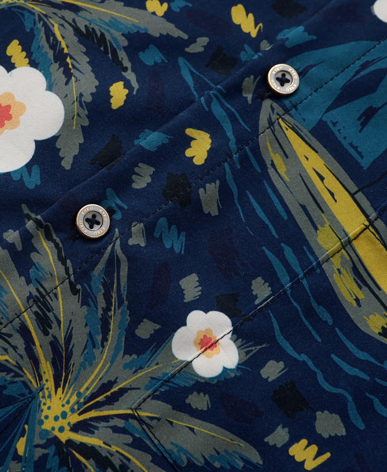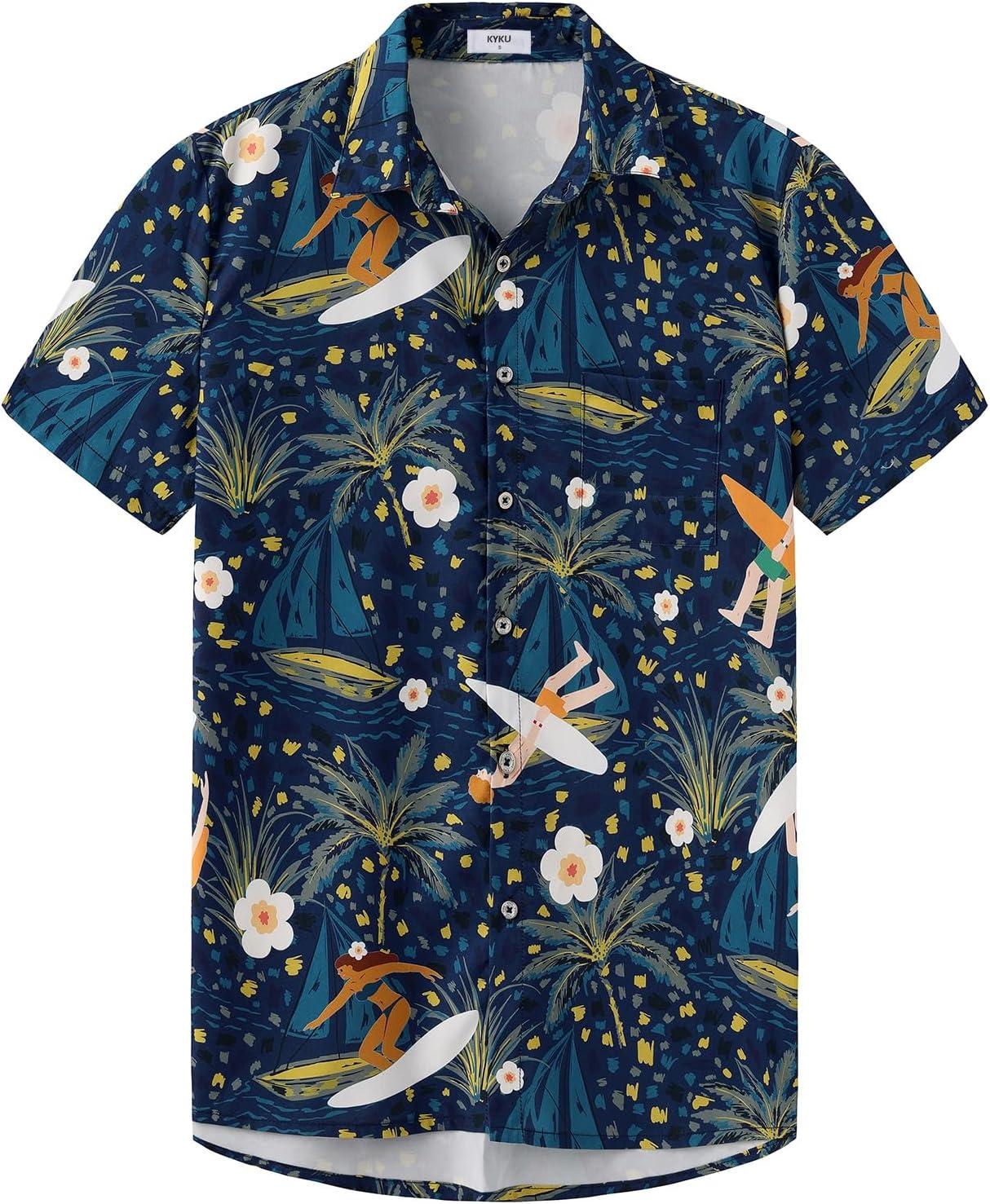 KYKU Men’s Hawaiian Shirt Short Sleeve Button Down Casual Tropical Summer Beach Vacation Shirts with Pocket(Blue Men Hawaiian Button Down Shirts)
