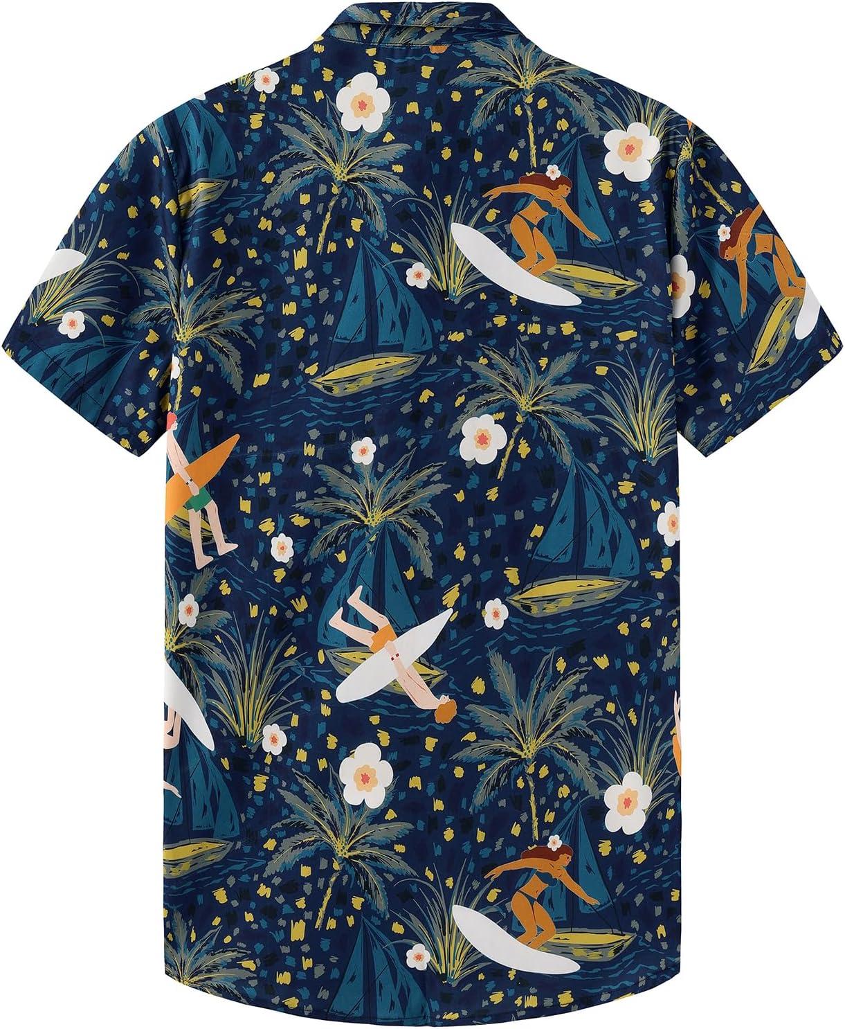 KYKU Men’s Hawaiian Shirt Short Sleeve Button Down Casual Tropical Summer Beach Vacation Shirts with Pocket(Blue Hawaiian Men Casual Button Down Shirt)