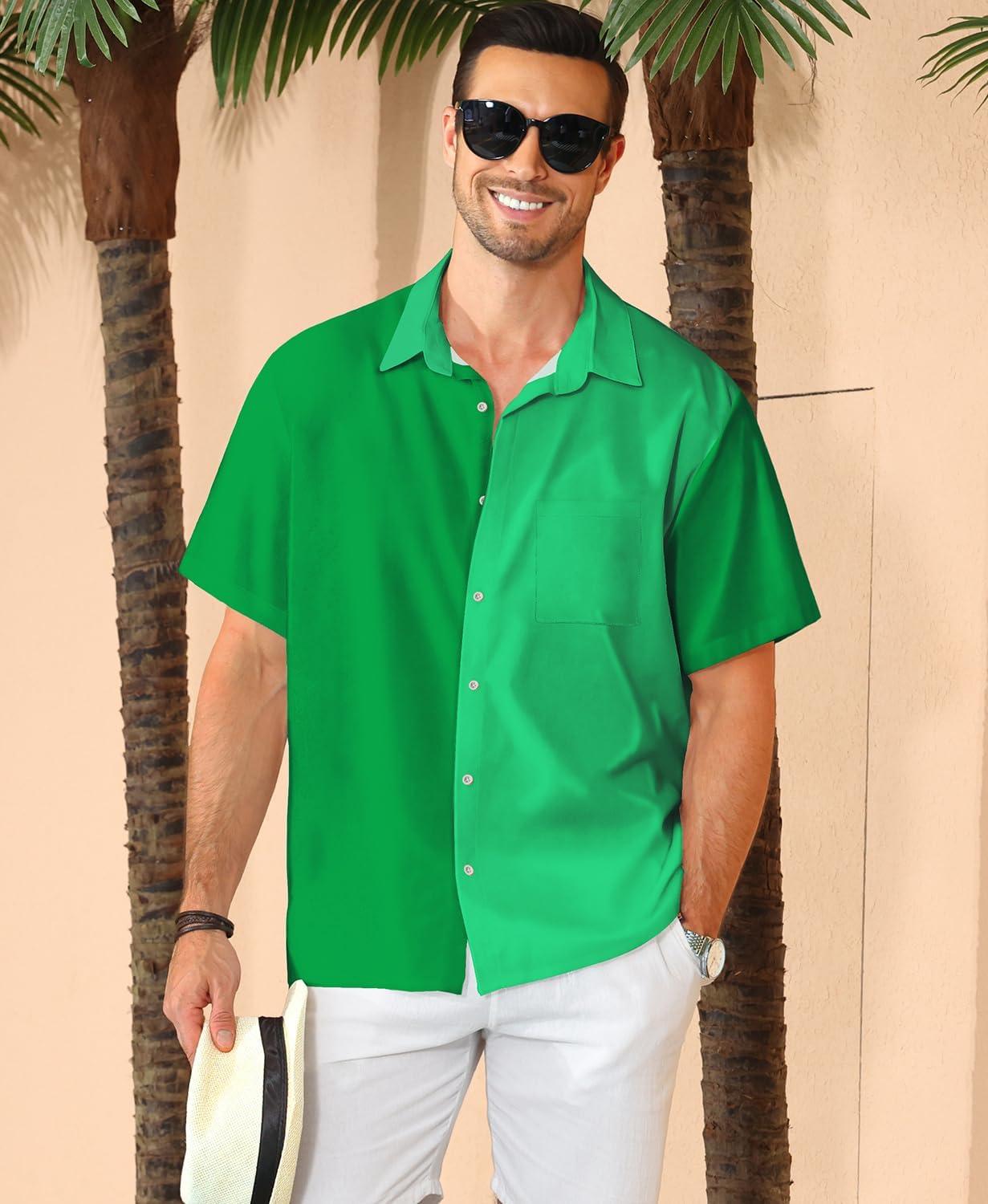 KYKU Men’s Hawaiian Shirt Short Sleeve Button Down Casual Tropical Summer Beach Vacation Shirts with Pocket(Green Summer Shirt for Men)