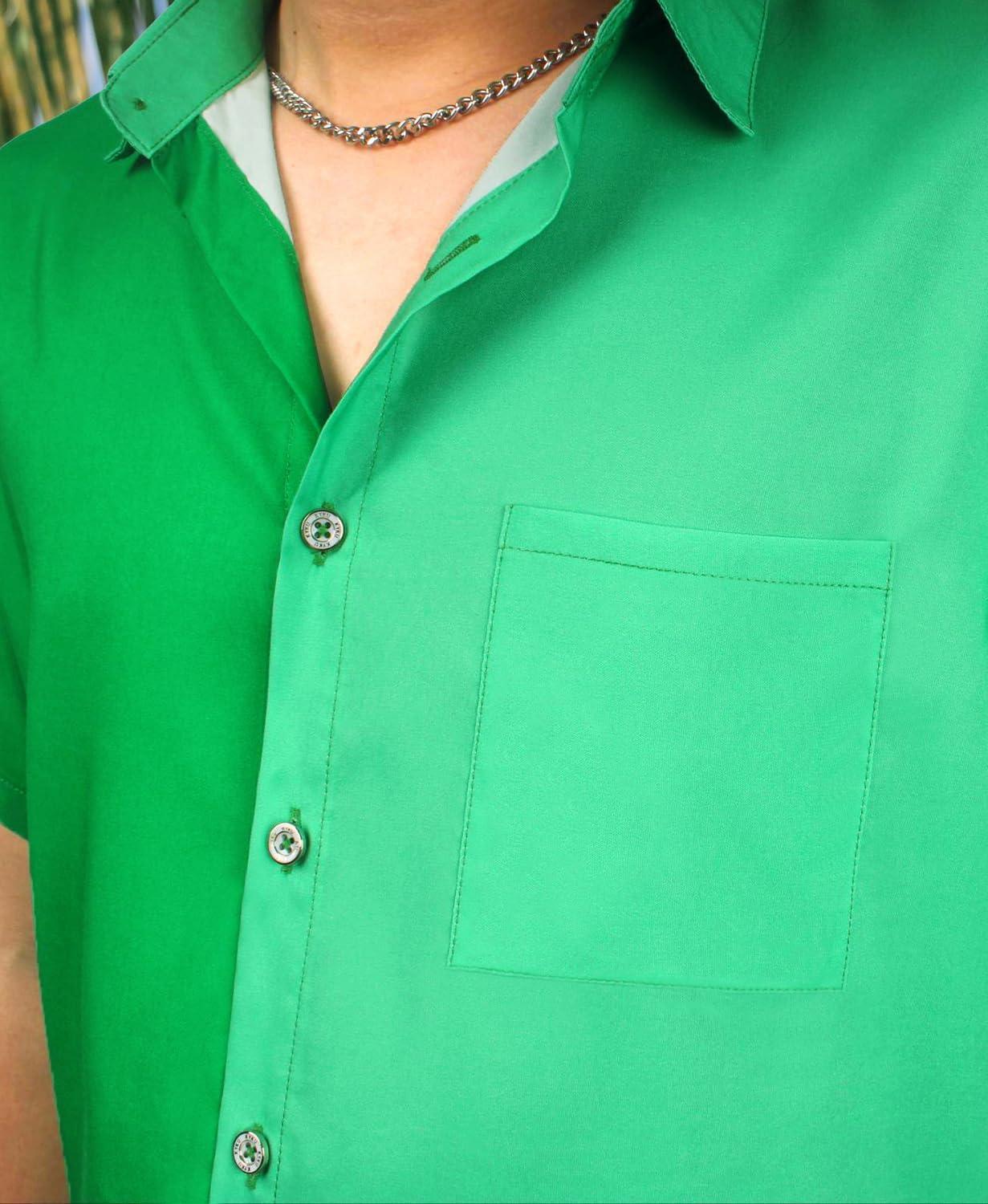 KYKU Men’s Hawaiian Shirt Short Sleeve Button Down Casual Tropical Summer Beach Vacation Shirts with Pocket(Green Hawaiian Men Button Down Shirt)