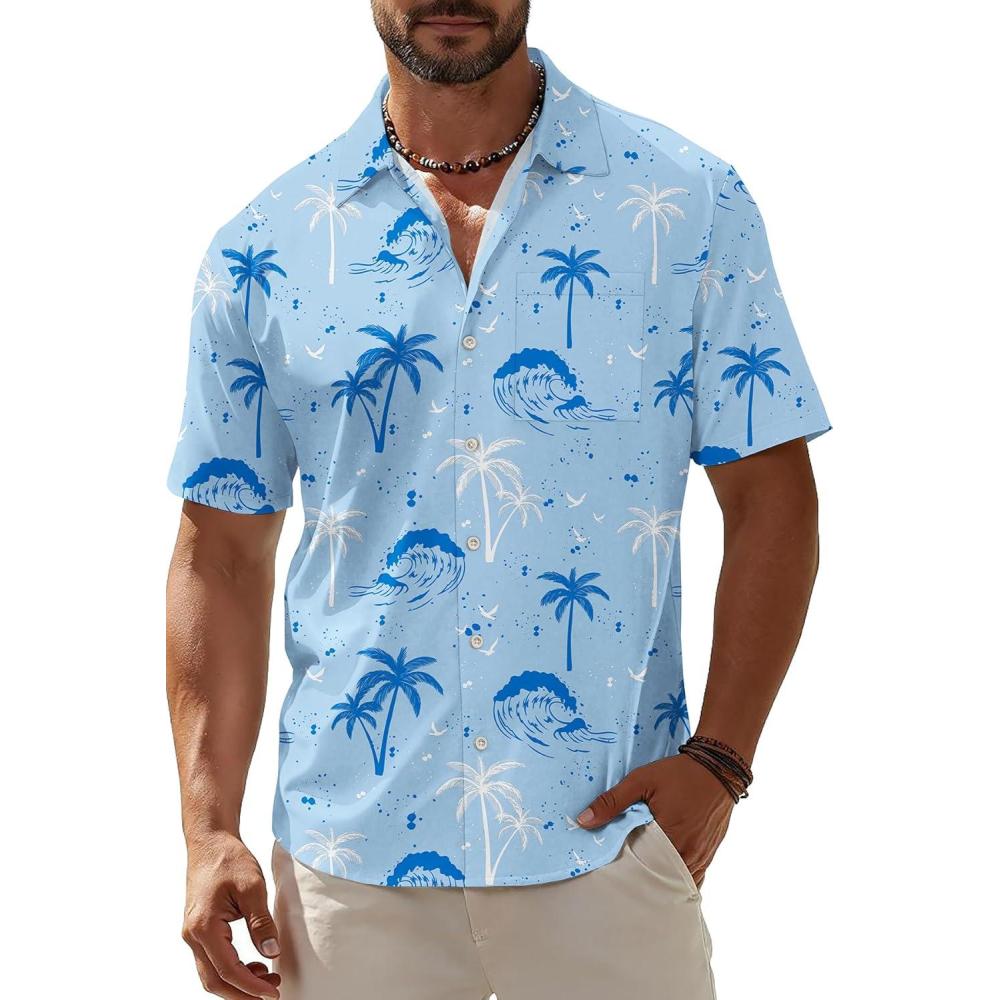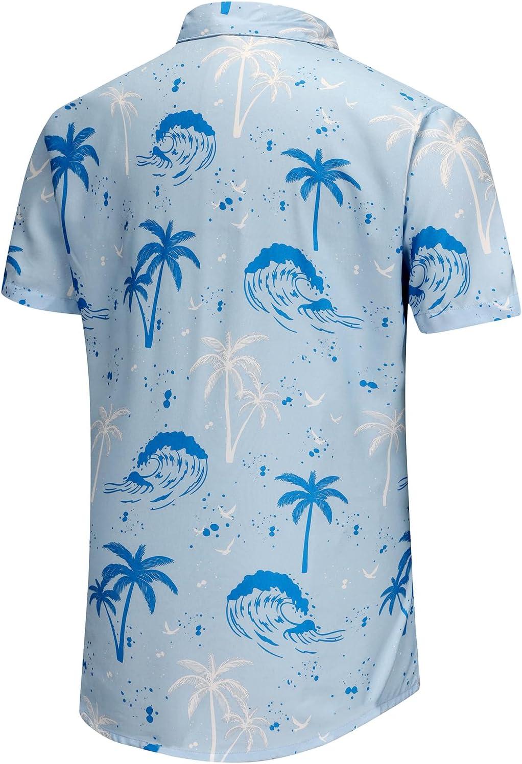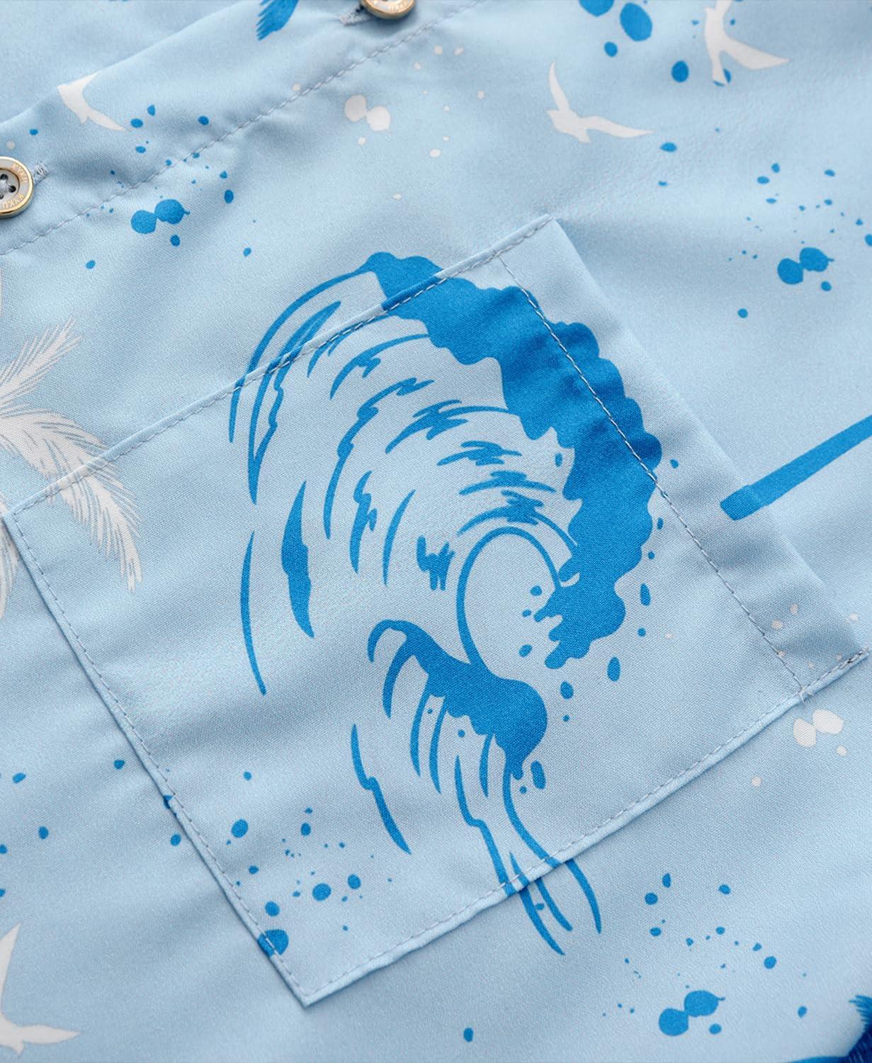 KYKU Men’s Hawaiian Shirt Short Sleeve Button Down Casual Tropical Summer Beach Vacation Shirts with Pocket(Light Blue Hawaiian Men Button Down Shirt)