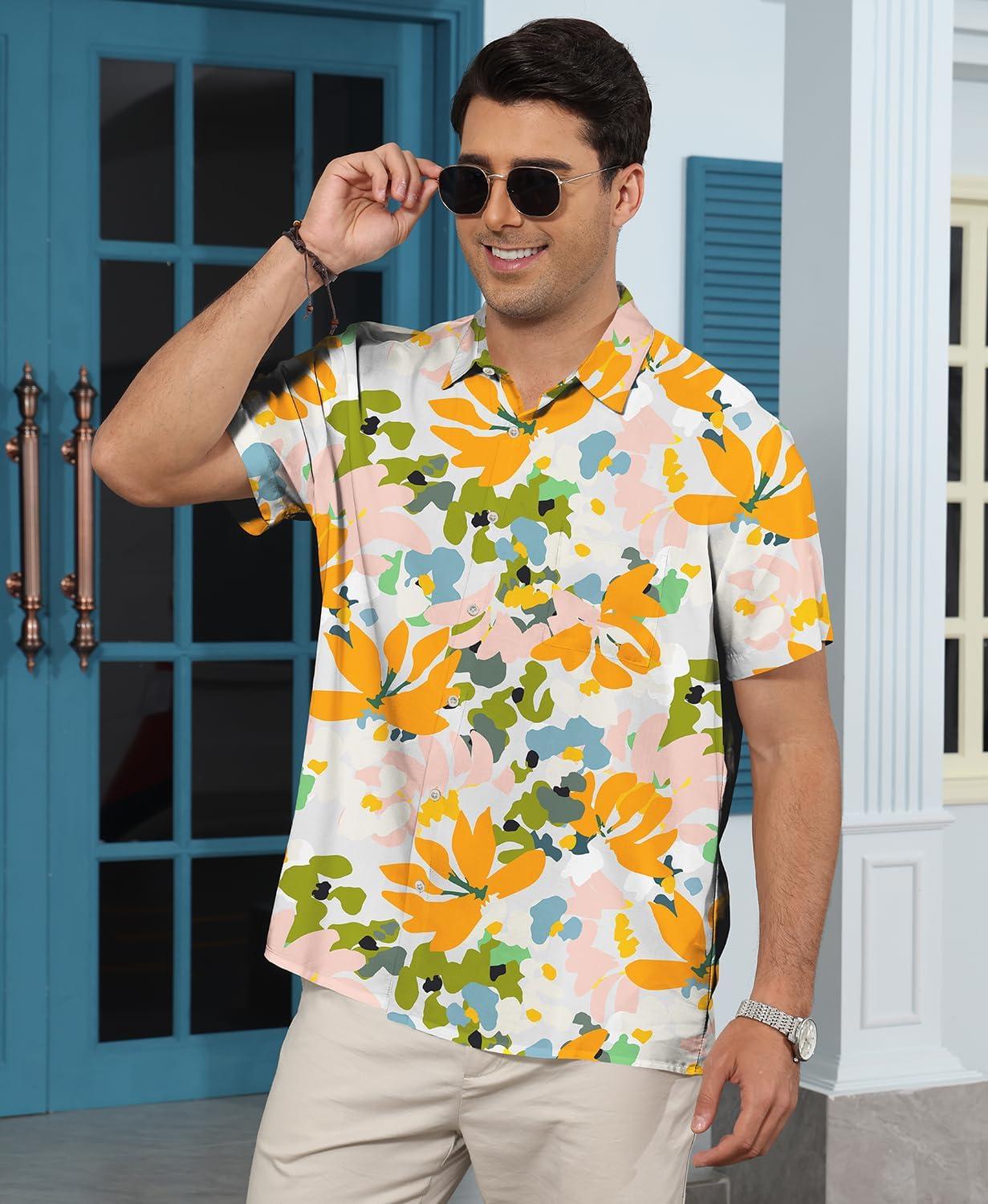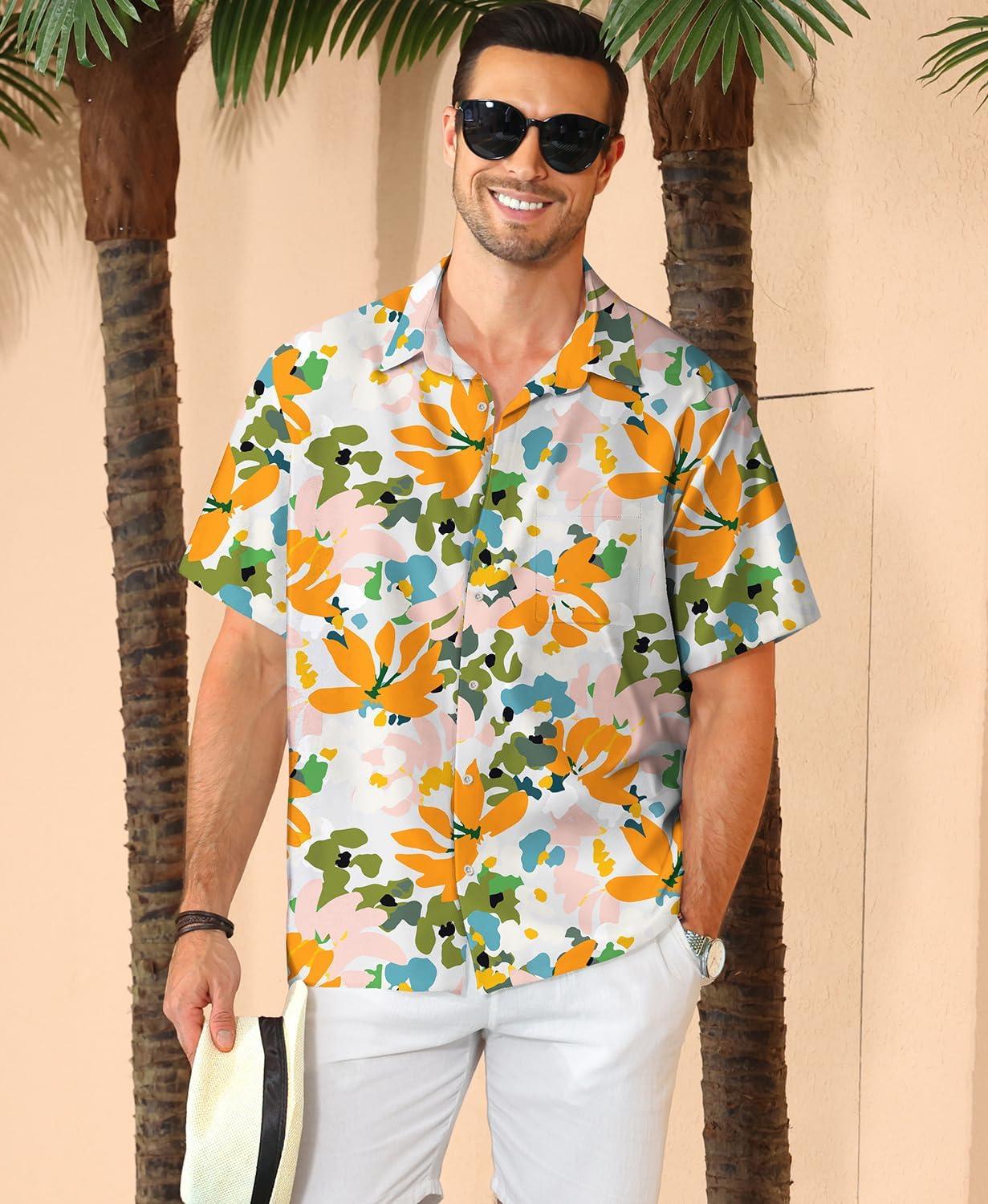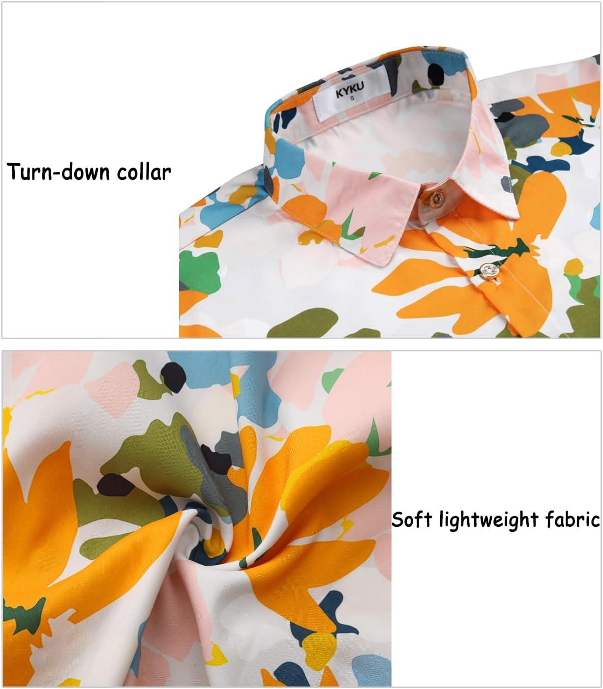 KYKU Men’s Hawaiian Shirt Short Sleeve Button Down Casual Tropical Summer Beach Vacation Shirts with Pocket(Multicolor Floral Hawaiian Shirt for Men)