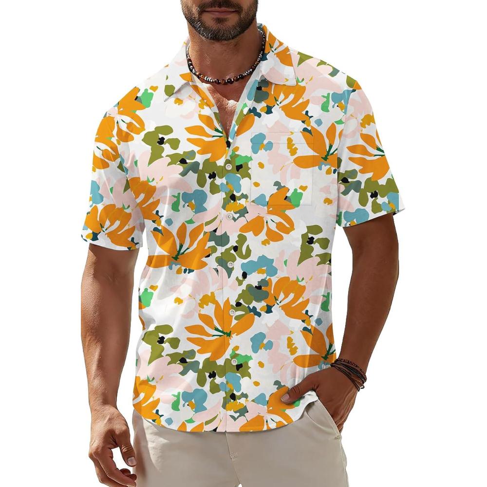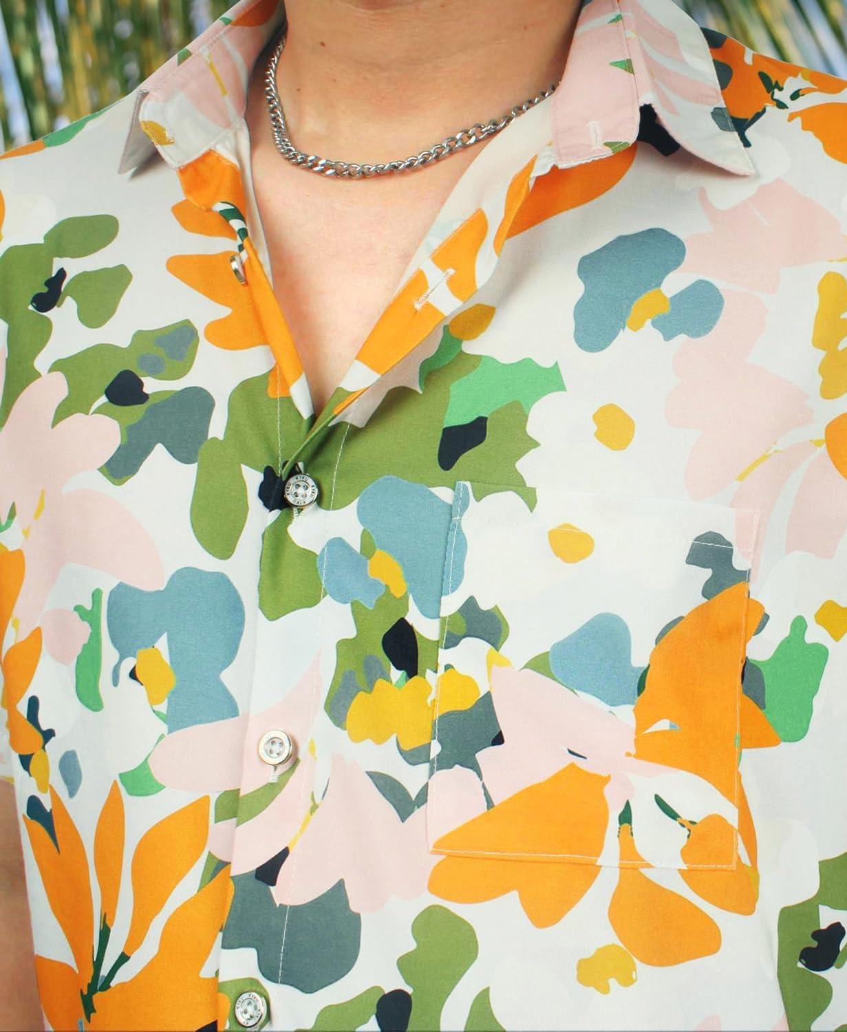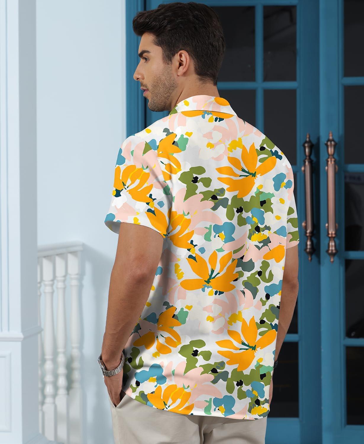 KYKU Men’s Hawaiian Shirt Short Sleeve Button Down Casual Tropical Summer Beach Vacation Shirts with Pocket(Multicolor Floral Hawaiian Shirt for Men)