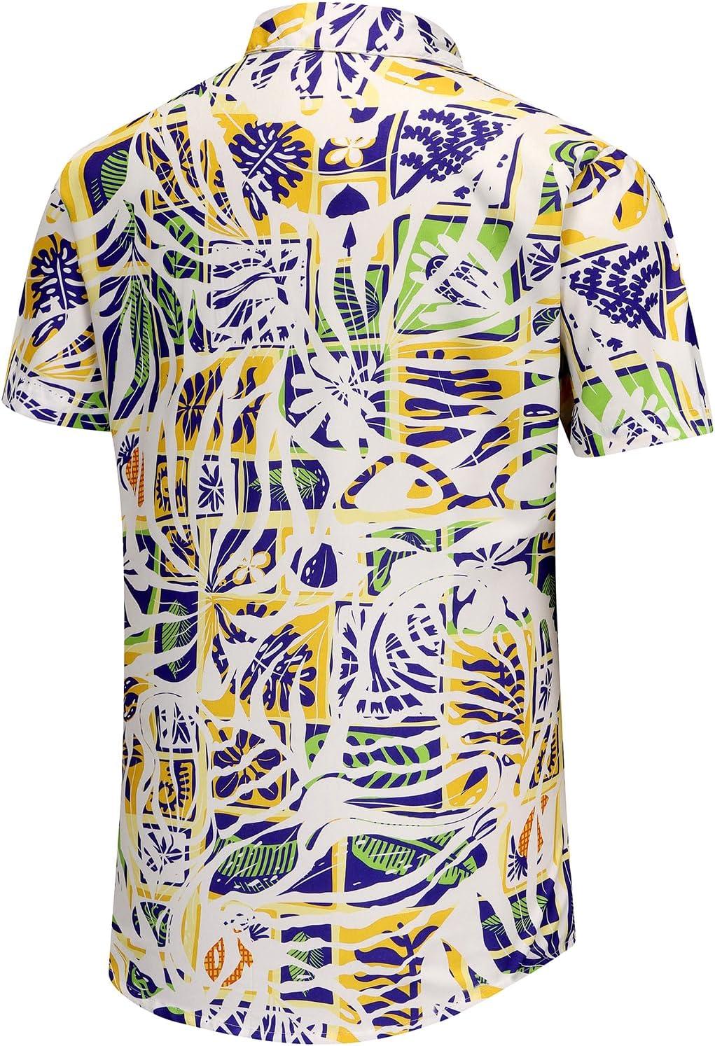 KYKU Men’s Hawaiian Shirt Short Sleeve Button Down Casual Tropical Summer Beach Vacation Shirts with Pocket(Multicolor Hawaiian Shirt for Men)