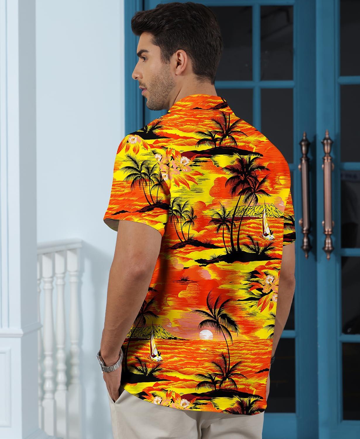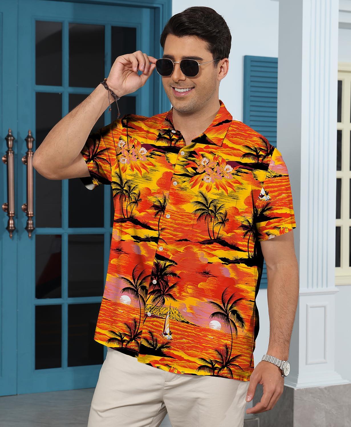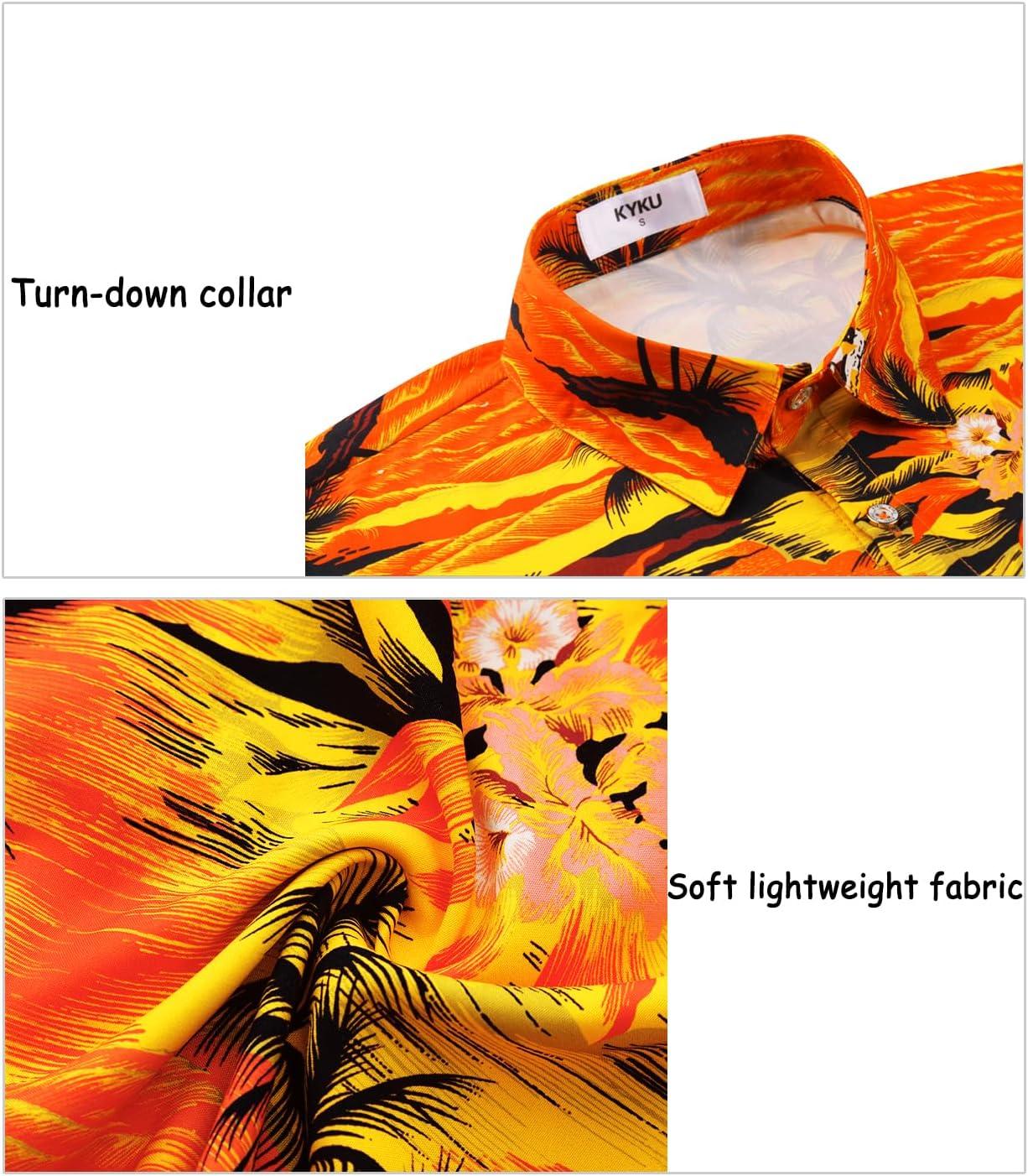 KYKU Men’s Hawaiian Shirt Short Sleeve Button Down Casual Tropical Summer Beach Vacation Shirts with Pocket(Orange Hawaiian Shirt for Men)
