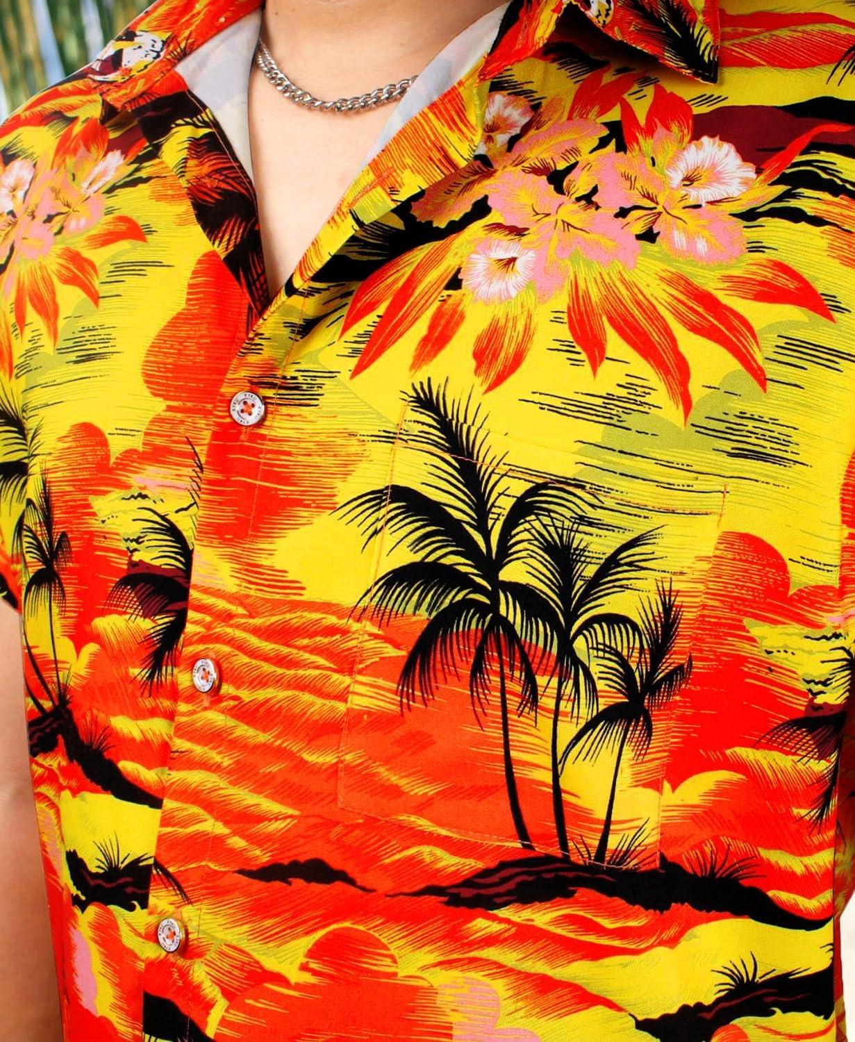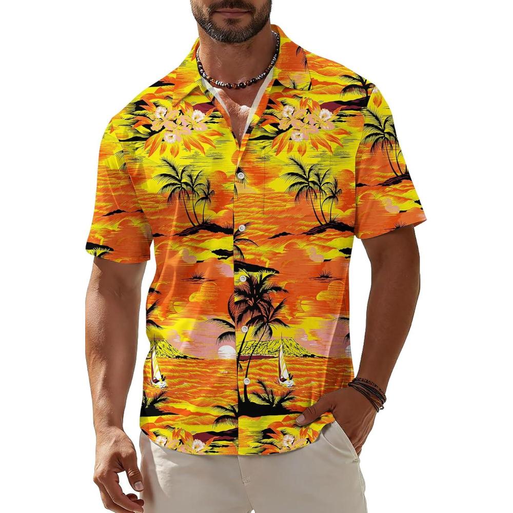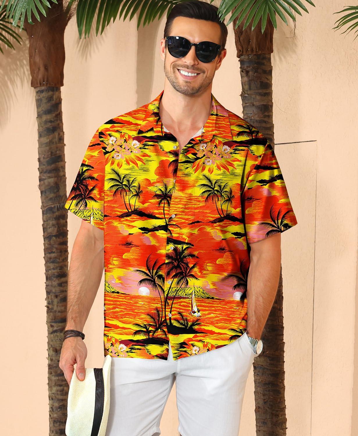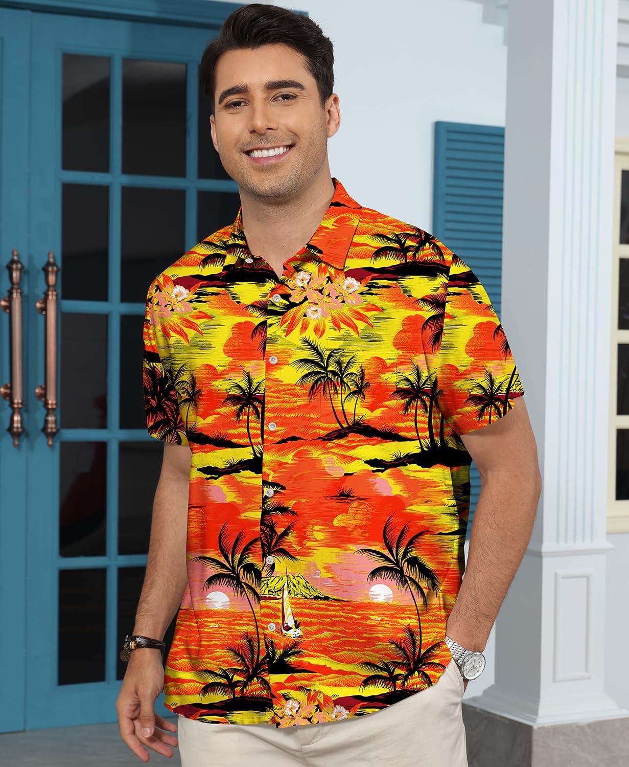 KYKU Men’s Hawaiian Shirt Short Sleeve Button Down Casual Tropical Summer Beach Vacation Shirts with Pocket(Orange Hawaiian Shirt for Men)