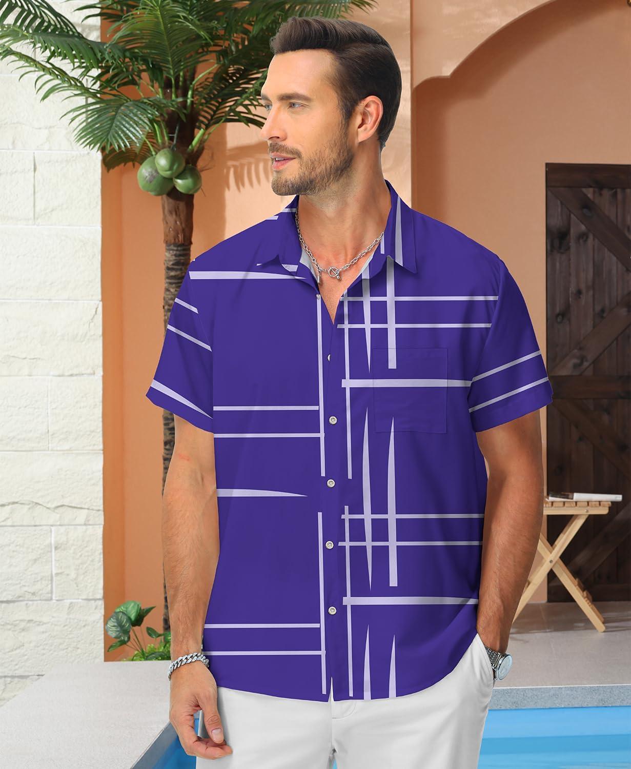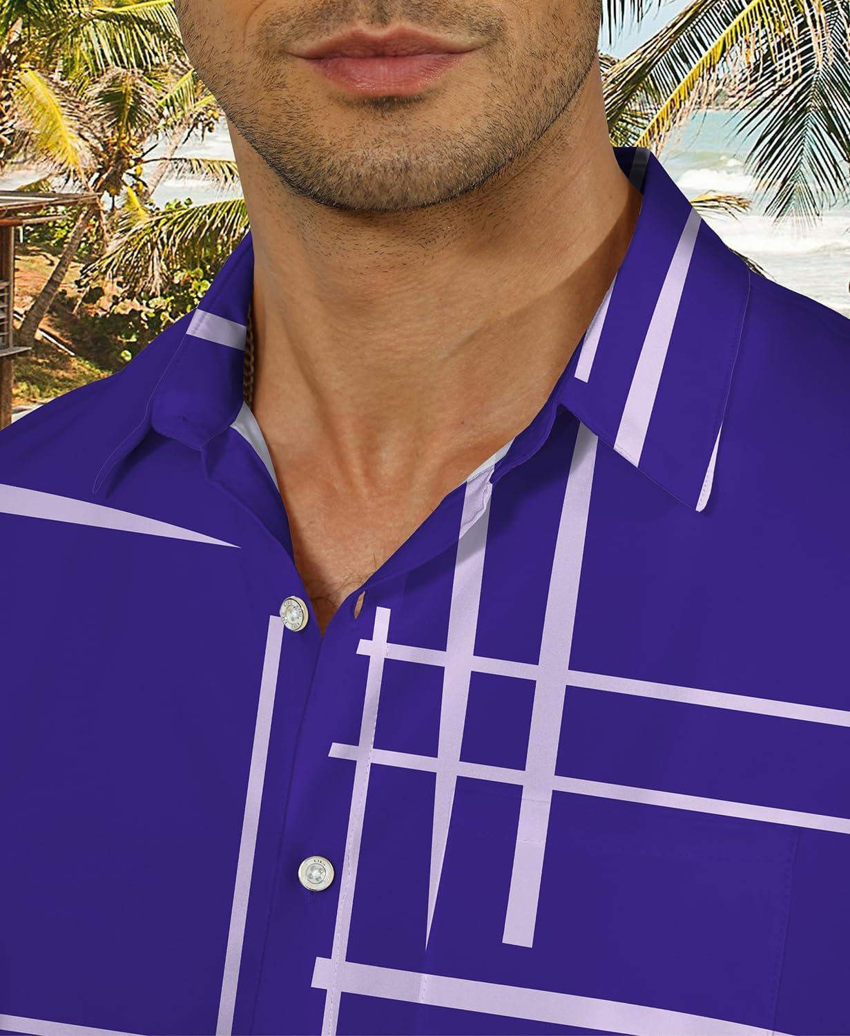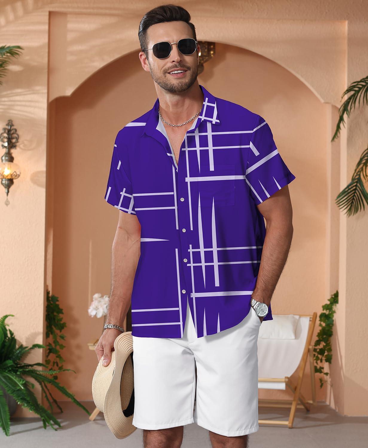 KYKU Men’s Hawaiian Shirt Short Sleeve Button Down Casual Tropical Summer Beach Vacation Shirts with Pocket(Purple Mens Casual Shirts)