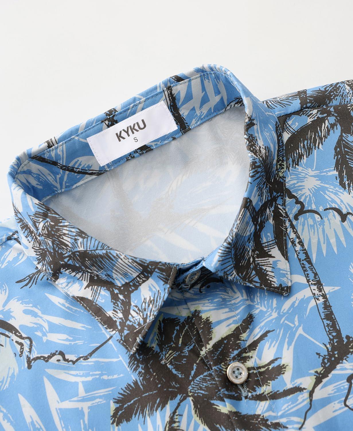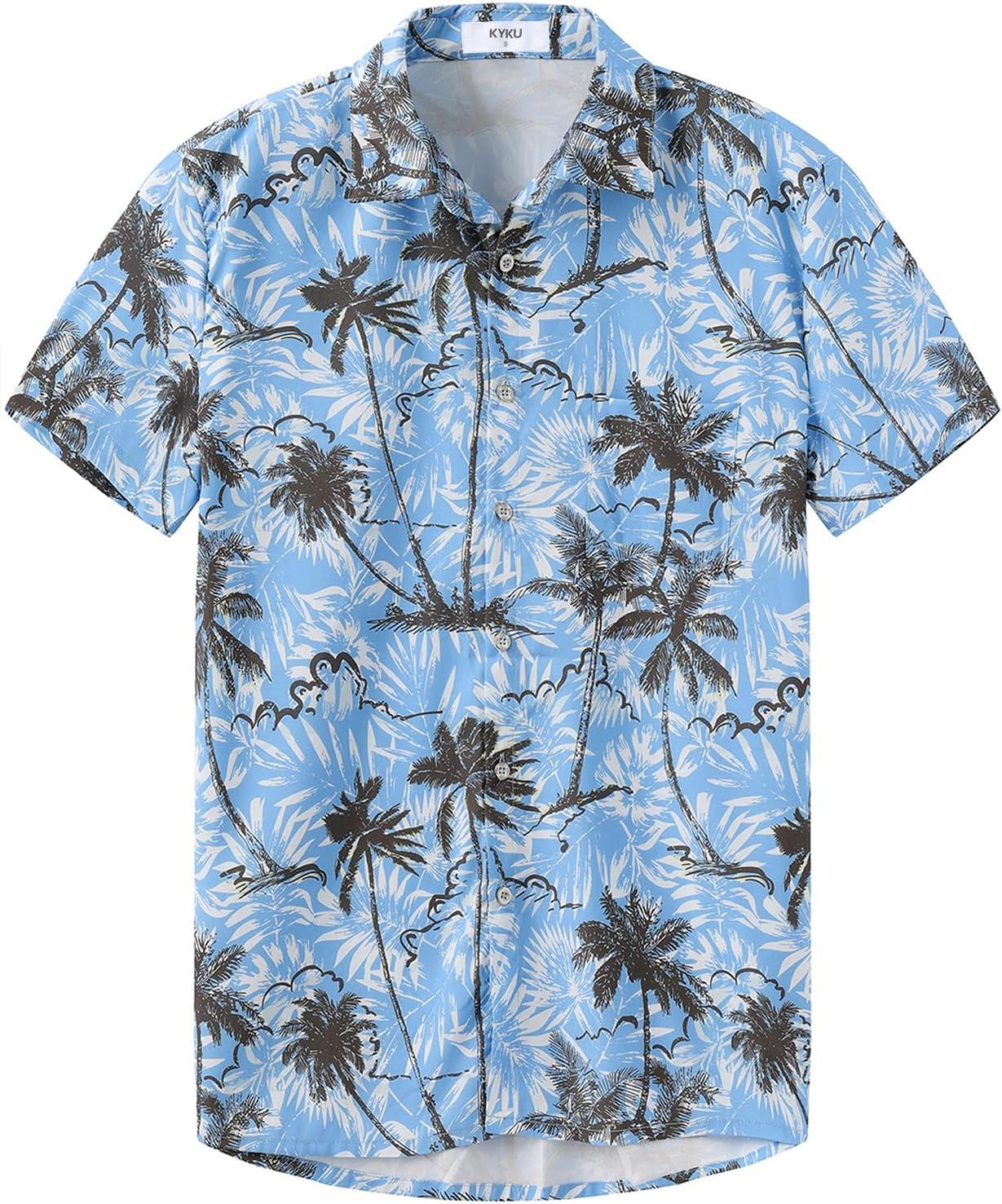 KYKU Men’s Hawaiian Shirt Short Sleeve Button Down Casual Tropical Summer Beach Vacation Shirts with Pocket(Tree Blue Men Hawaiian Button Shirts)