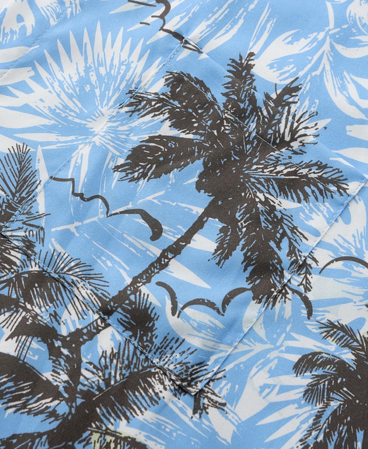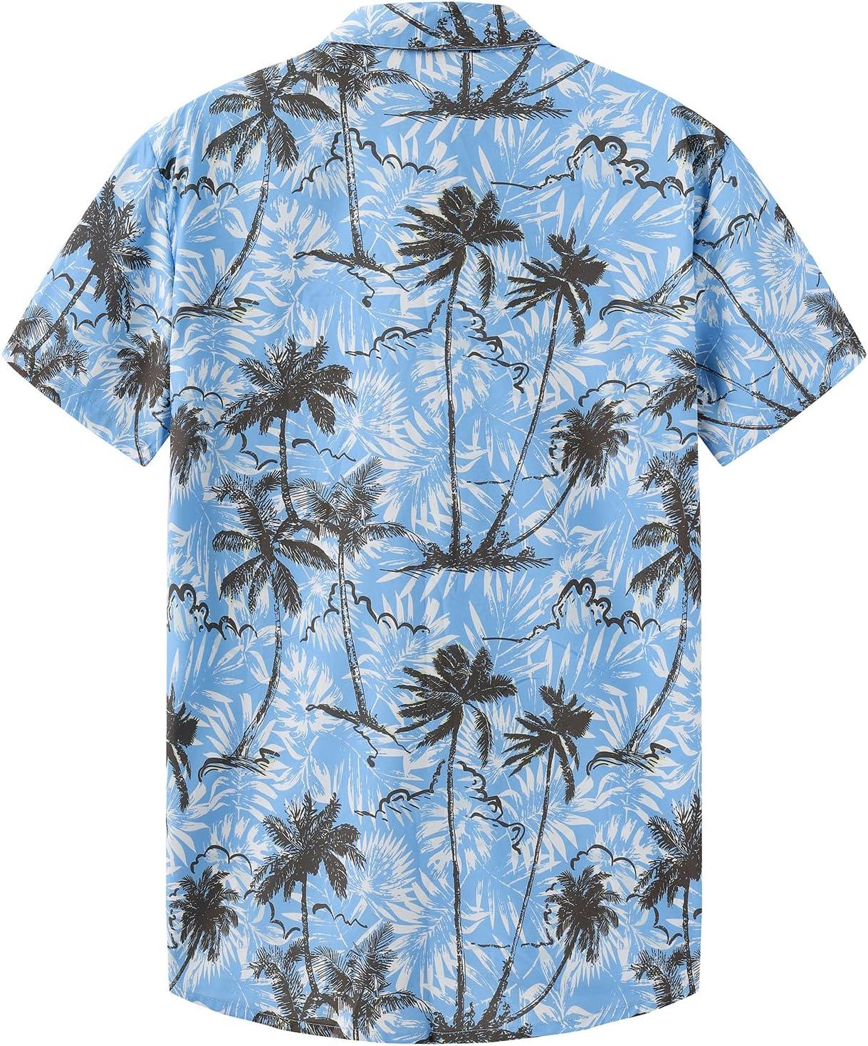 KYKU Men’s Hawaiian Shirt Short Sleeve Button Down Casual Tropical Summer Beach Vacation Shirts with Pocket(Tree Blue Hawaiian Shirt for Men)