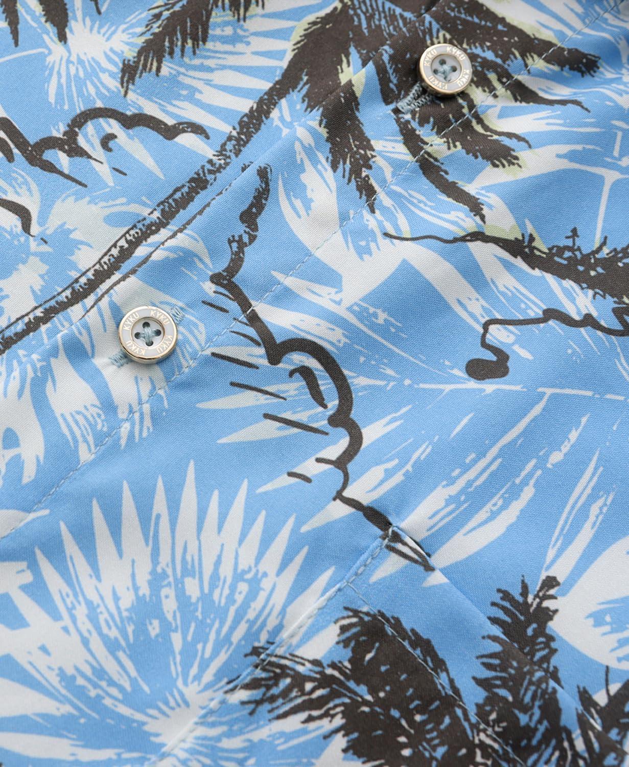 KYKU Men’s Hawaiian Shirt Short Sleeve Button Down Casual Tropical Summer Beach Vacation Shirts with Pocket(Tree Blue Men Hawaiian Button Shirt)