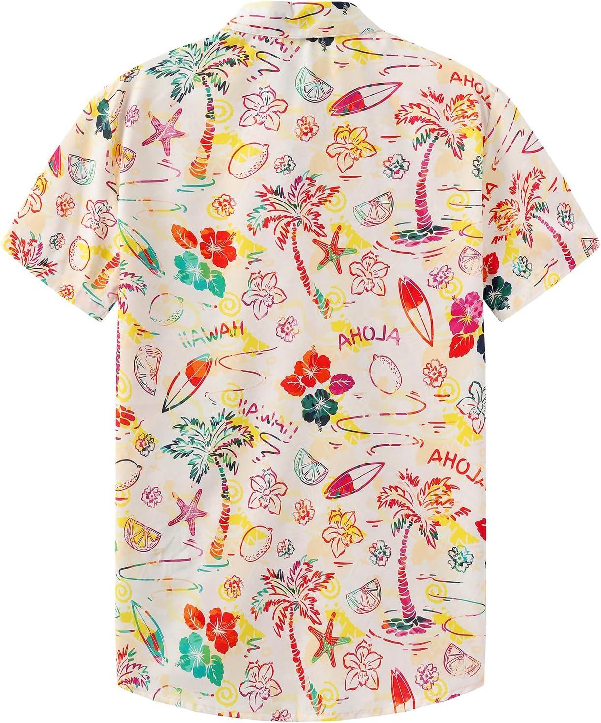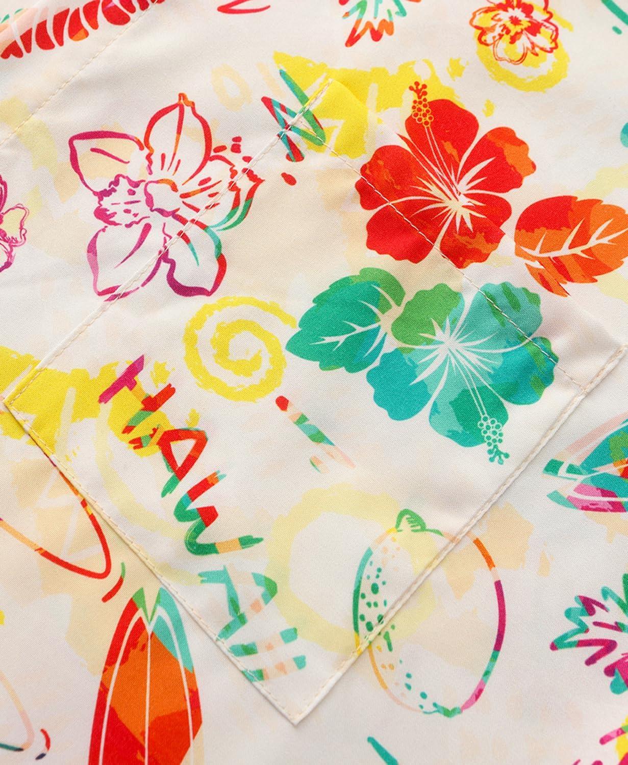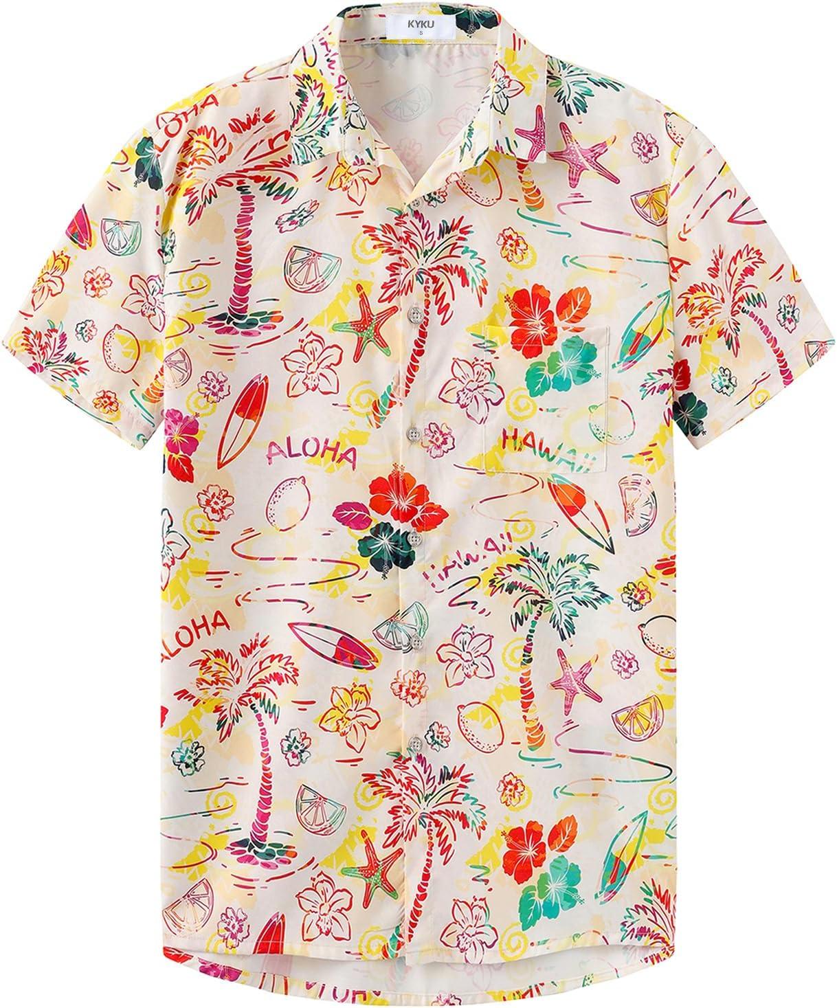 KYKU Men’s Hawaiian Shirt Short Sleeve Button Down Casual Tropical Summer Beach Vacation Shirts with Pocket(Tropical Multicolor Men Hawaiian Button Shirt)