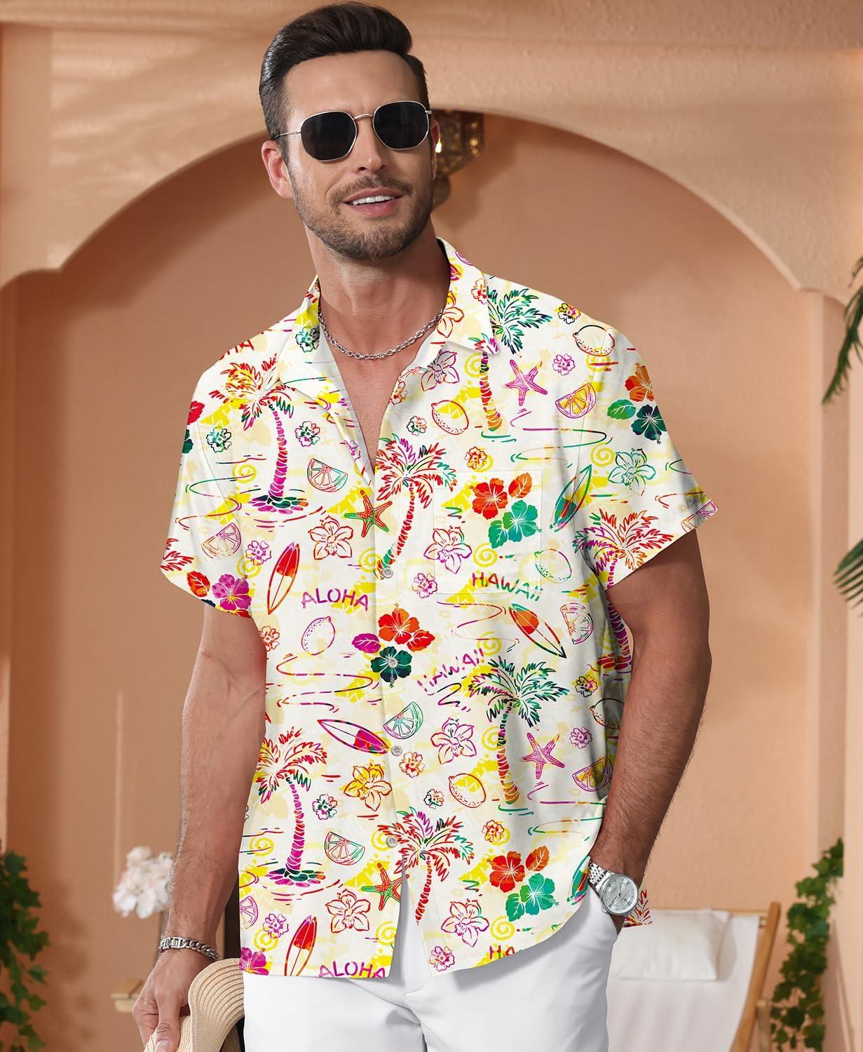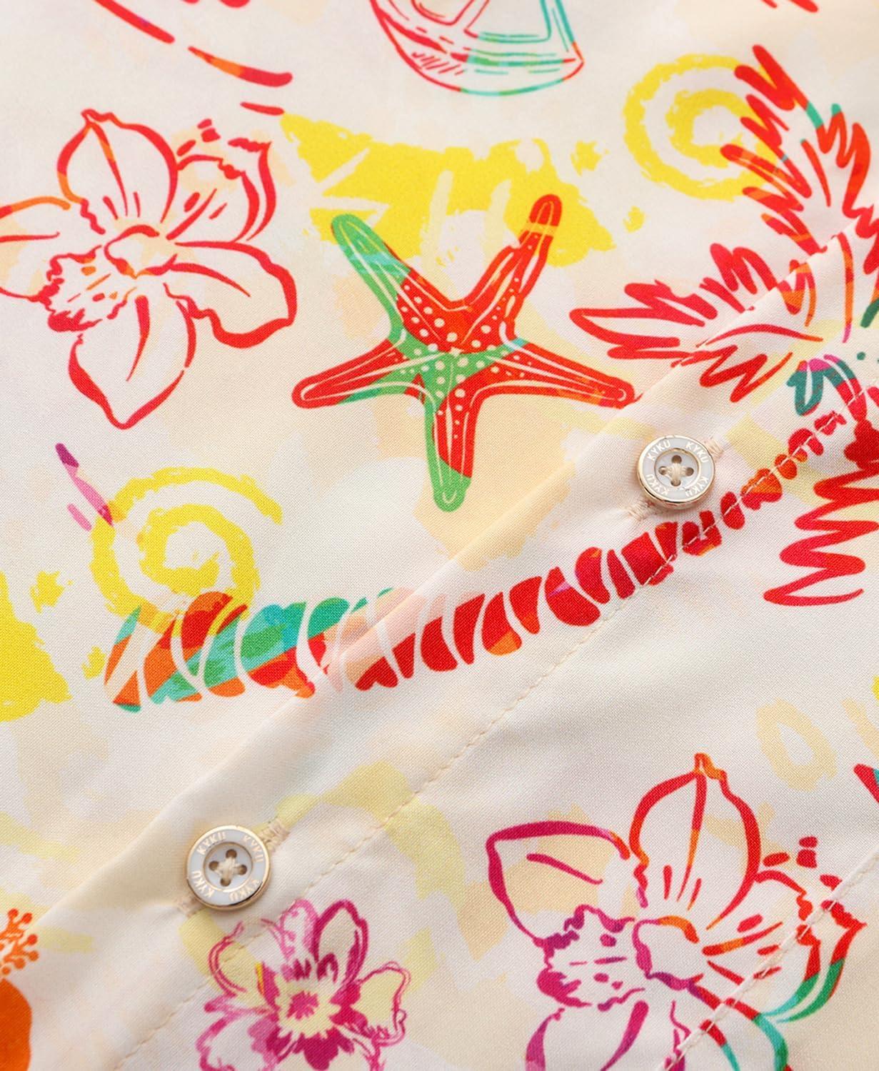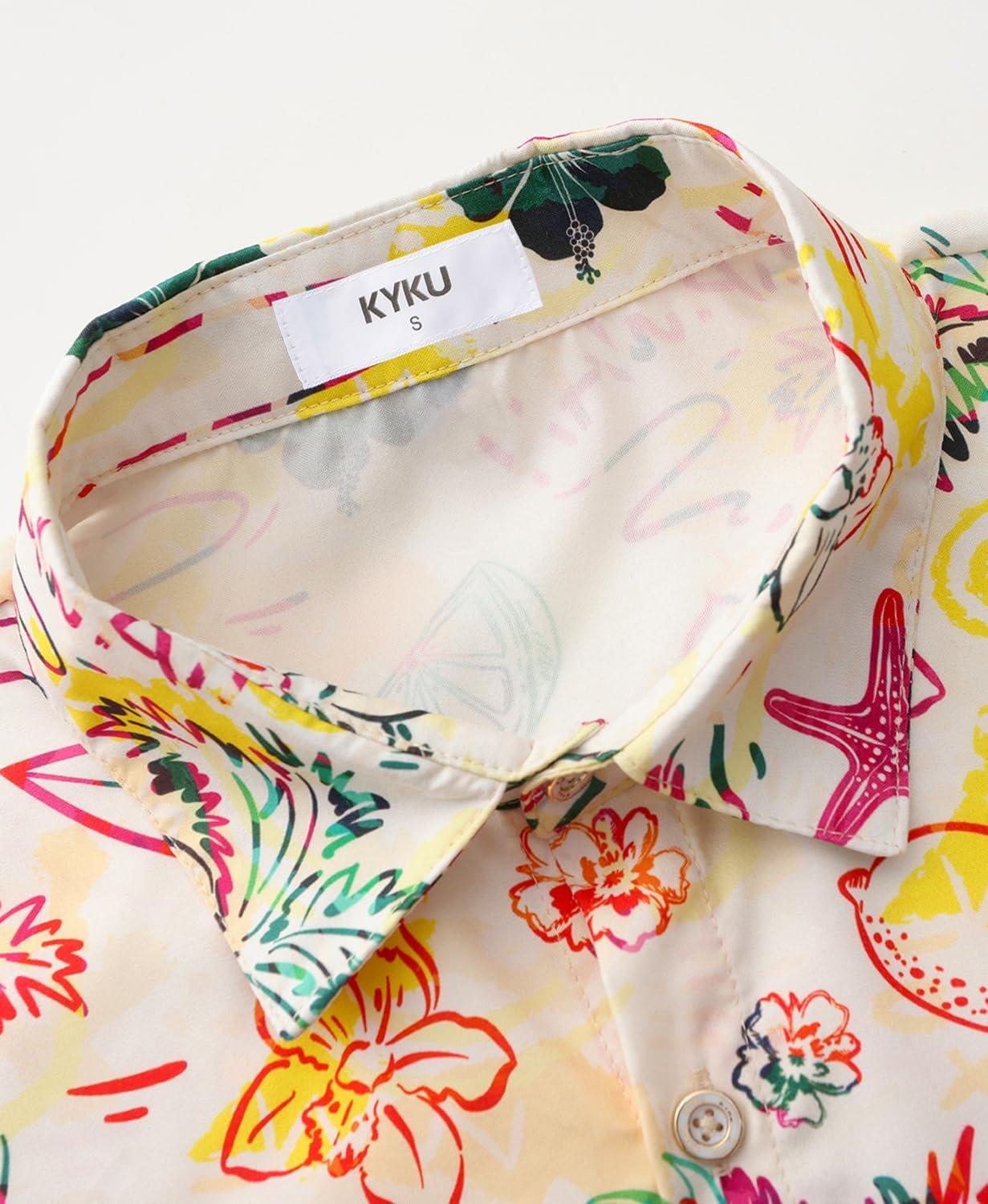 KYKU Men’s Hawaiian Shirt Short Sleeve Button Down Casual Tropical Summer Beach Vacation Shirts with Pocket(Tropical Multicolor Men Hawaiian Button Shirt)