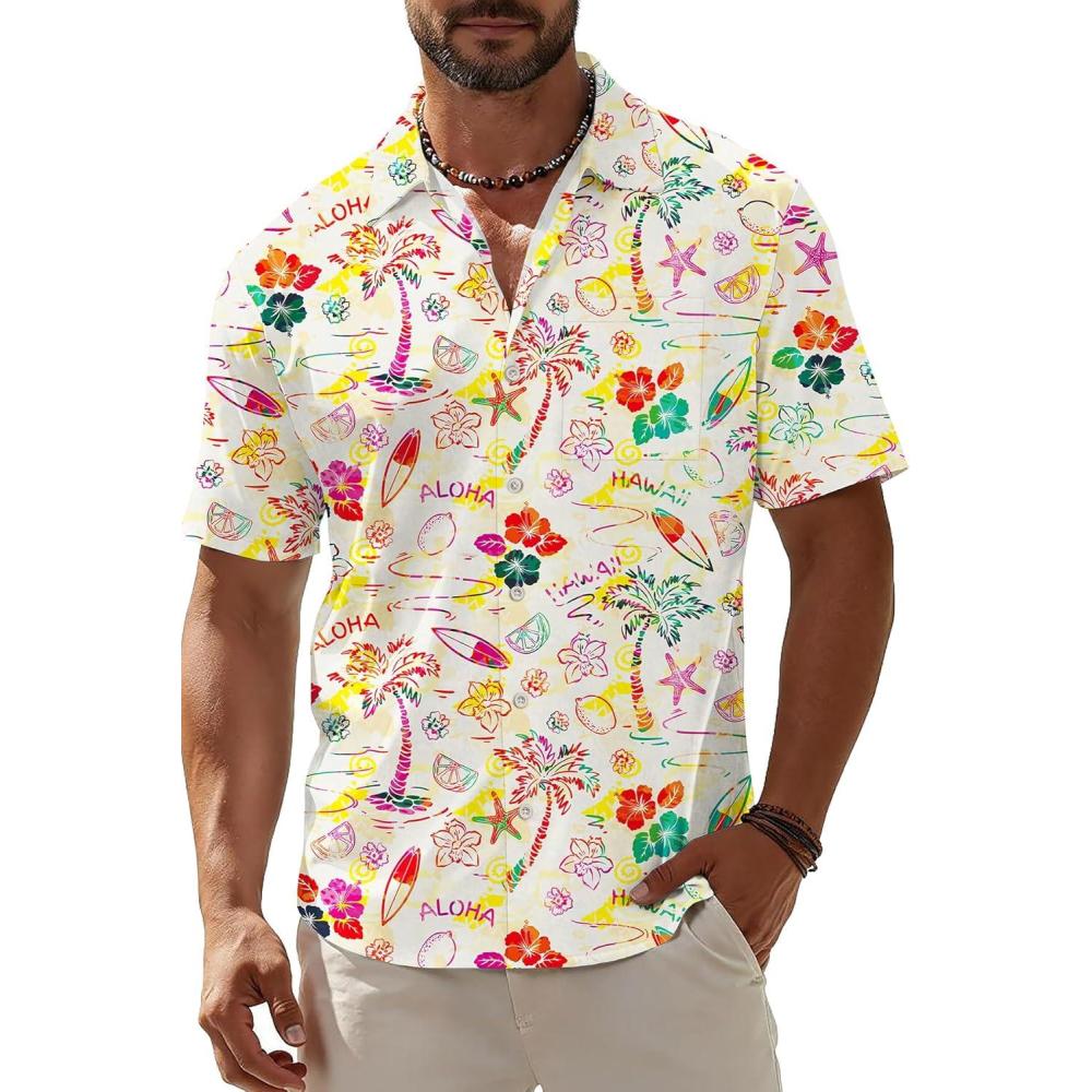 This men's shirt is offered in a variety of styles, including tropical button-down shirts, casual summer shirts, beach shirts, bowling shirts, guayabera shirts, and floral print shirts, making it suitable for a range of occasions. Whether it's a beach vacation, a weekend getaway, or a casual gathering, it pairs well with different outfits to match your styling needs. A practical option for travelers, beach enthusiasts, and those who prefer a relaxed look.