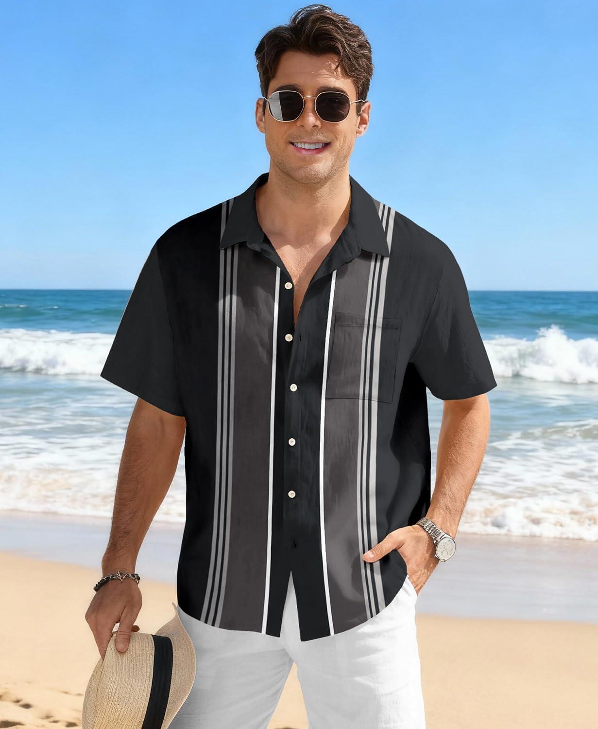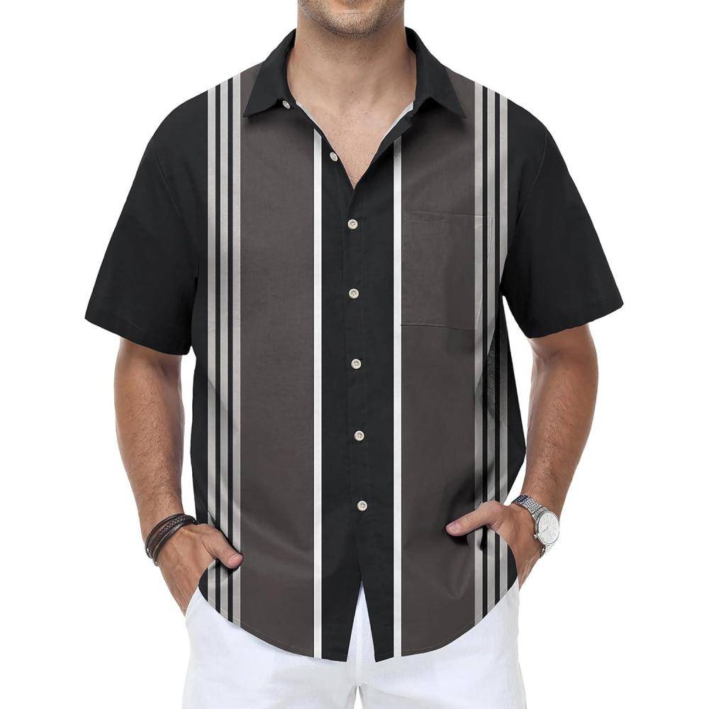 KYKU Men’s Hawaiian Shirt Short Sleeve Tropical Button Down Casual Summer Beach Vacation Shirts(Black Bowling Shirts for Men)