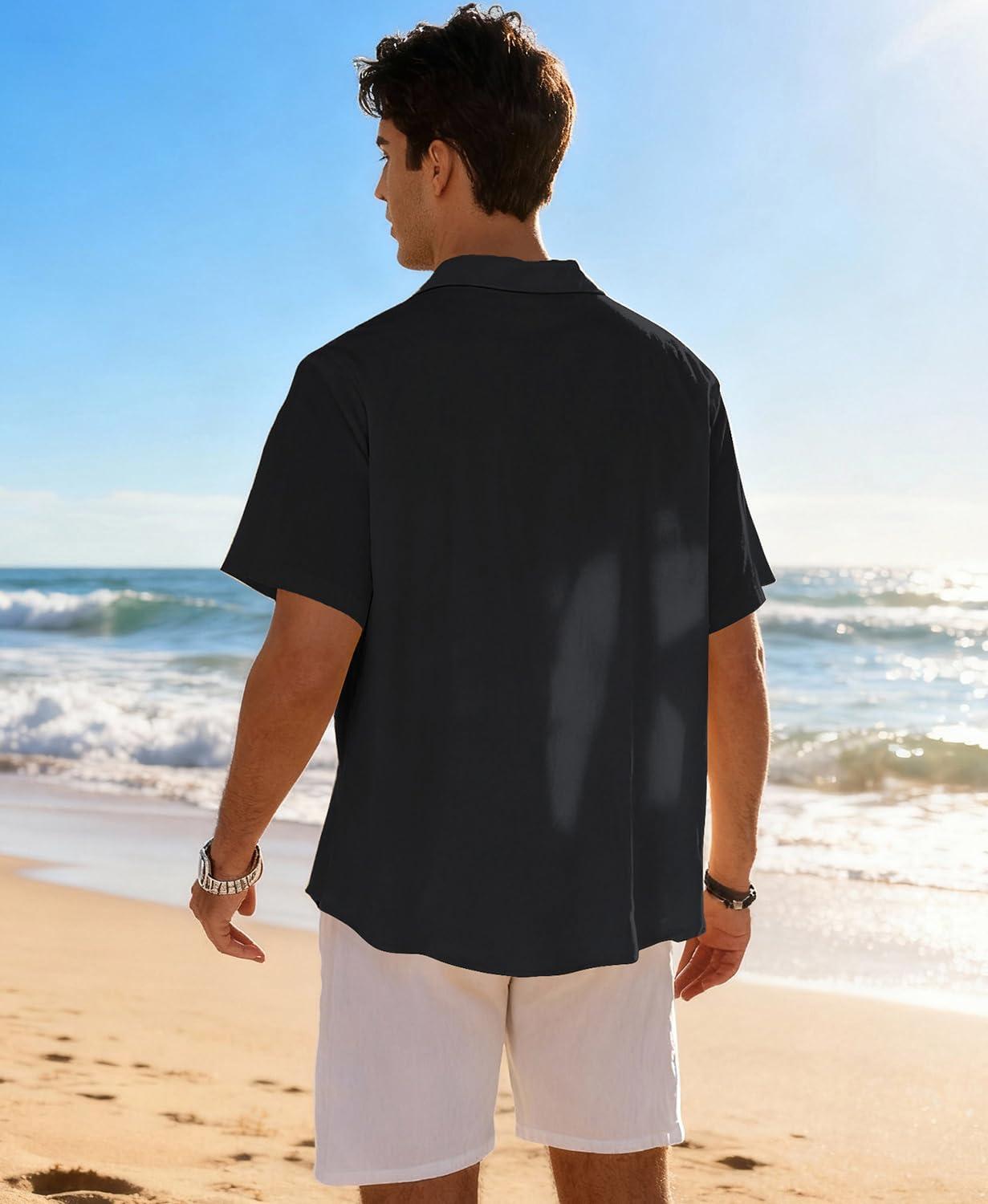 KYKU Men’s Hawaiian Shirt Short Sleeve Tropical Button Down Casual Summer Beach Vacation Shirts(Black Beach Shirts for Men)