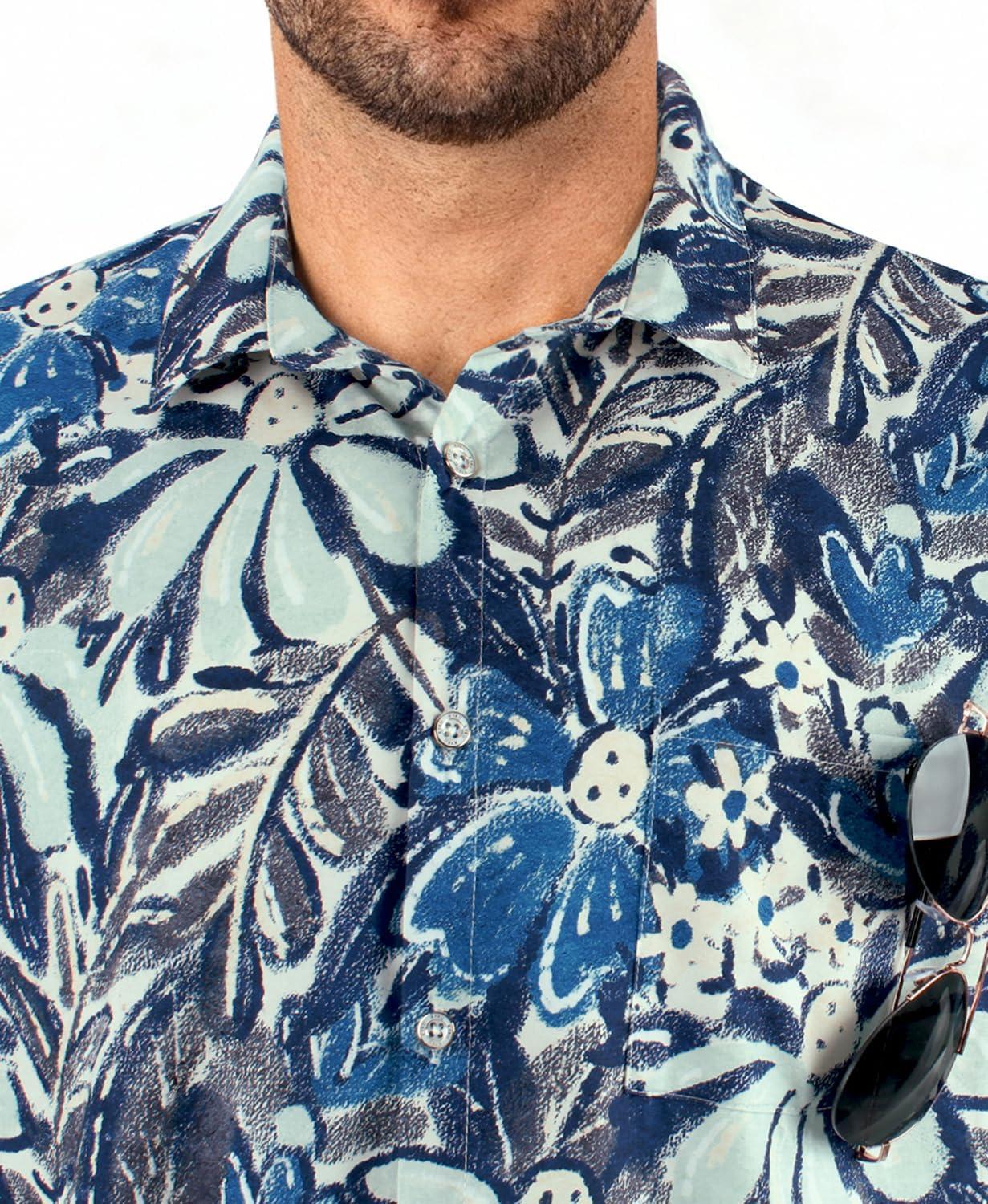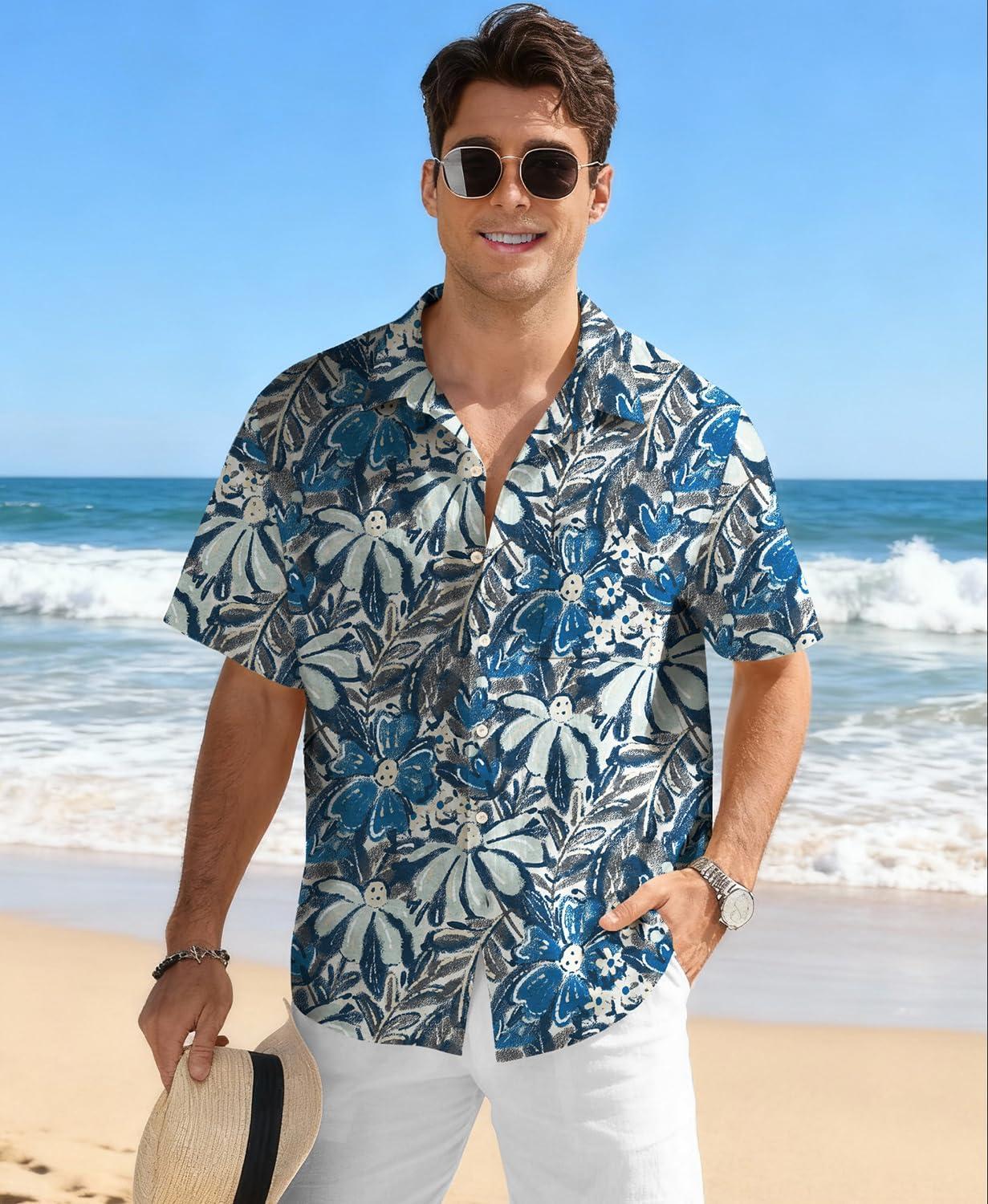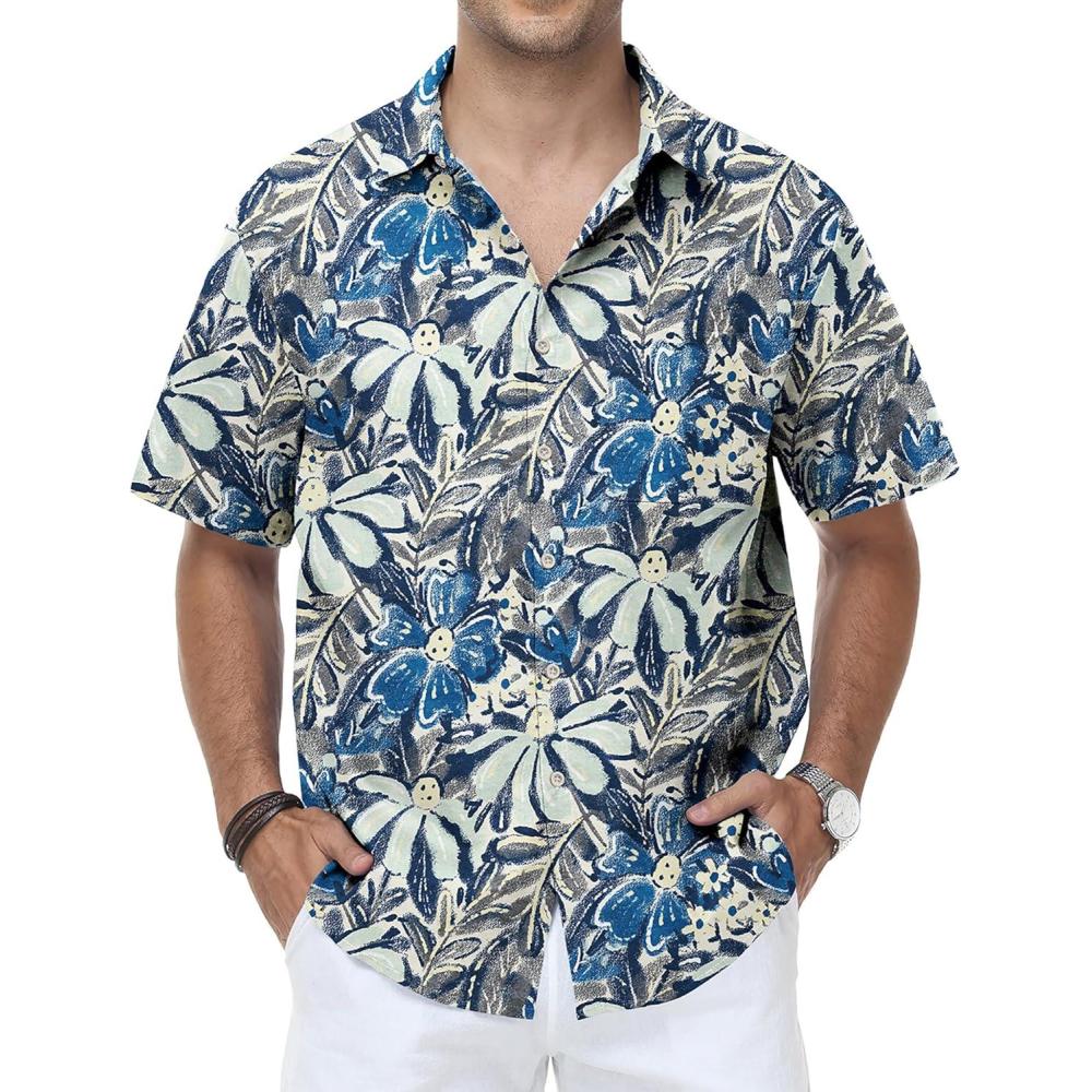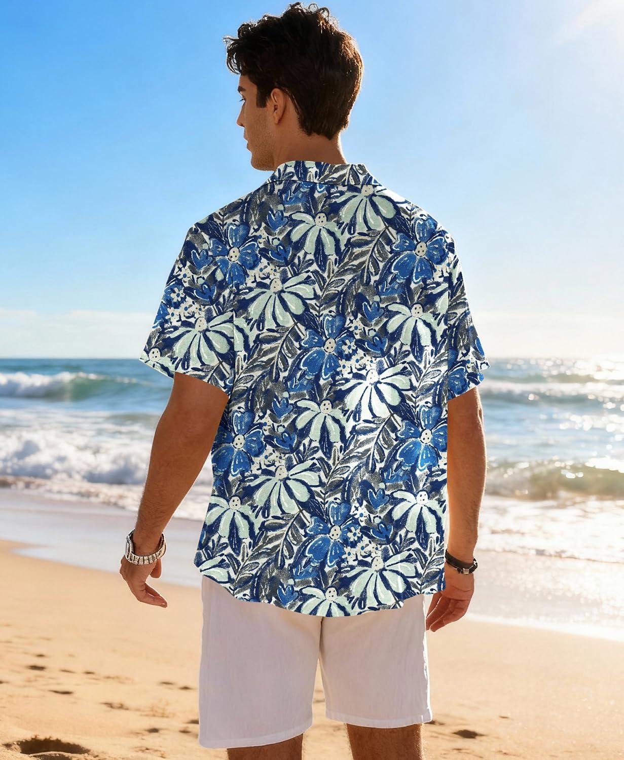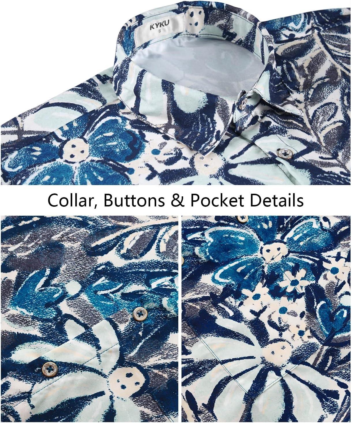 KYKU Men’s Hawaiian Shirt Short Sleeve Tropical Button Down Casual Summer Beach Vacation Shirts(Blue Hawaiian Shirt for Men)