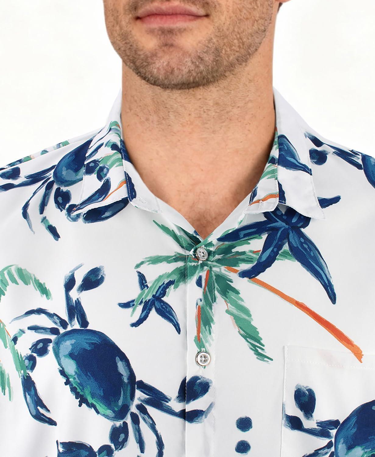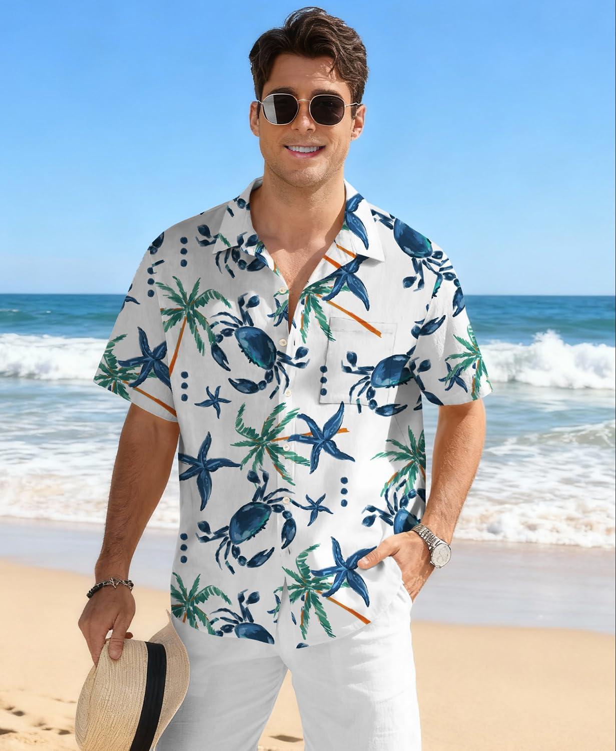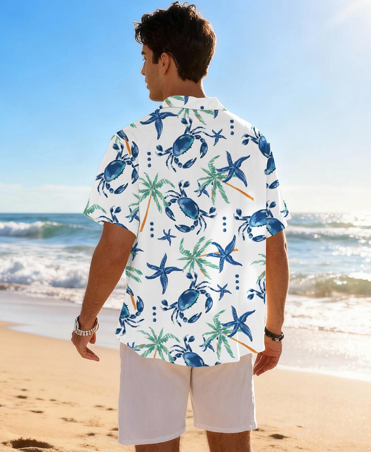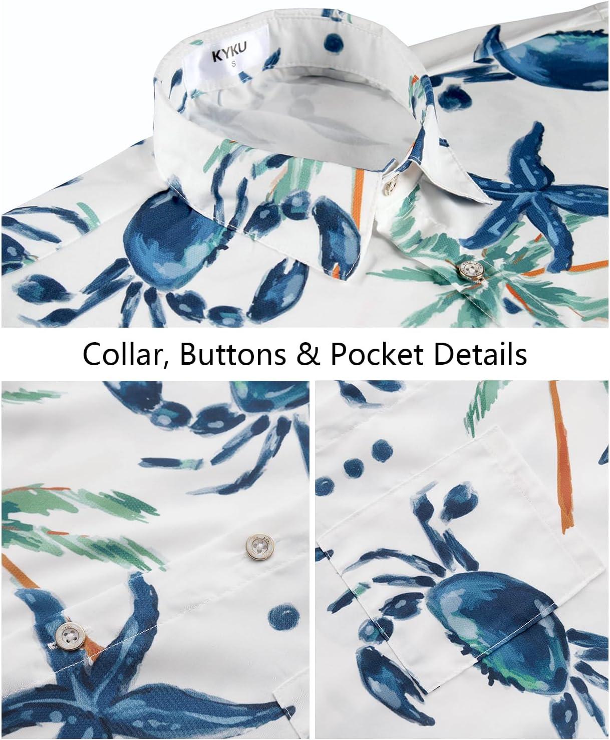 KYKU Men’s Hawaiian Shirt Short Sleeve Tropical Button Down Casual Summer Beach Vacation Shirts(Crab White Hawaiian Shirt for Men)