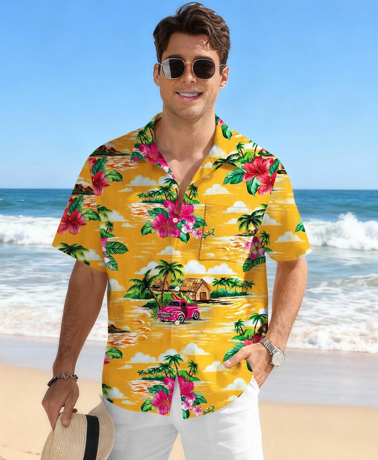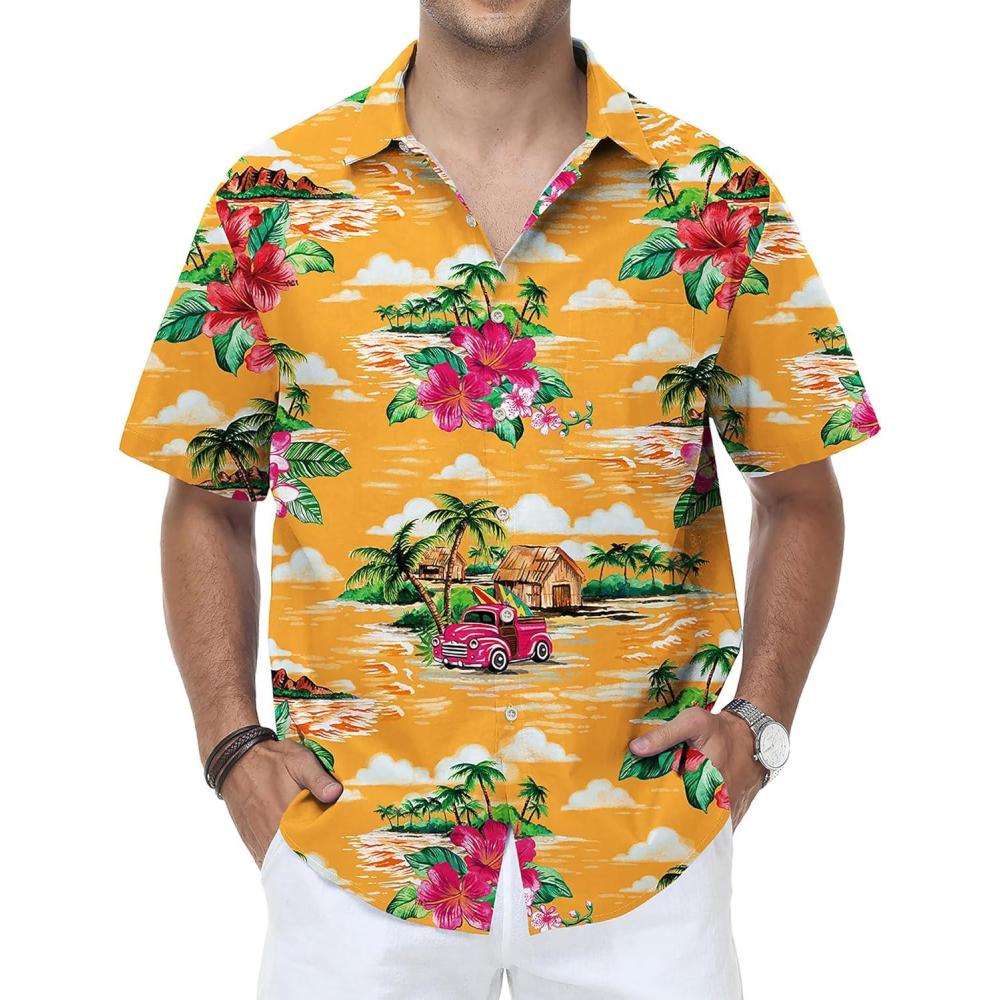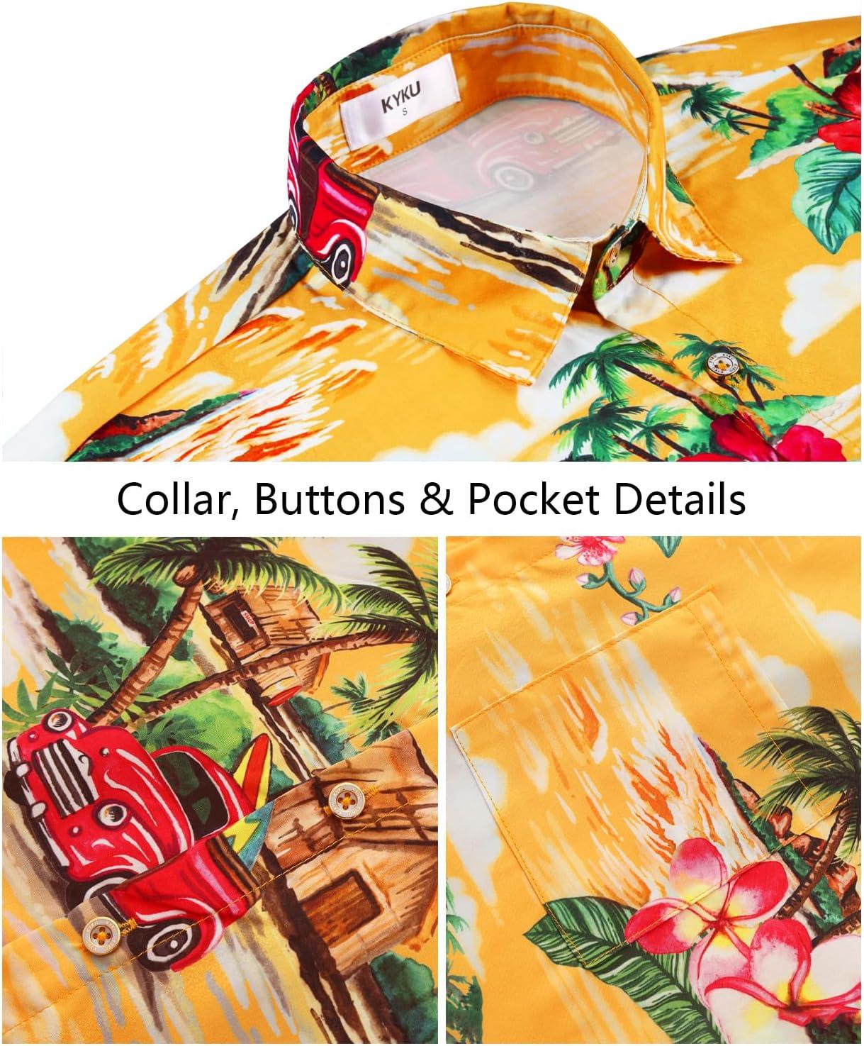 KYKU Men’s Hawaiian Shirt Short Sleeve Tropical Button Down Casual Summer Beach Vacation Shirts(Floral Yellow Hawaiian Shirt for Men)