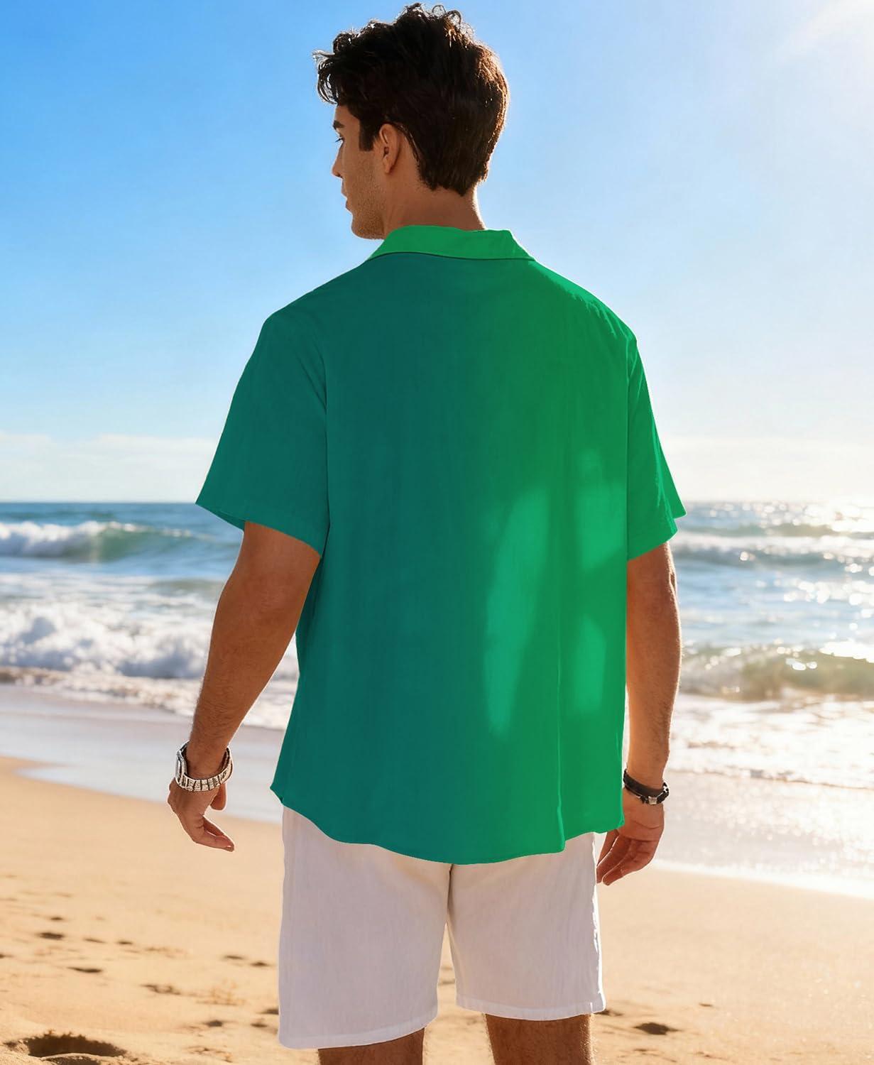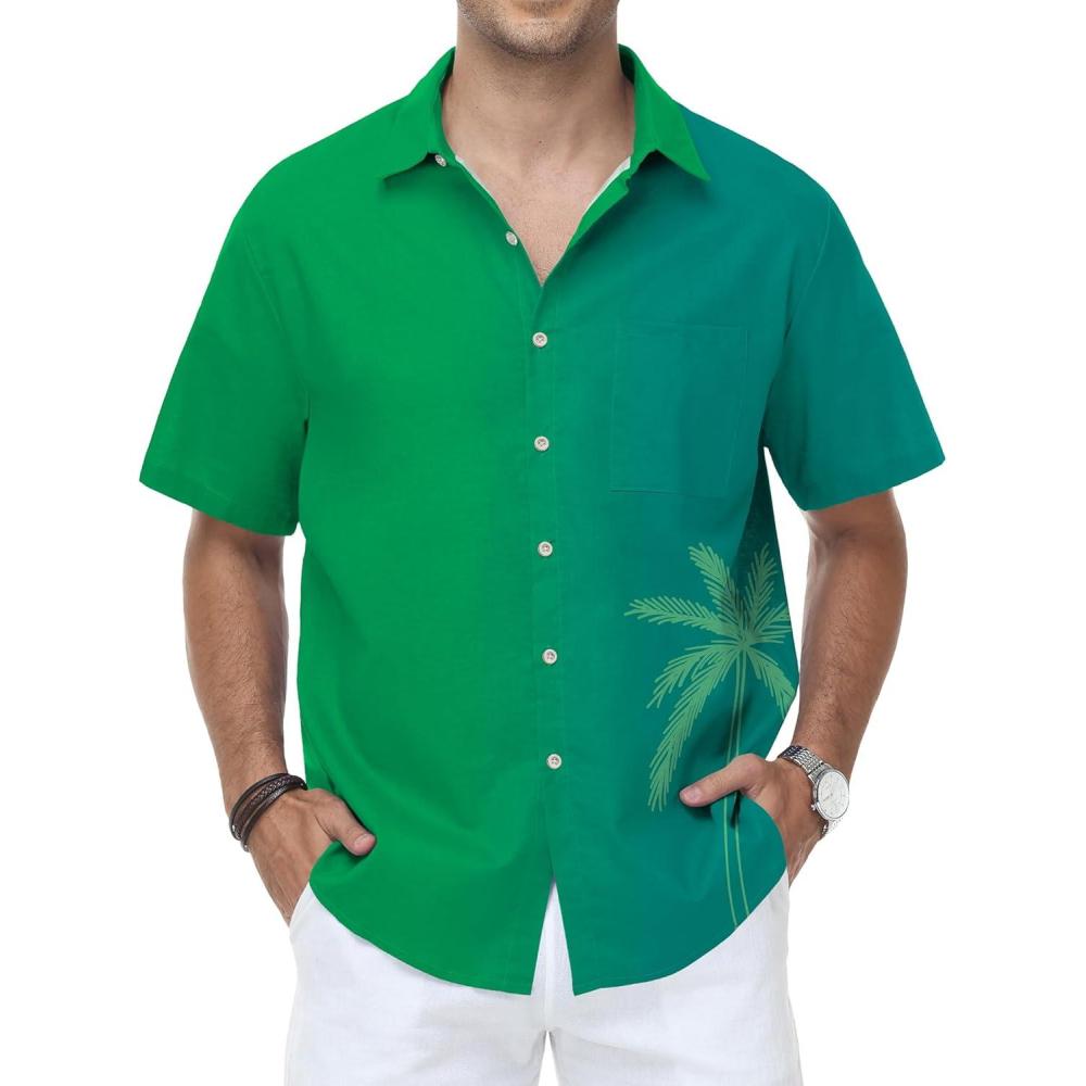 KYKU Men’s Hawaiian Shirt Short Sleeve Tropical Button Down Casual Summer Beach Vacation Shirts(Palm Tree Gradient Green Hawaiian Shirt for Men)