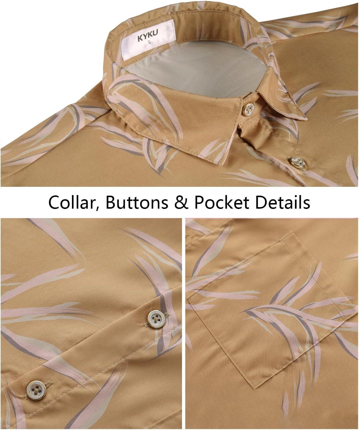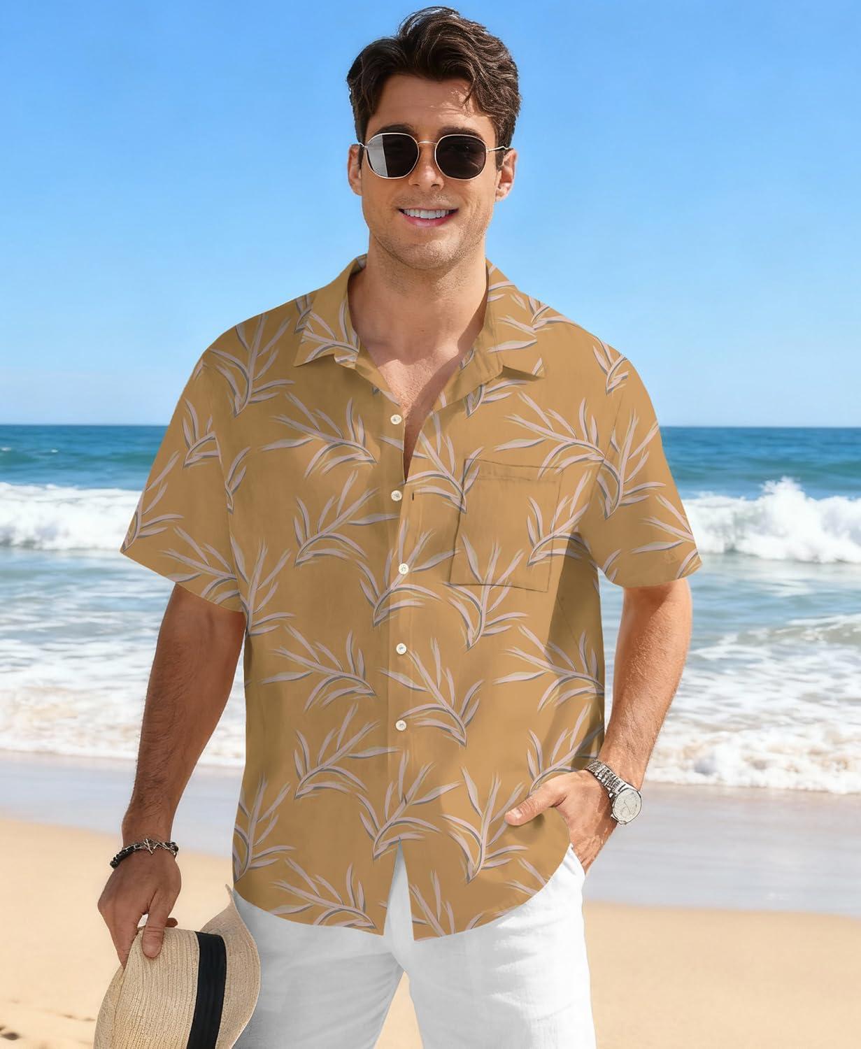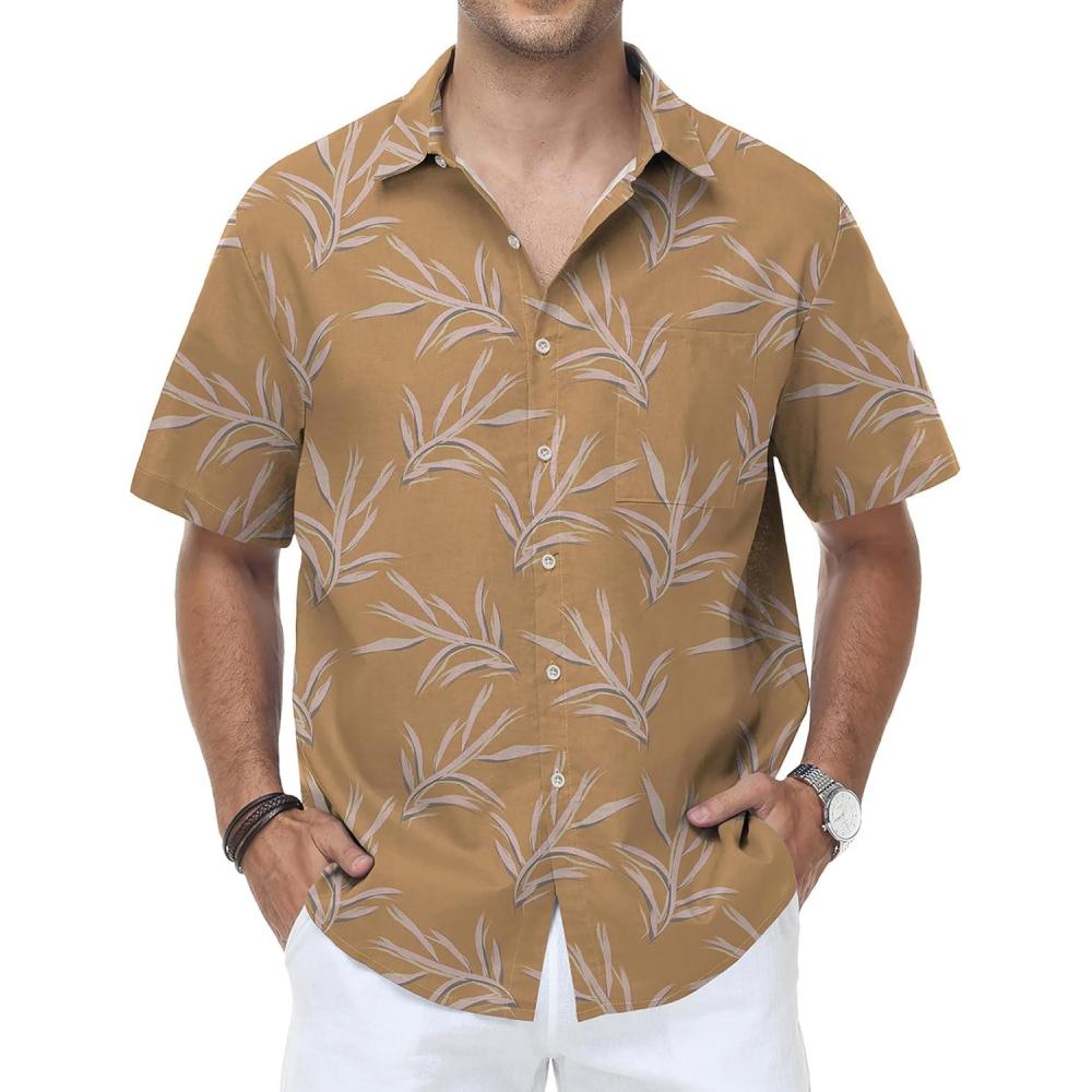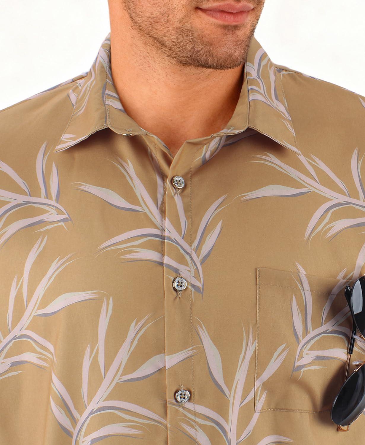 KYKU Men’s Hawaiian Shirt Short Sleeve Tropical Button Down Casual Summer Beach Vacation Shirts(Tan Hawaiian Shirt for Men)
