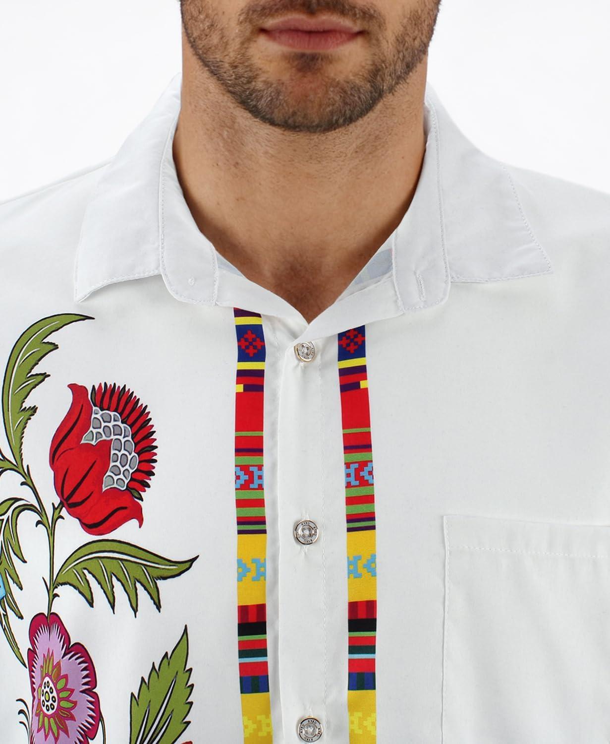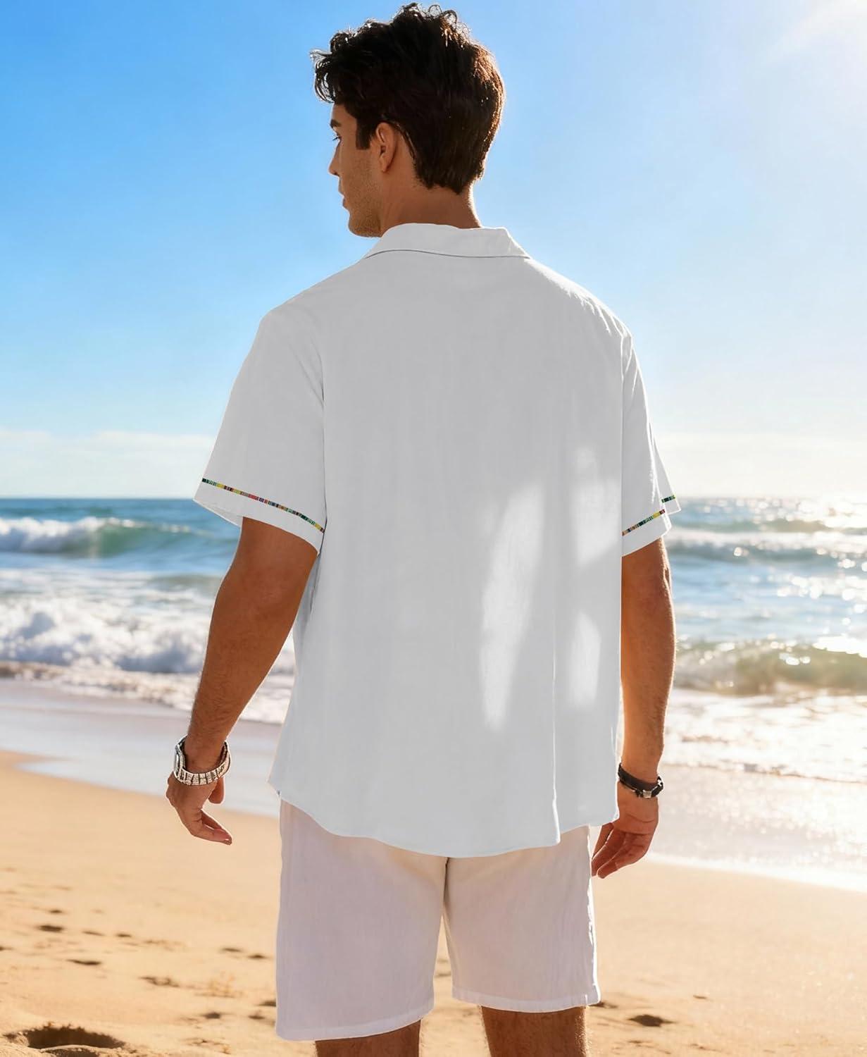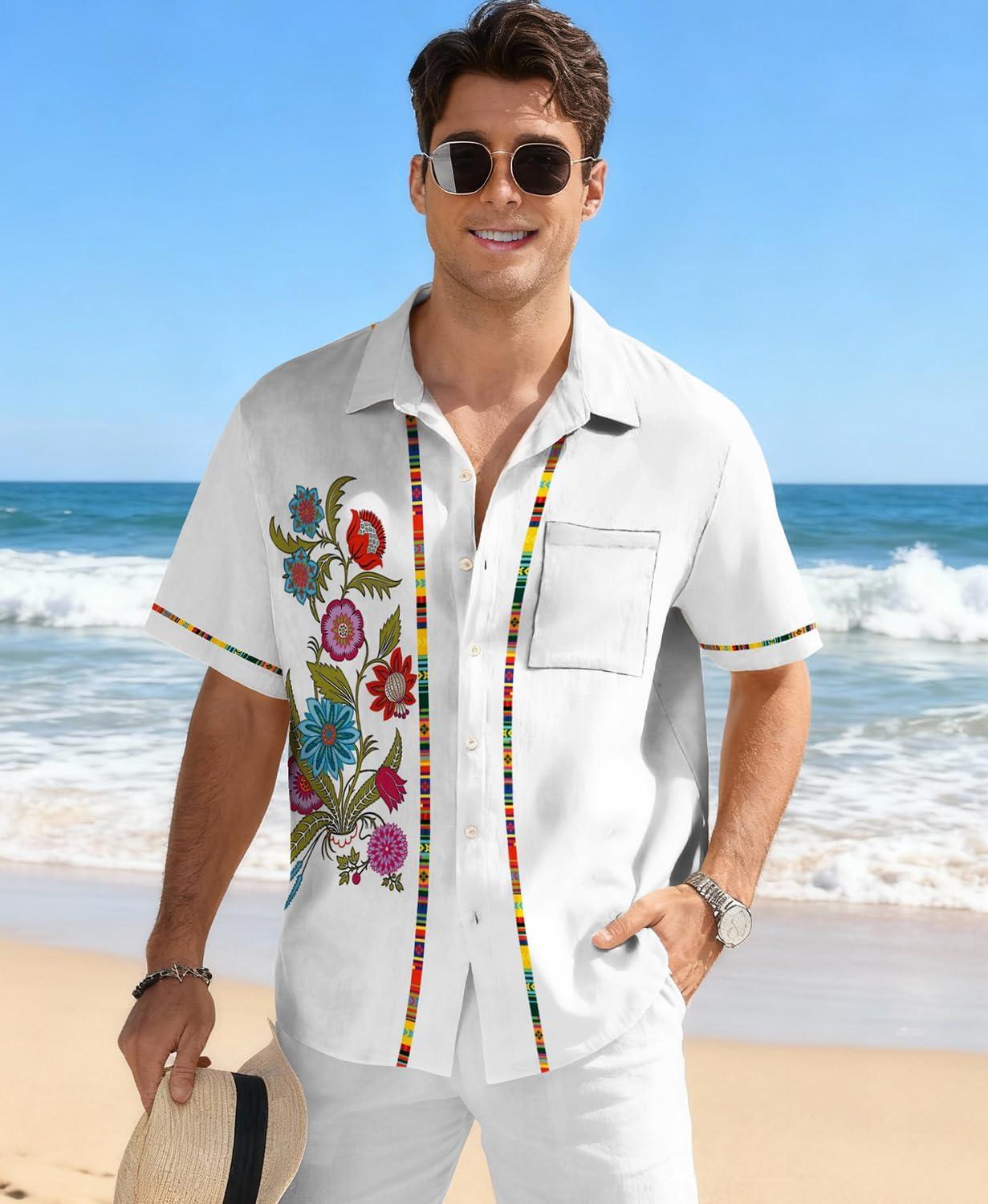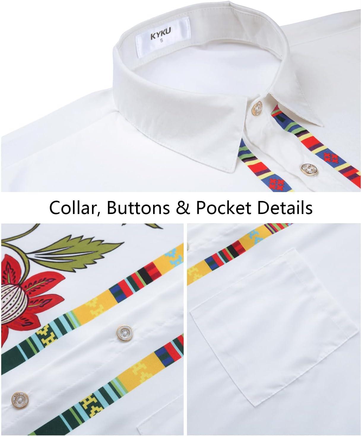 KYKU Men’s Hawaiian Shirt Short Sleeve Tropical Button Down Casual Summer Beach Vacation Shirts(White Beach Shirts for Men)
