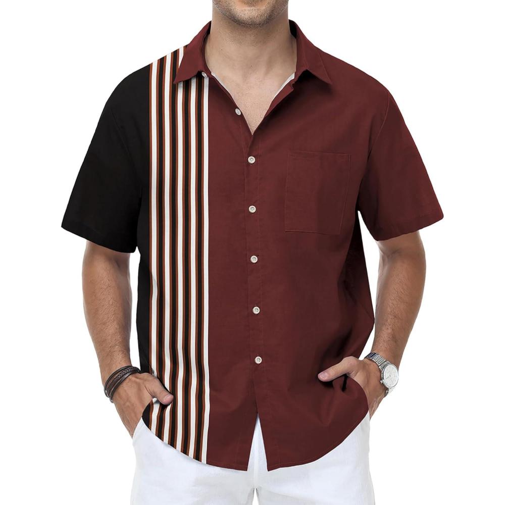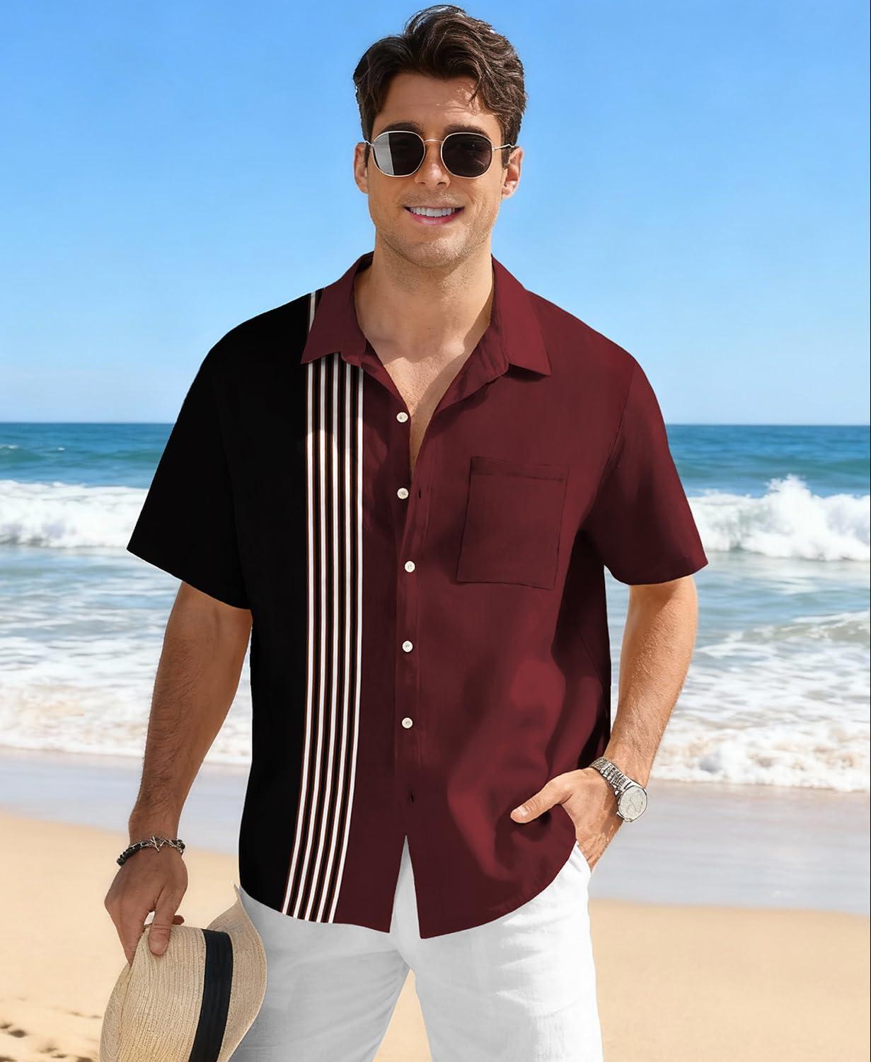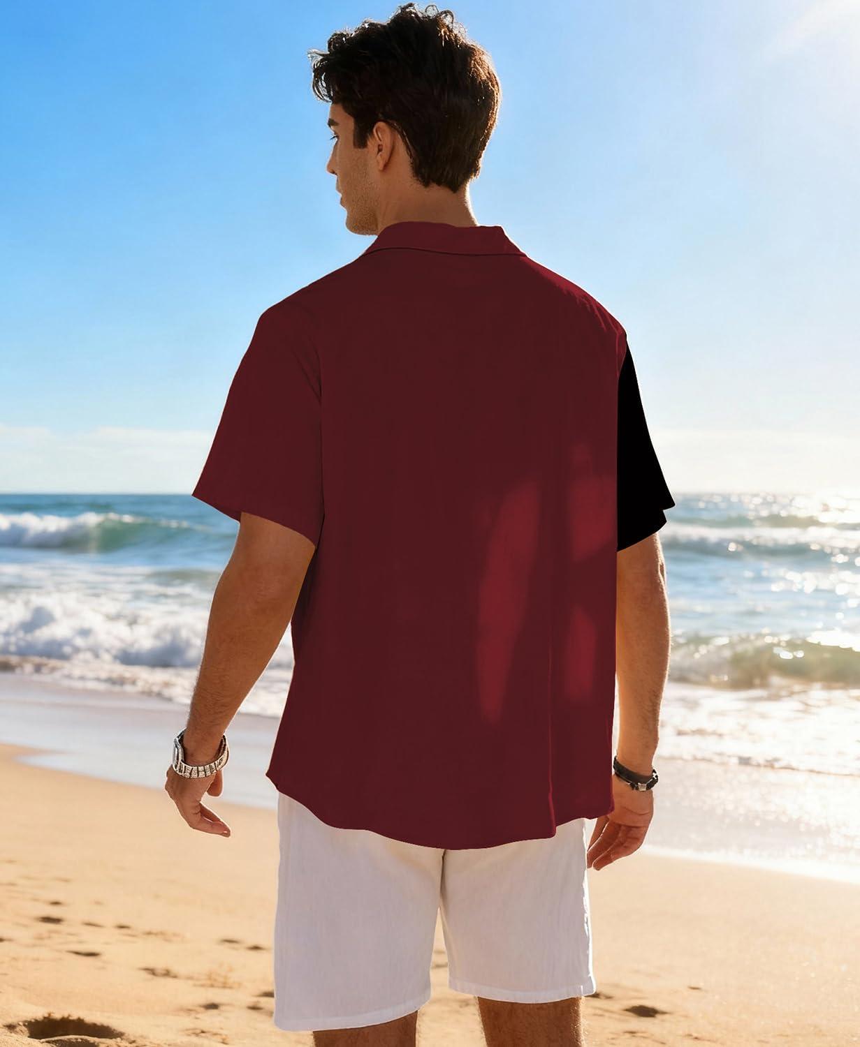 KYKU Men’s Hawaiian Shirt Short Sleeve Tropical Button Down Casual Summer Beach Vacation Shirts(Wine Red Beach Shirts for Men)