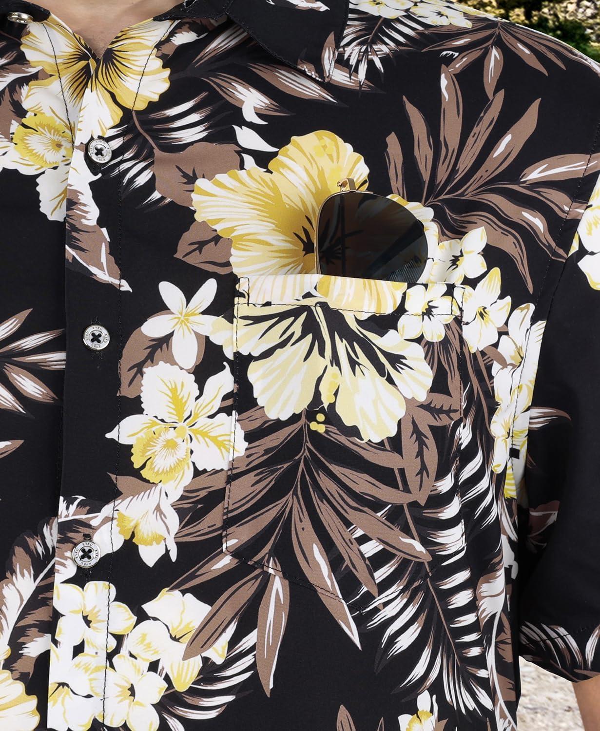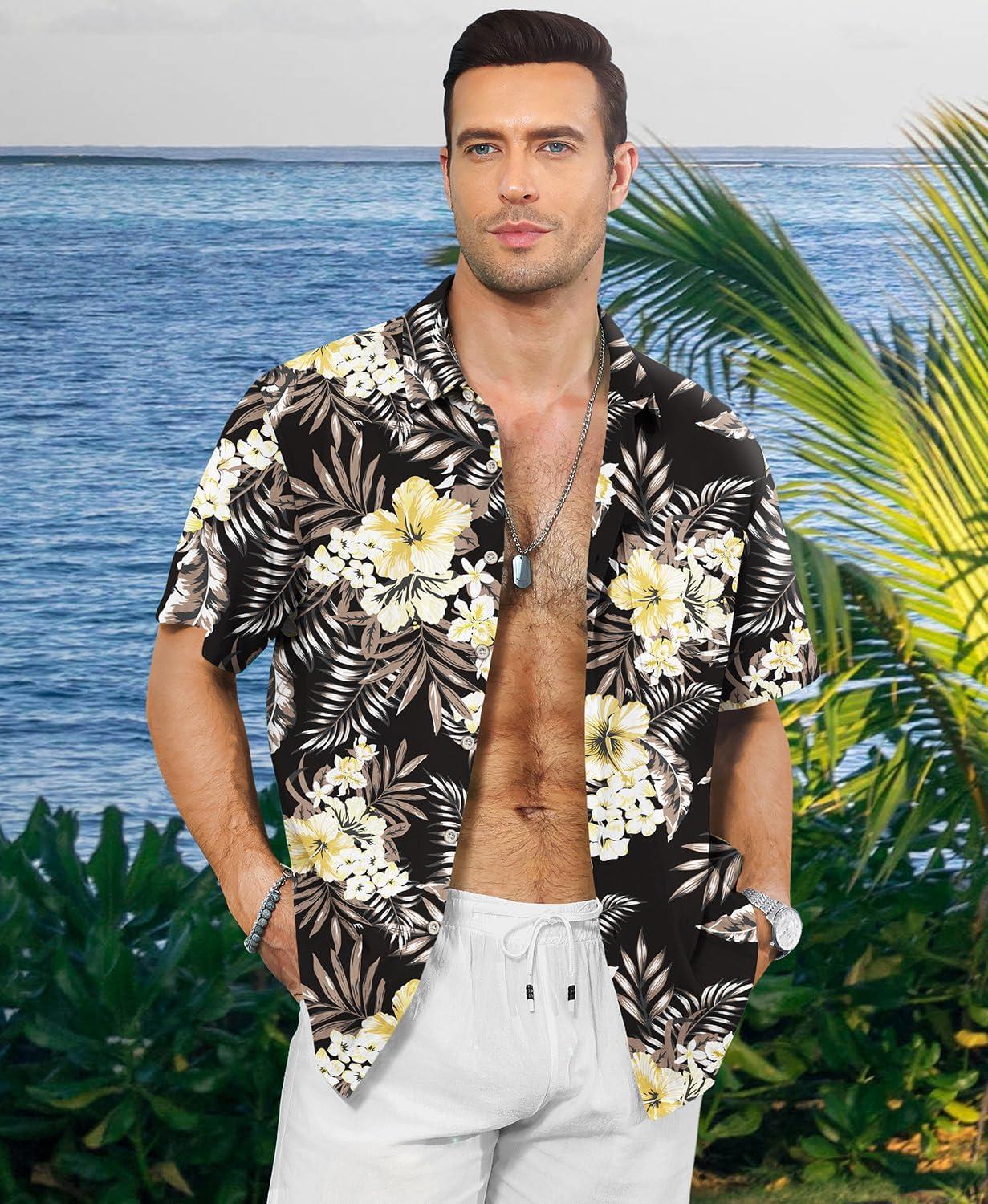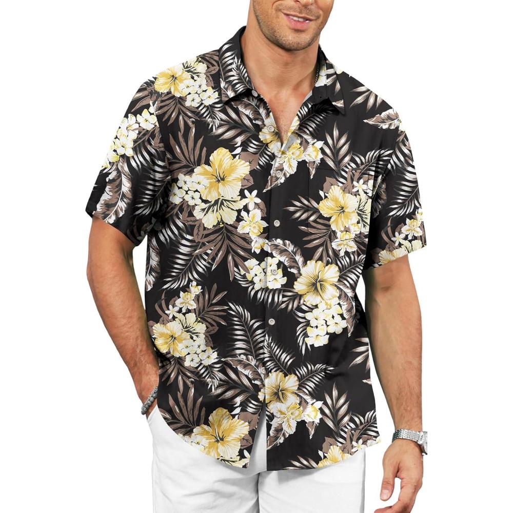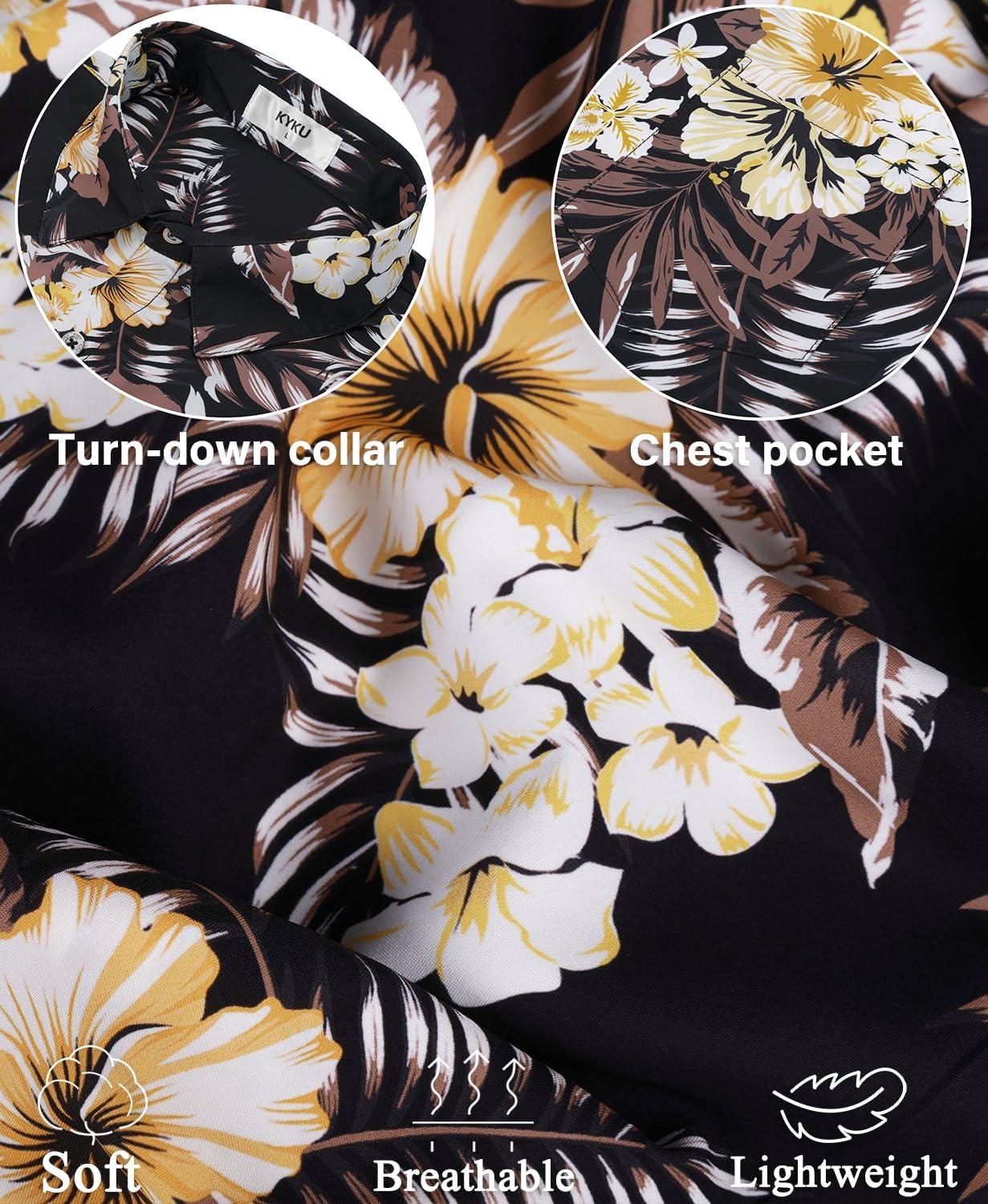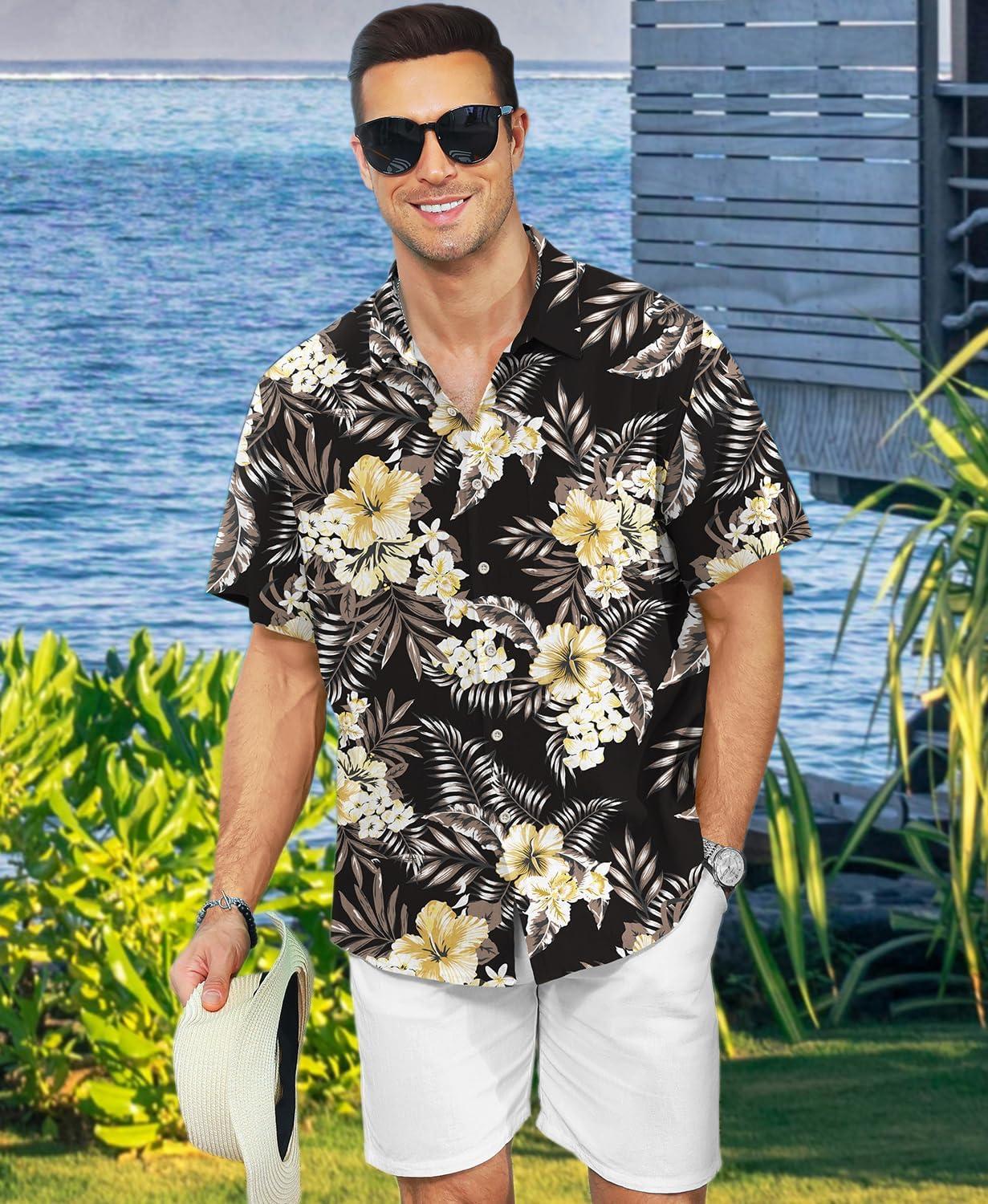 KYKU Men’s Hawaiian Shirt Short Sleeve – Tropical Summer Beach Button Down Shirt with Pocket(Black Floral Mens Hawaiian Shirt)