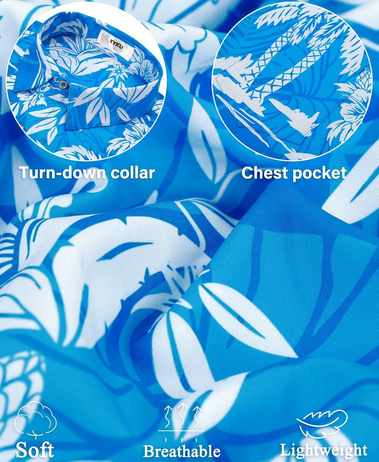 KYKU Men’s Hawaiian Shirt Short Sleeve – Tropical Summer Beach Button Down Shirt with Pocket(Blue Leaf Mens Hawaiian Shirt)