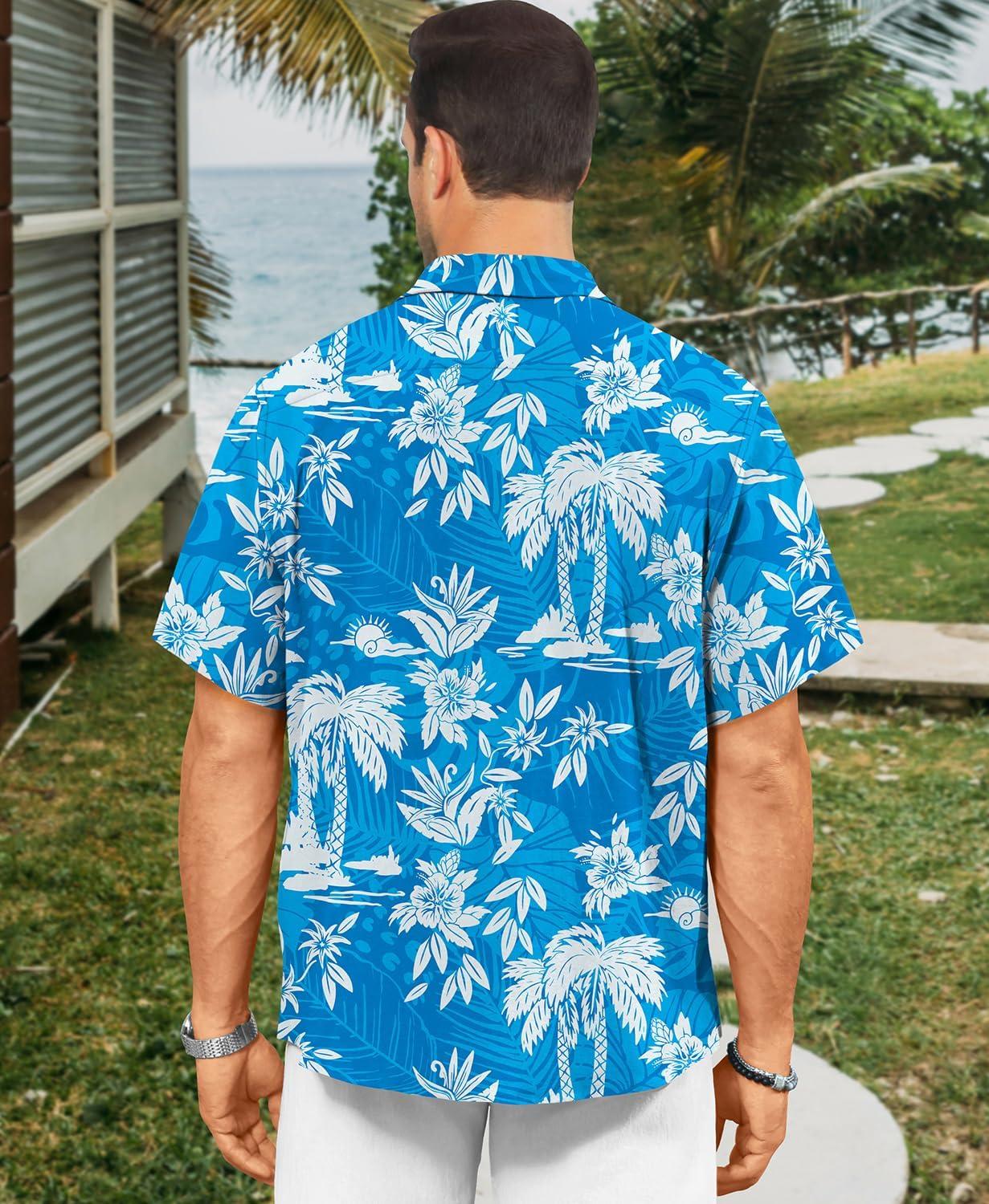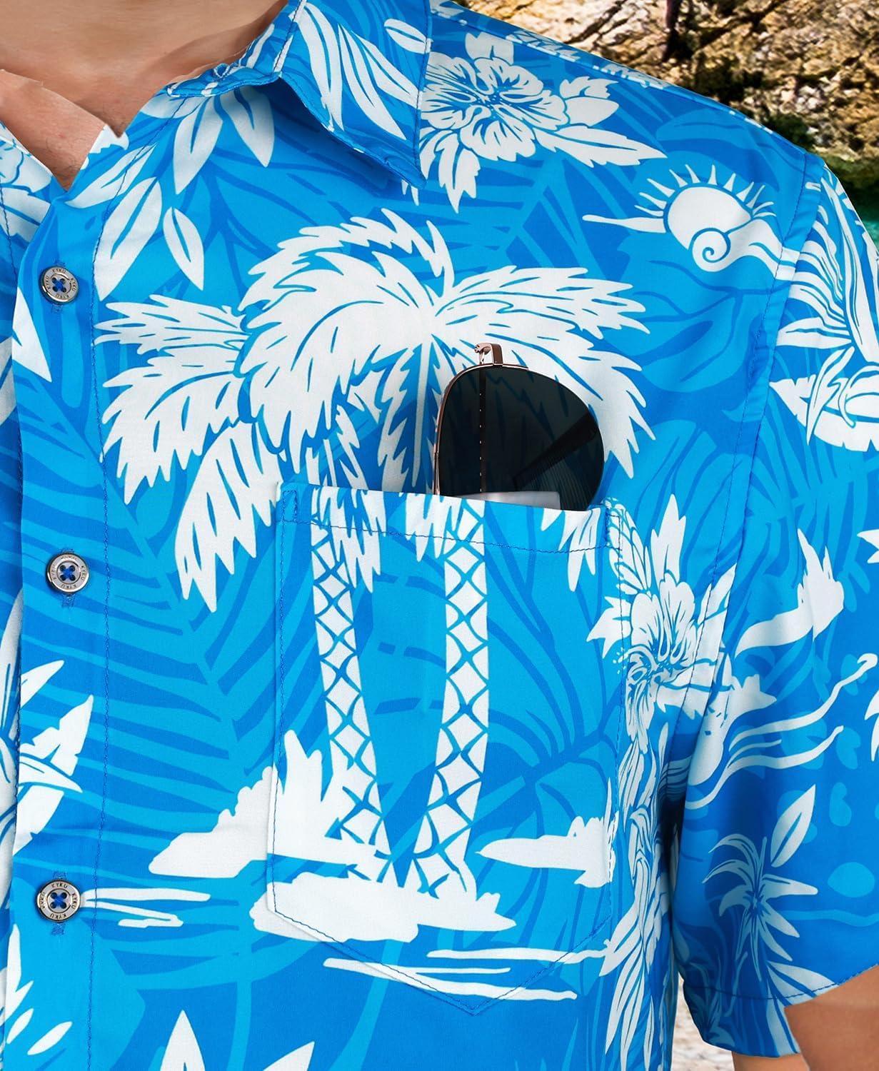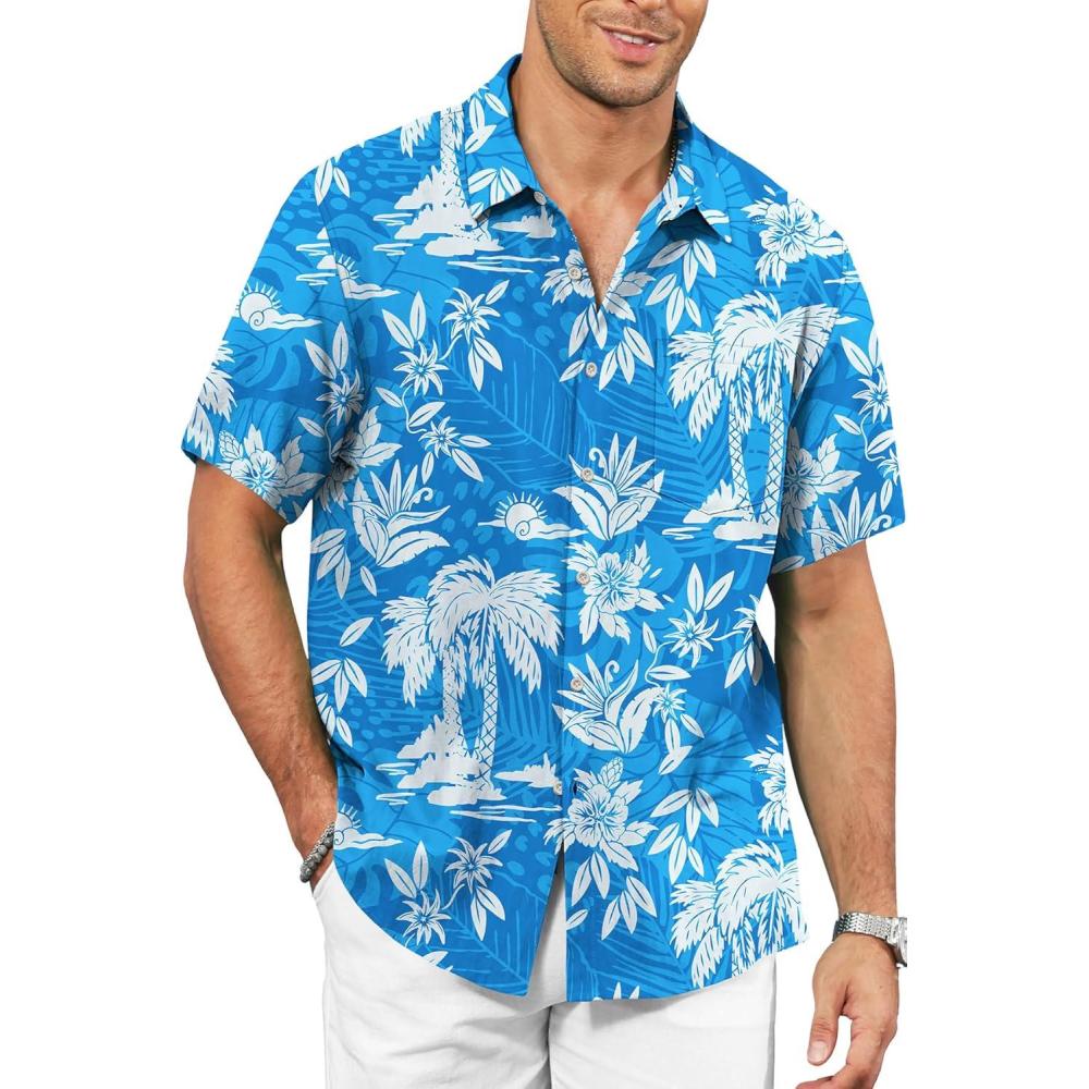 KYKU Men’s Hawaiian Shirt Short Sleeve – Tropical Summer Beach Button Down Shirt with Pocket(Blue Palm Tree Mens Hawaiian Shirt)