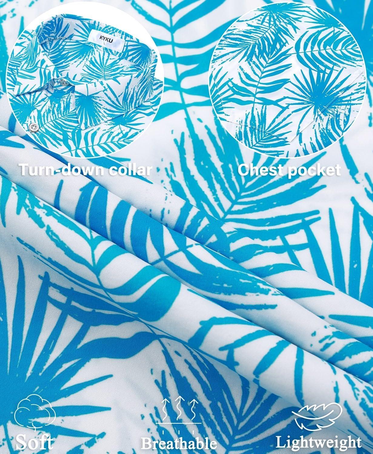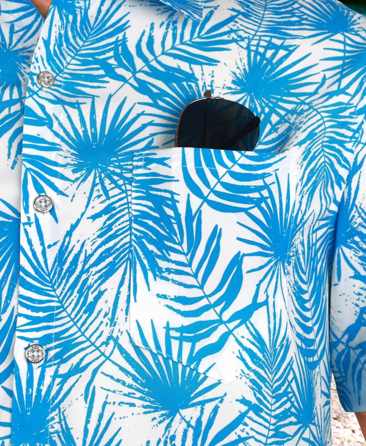 KYKU Men’s Hawaiian Shirt Short Sleeve – Tropical Summer Beach Button Down Shirt with Pocket(Blue Palm Tree Mens Hawaiian Shirt)
