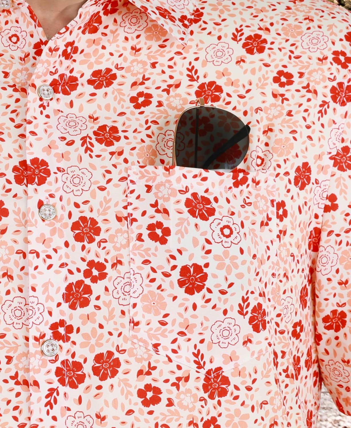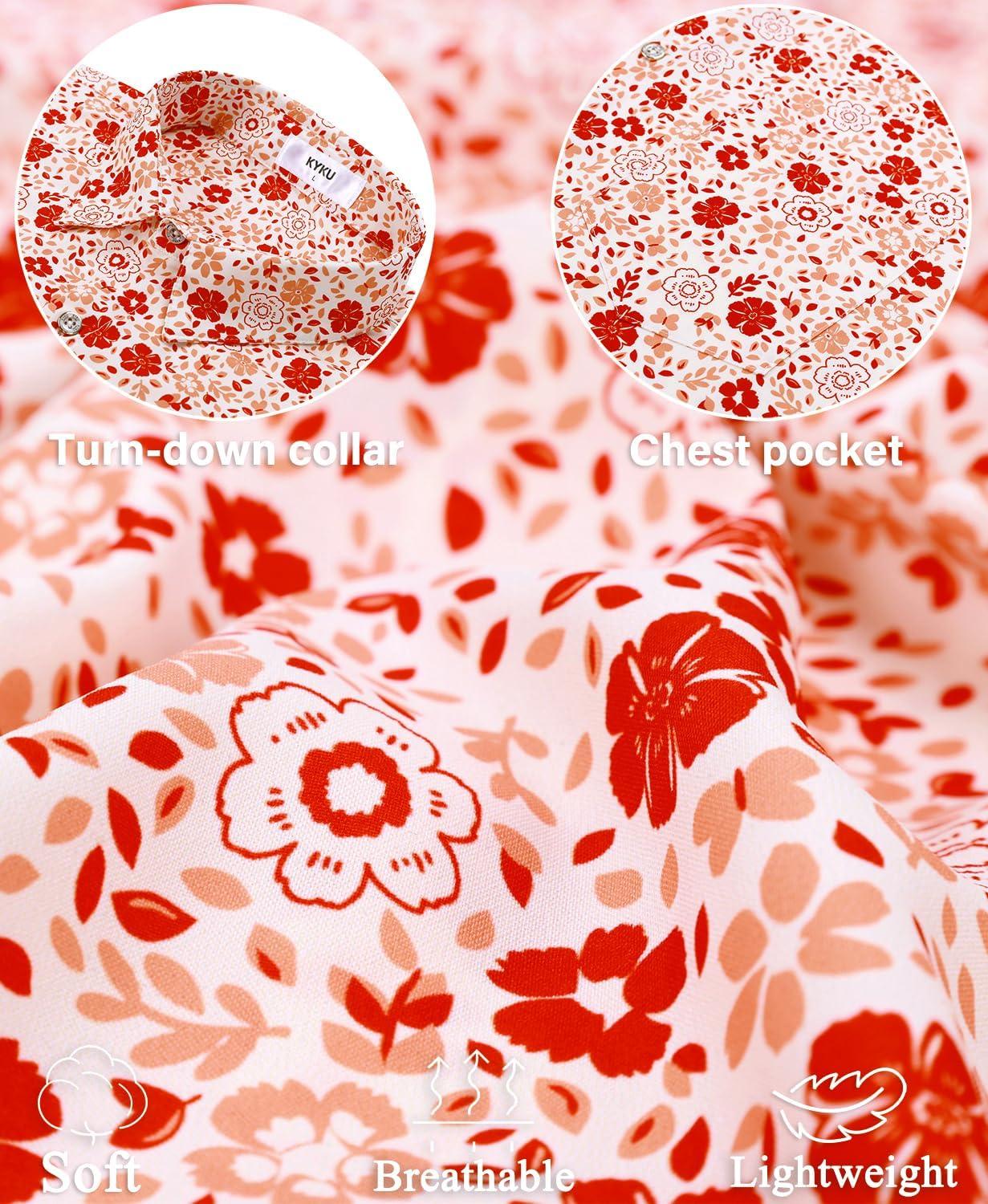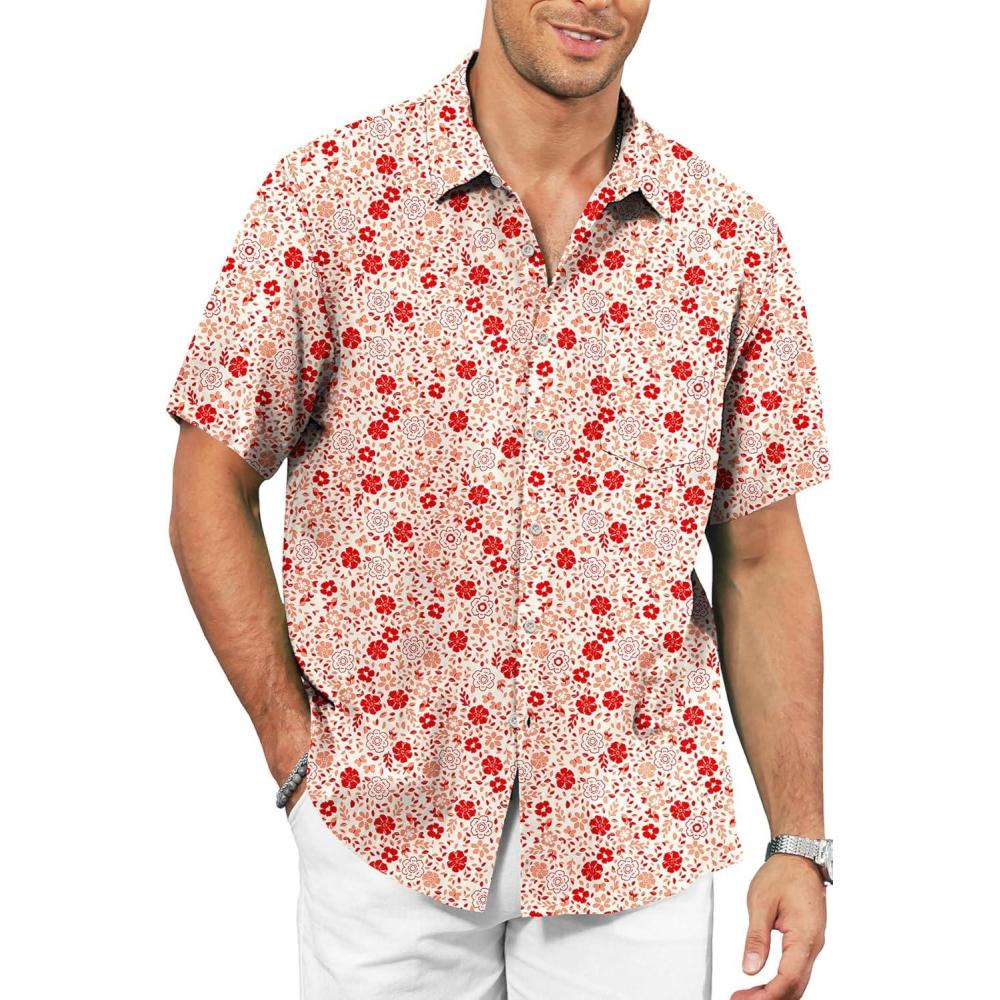 KYKU Men’s Hawaiian Shirt Short Sleeve – Tropical Summer Beach Button Down Shirt with Pocket(Light Beige Red Floral Mens Hawaiian Shirt)