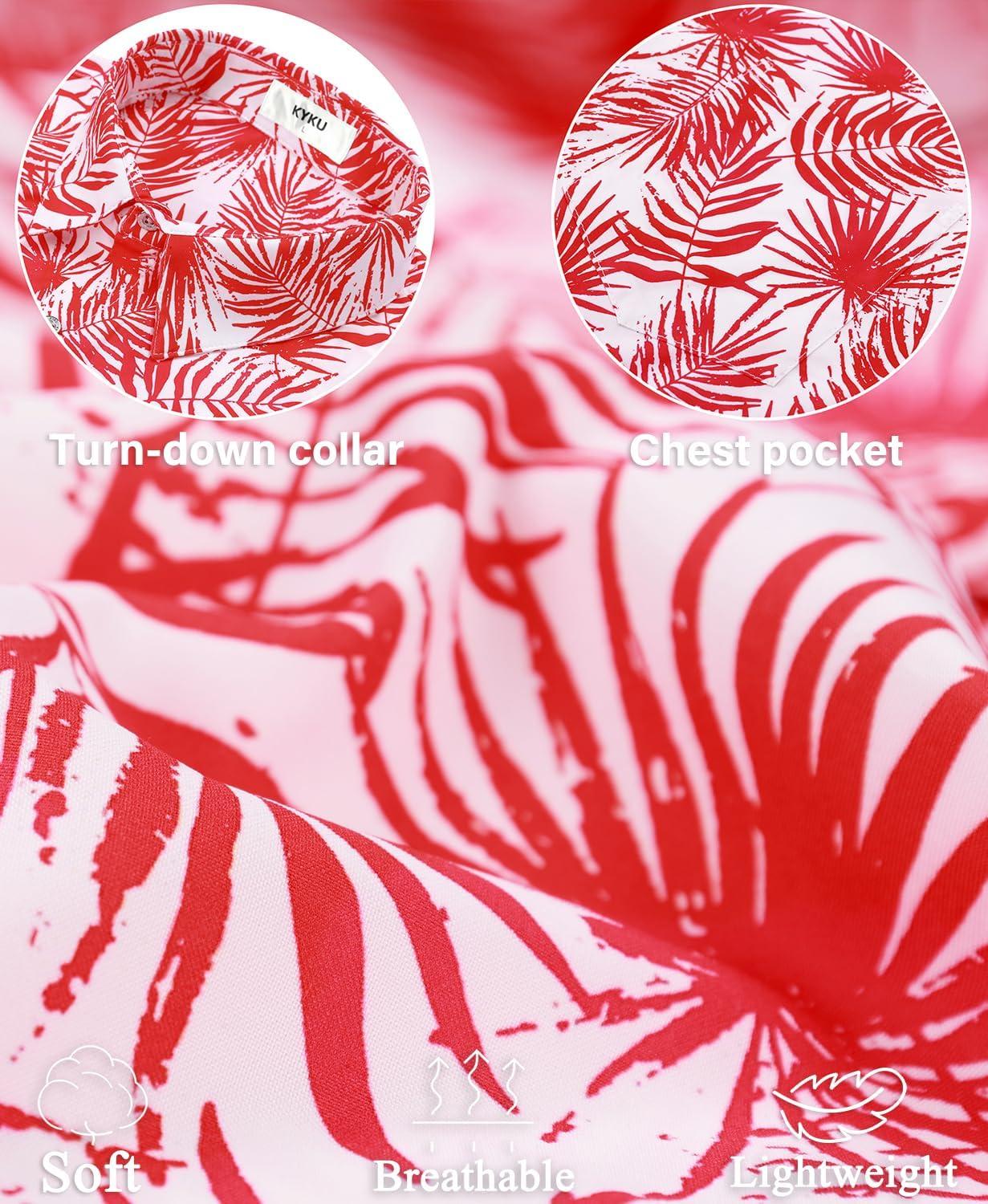 KYKU Men’s Hawaiian Shirt Short Sleeve – Tropical Summer Beach Button Down Shirt with Pocket(Red Palm Tree Mens Hawaiian Shirt)