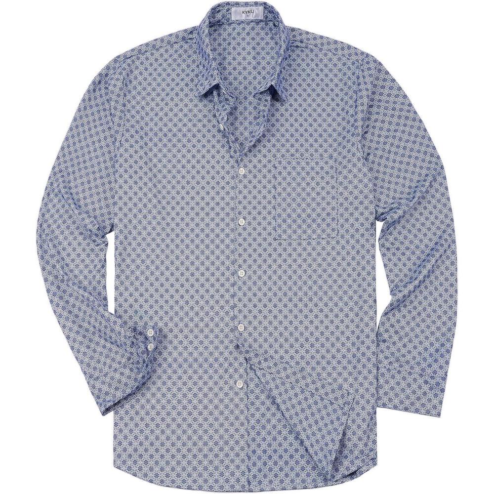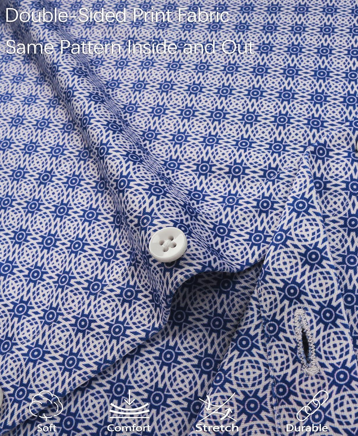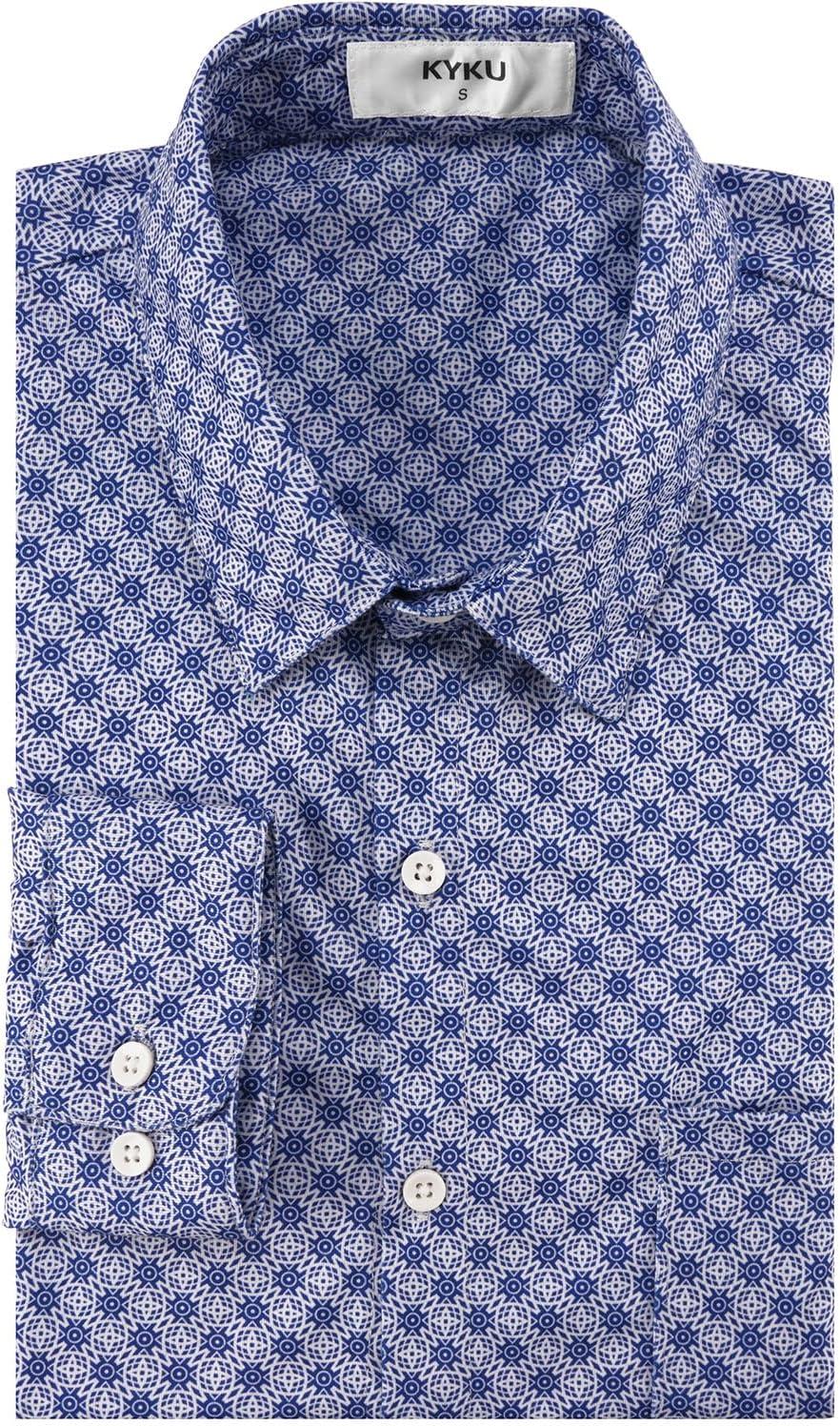 KYKU Mens Printed Casual Shirts Soft Long Sleeve Button Down Shirts, Regular Stretch, with Pocket(Blue Printed Long Sleeve Shirts for Men)